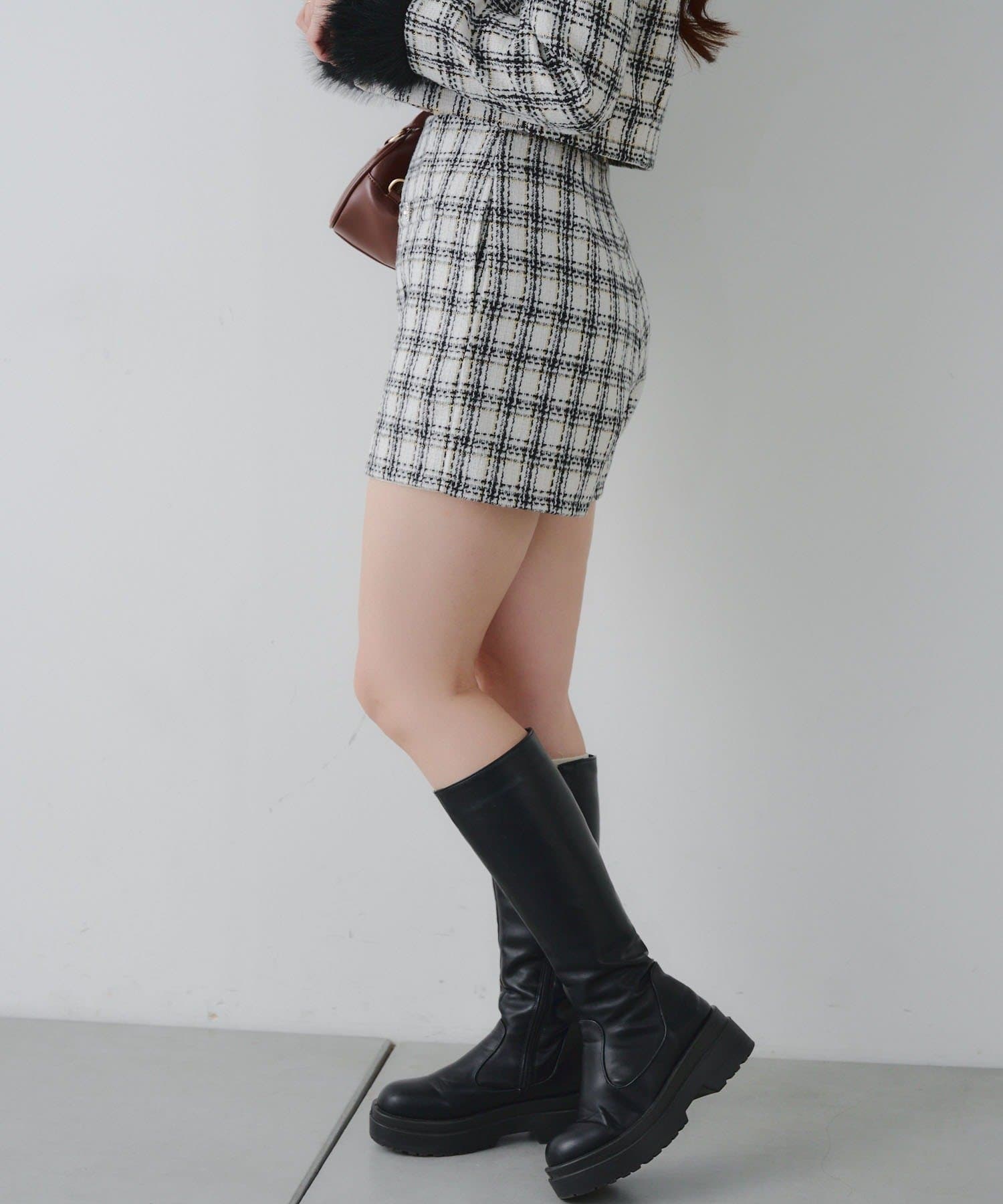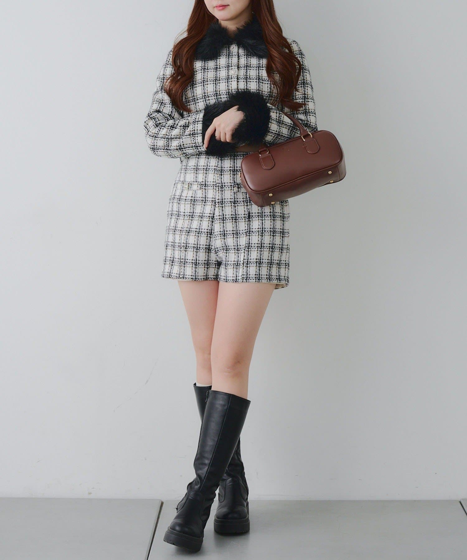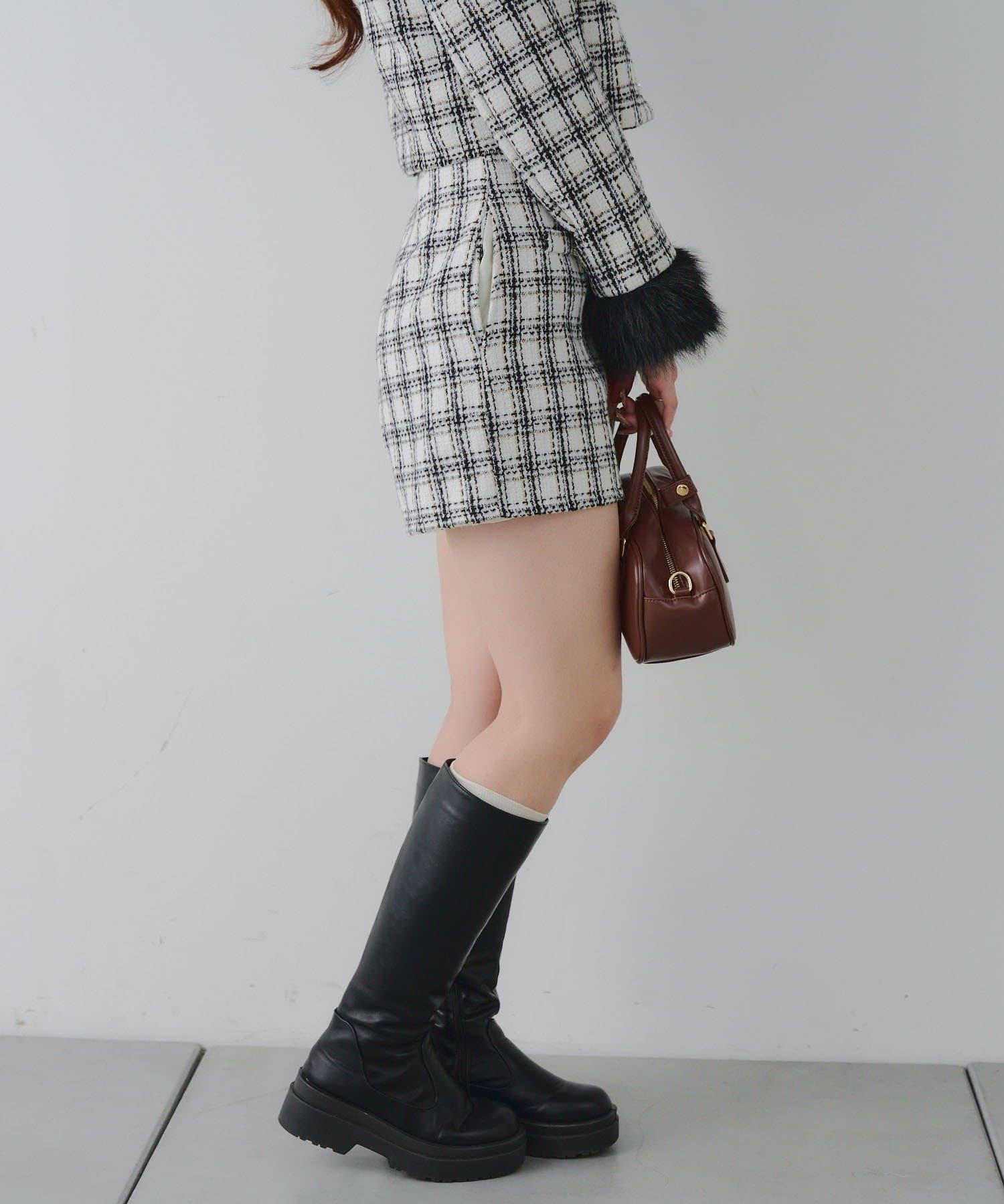 ・ハイウエストボトムなので、ショート丈トップスやジャケットとの合わせが抜群です。