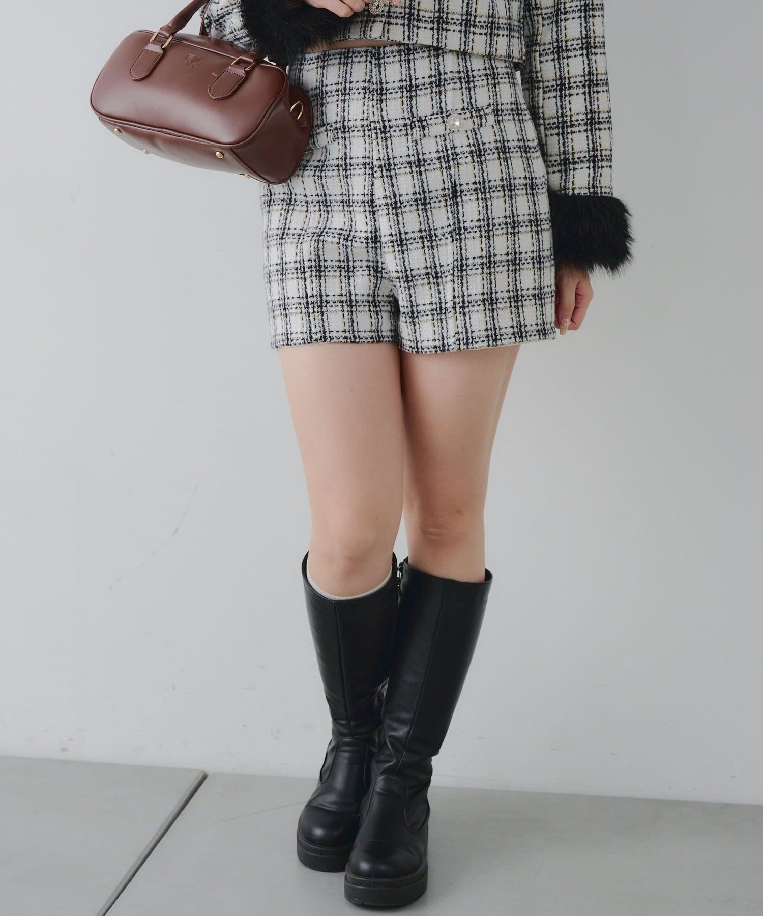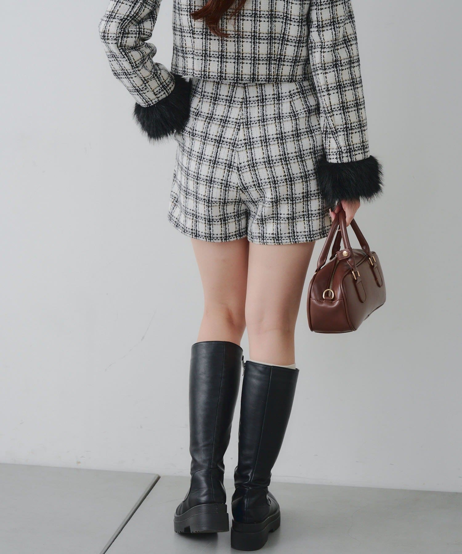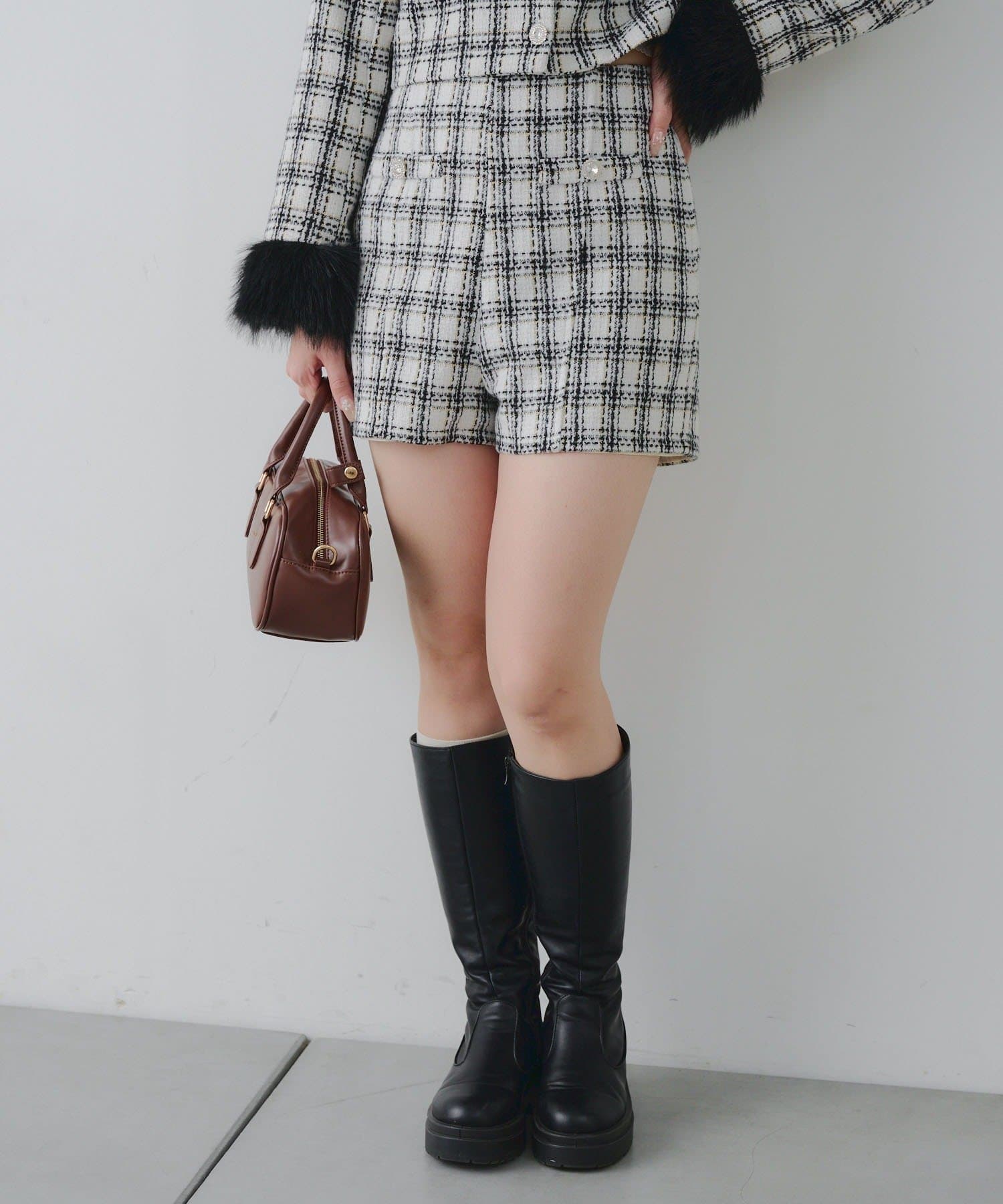 ・ハイウエストボトムなので、ショート丈トップスやジャケットとの合わせが抜群です。