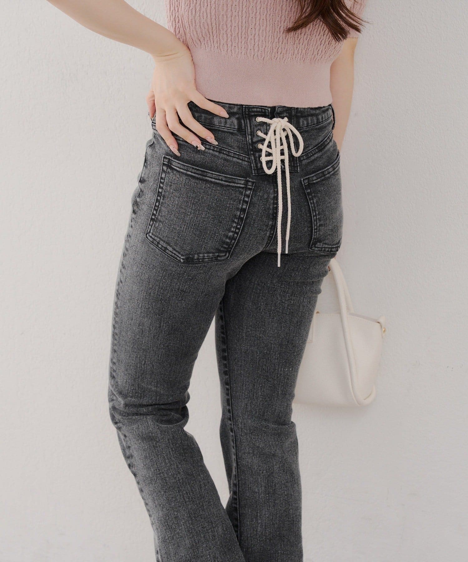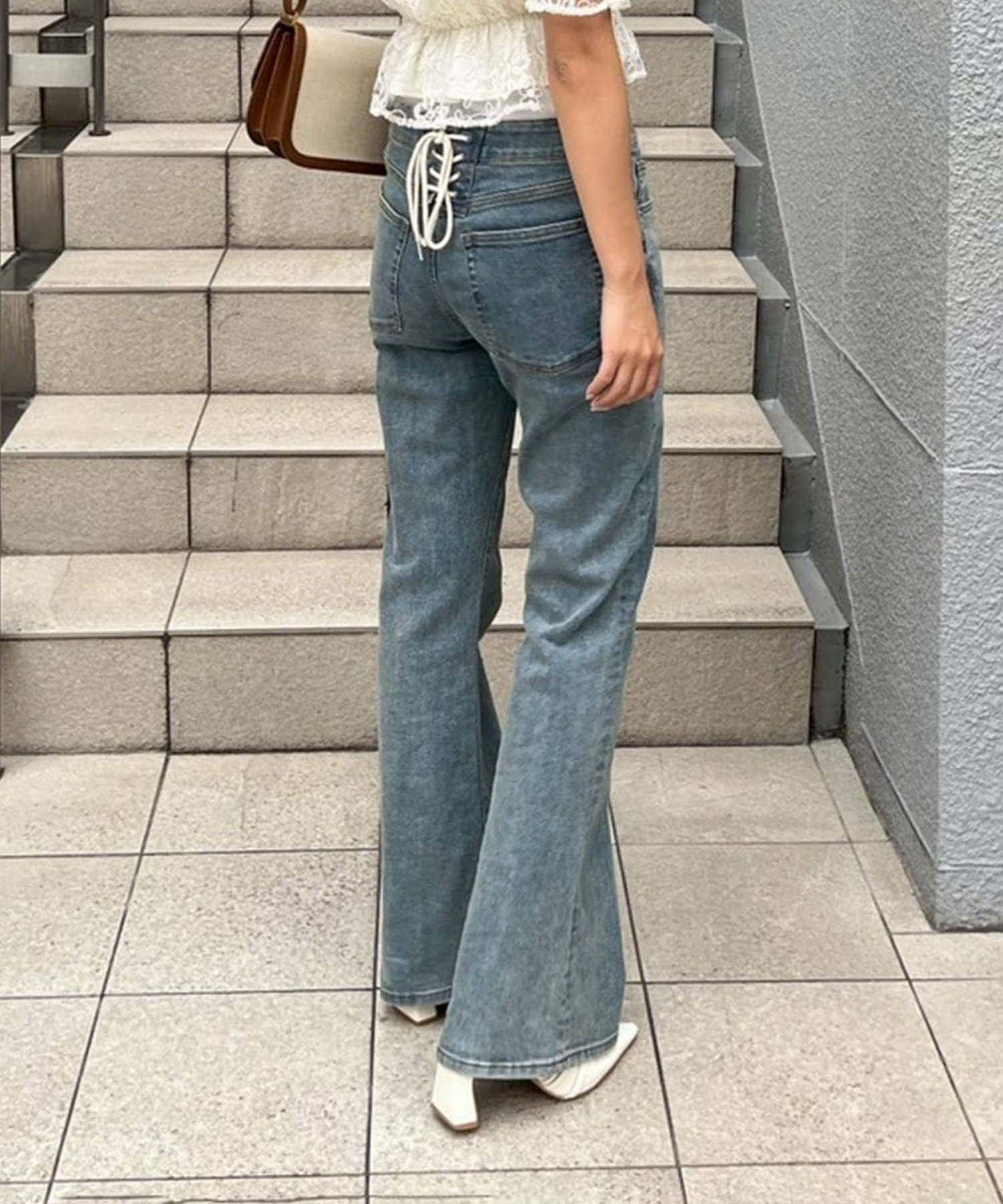 TOP > NICE CLAUP / OLIVE des OLIVE OUTLET > レディース > パンツ > デニムパンツ > 後ろレースアップフレアパンツ