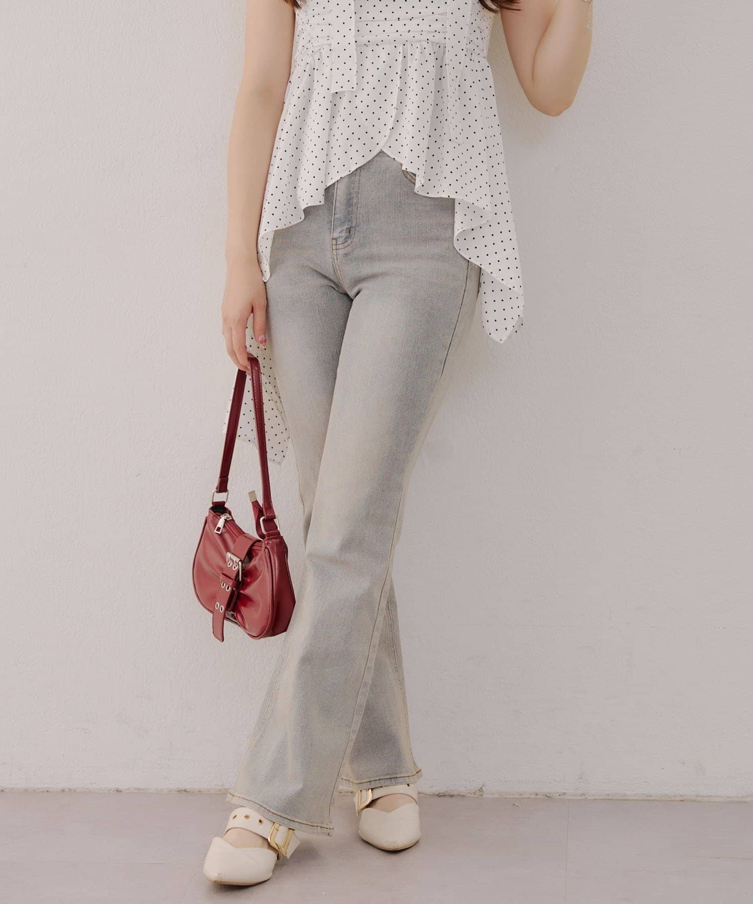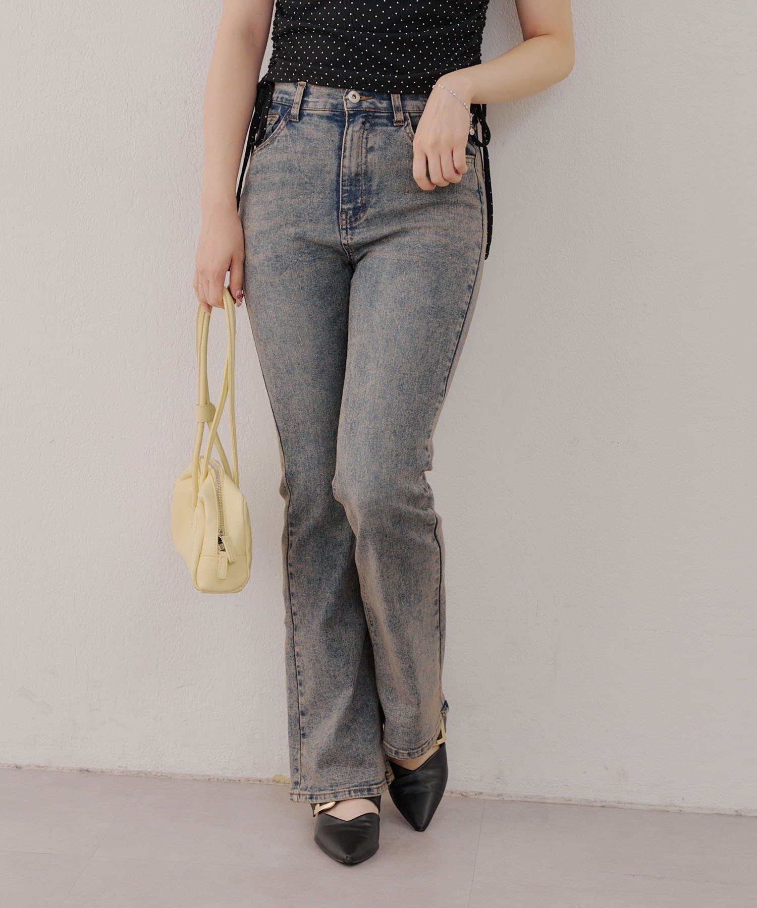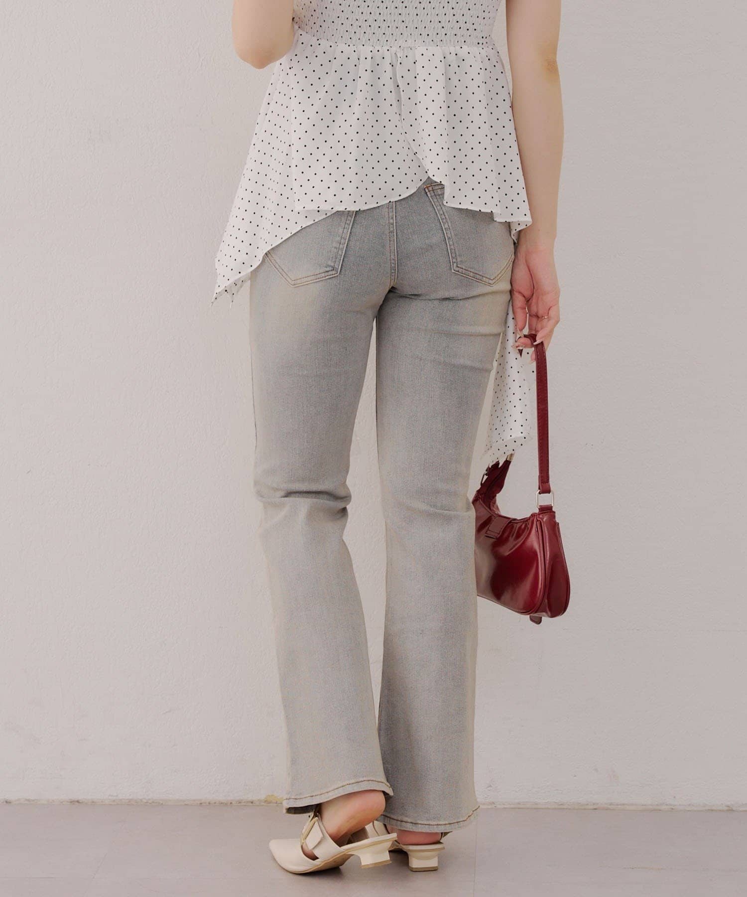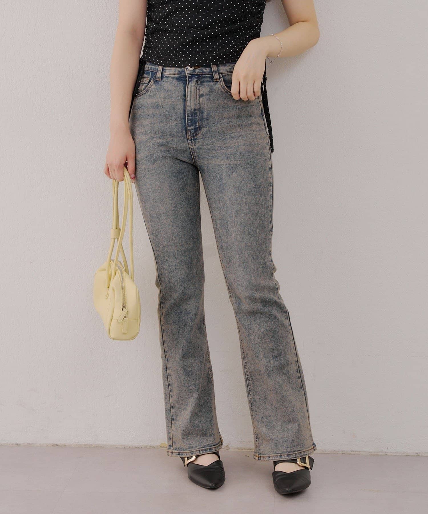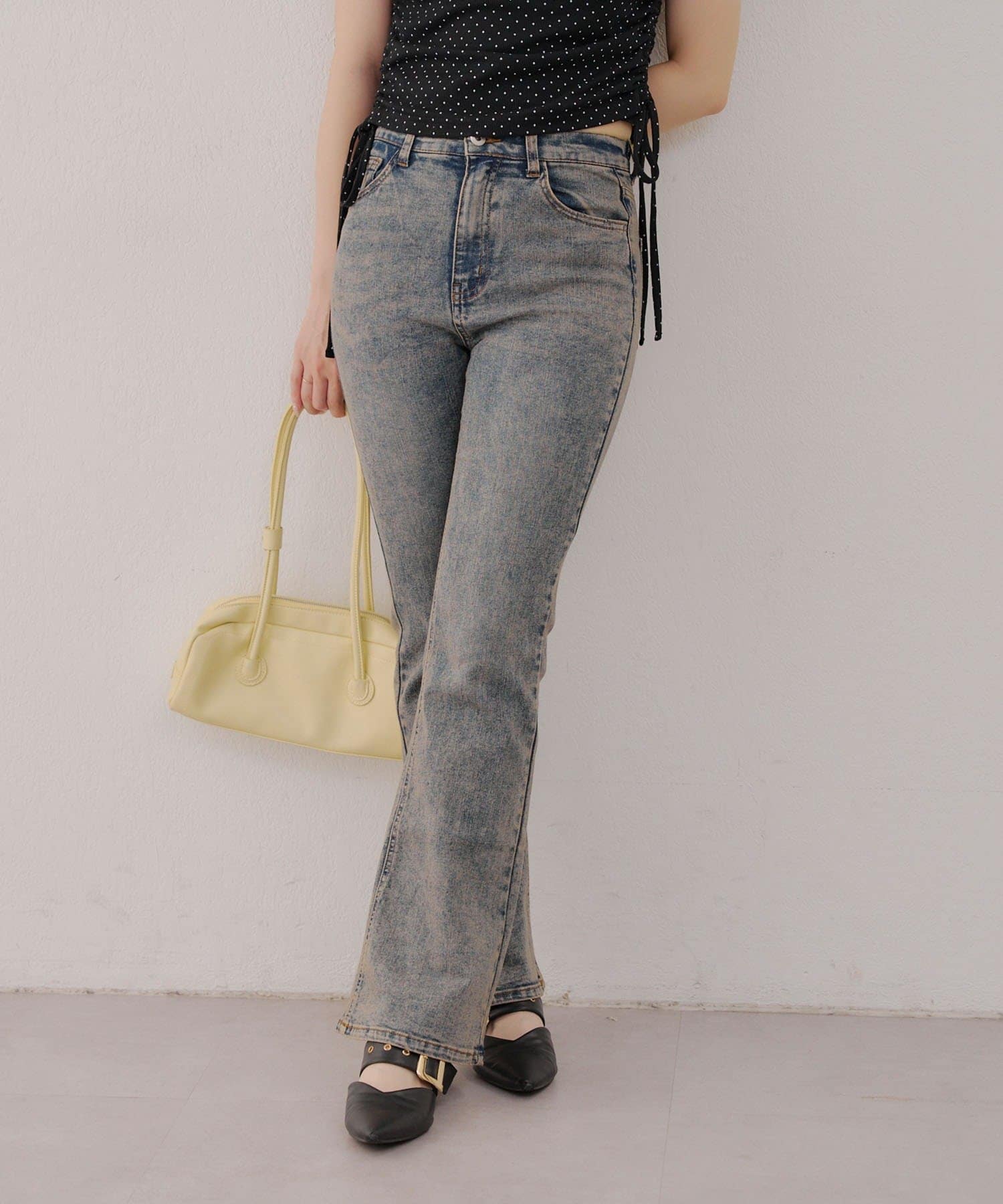 ・トレンドのフレアシルエットで、脚長効果抜群のデニムパンツ。