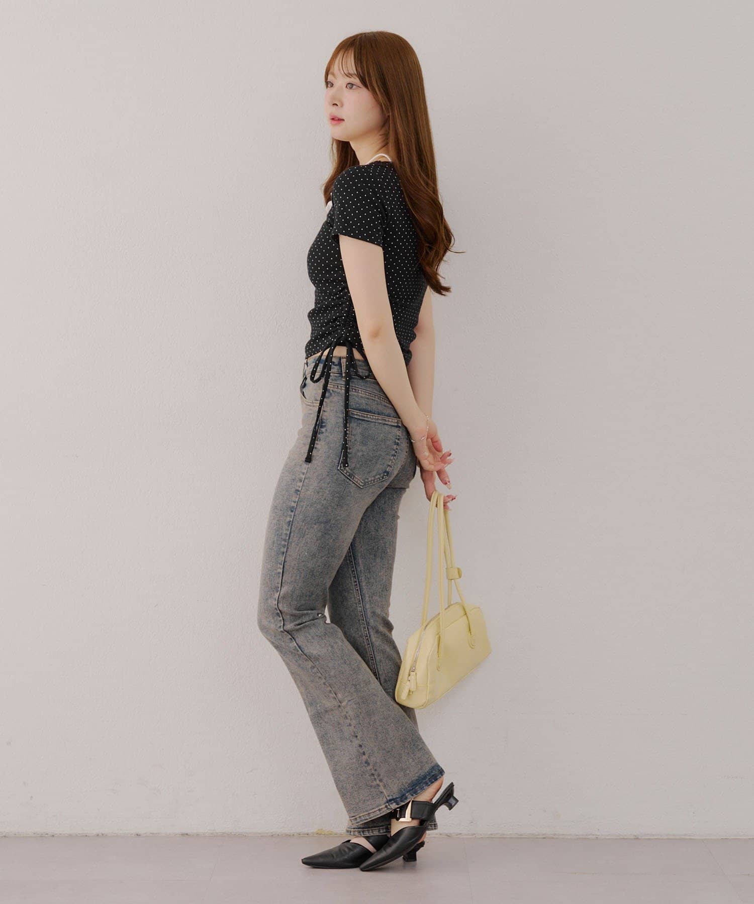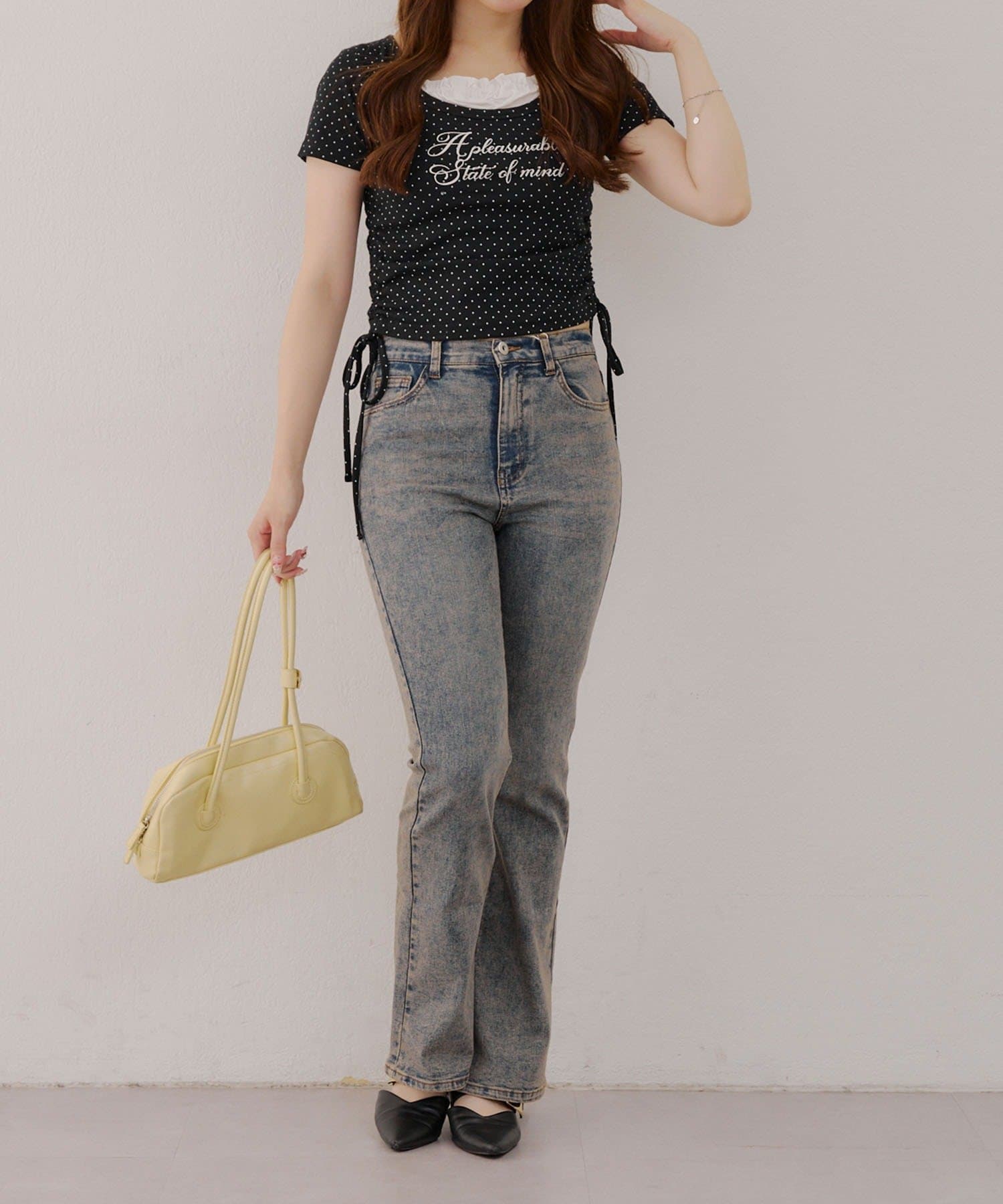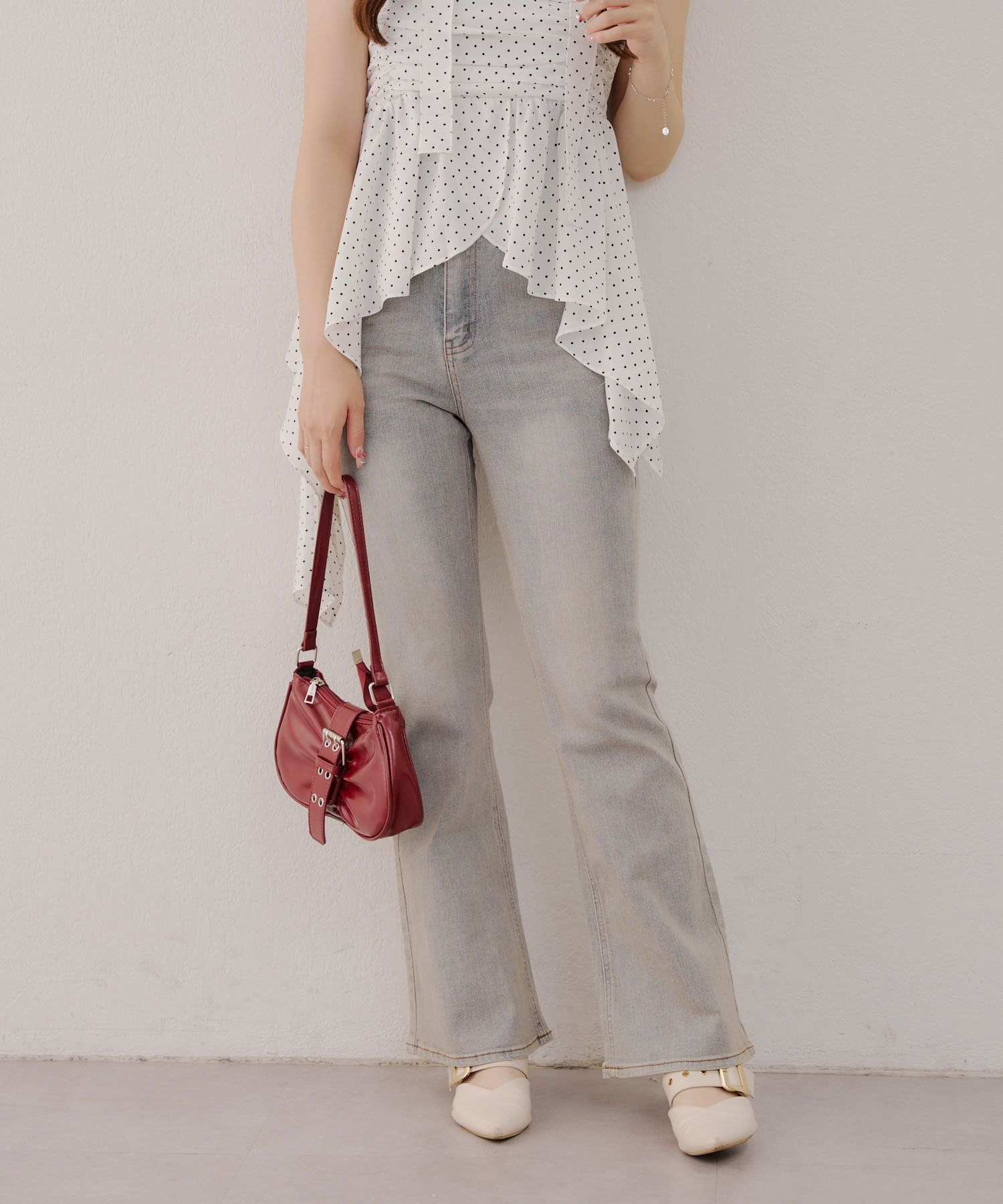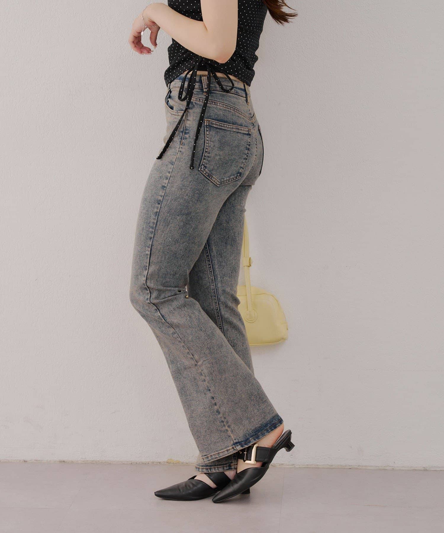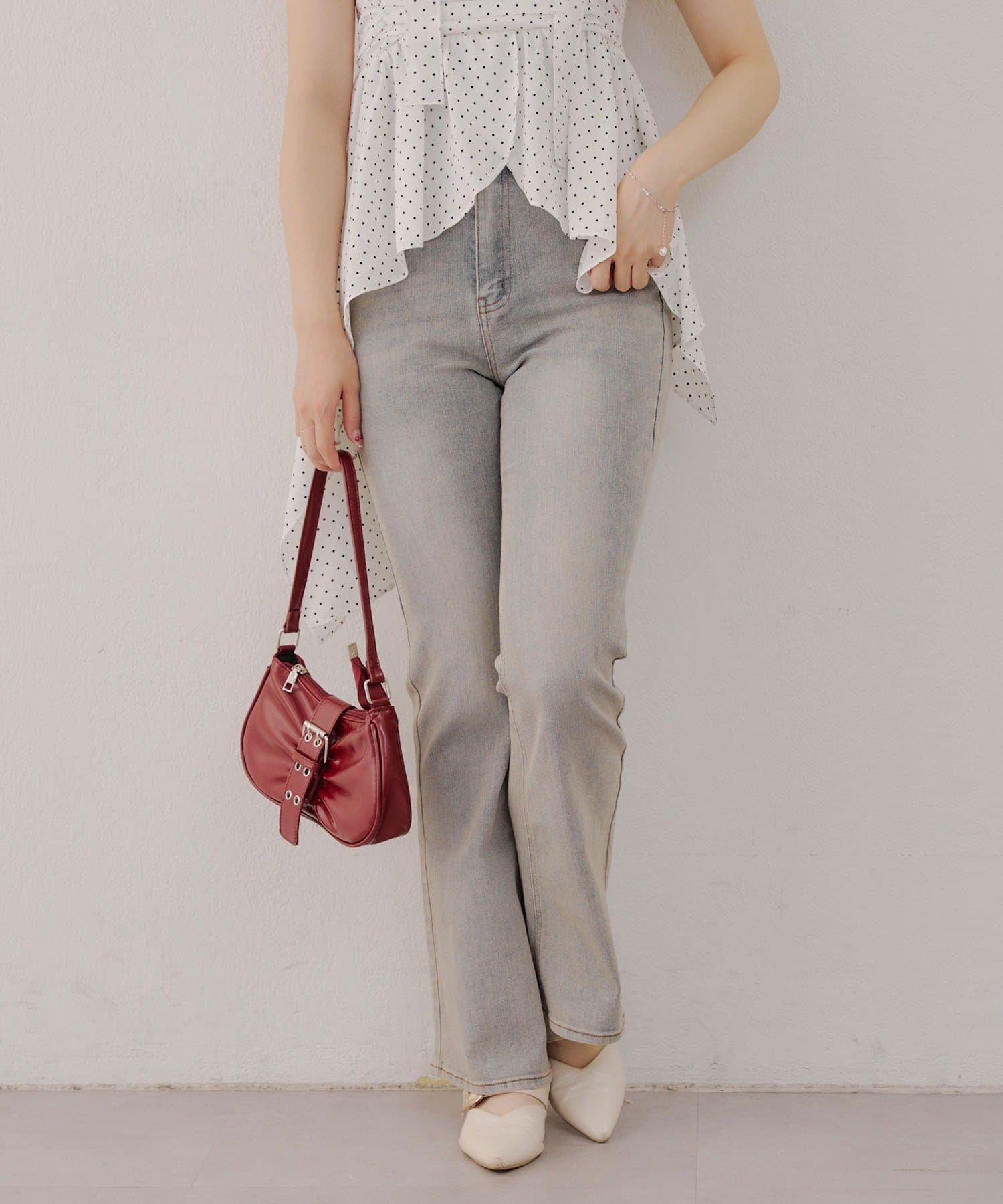 ・トレンドのフレアシルエットで、脚長効果抜群のデニムパンツ。