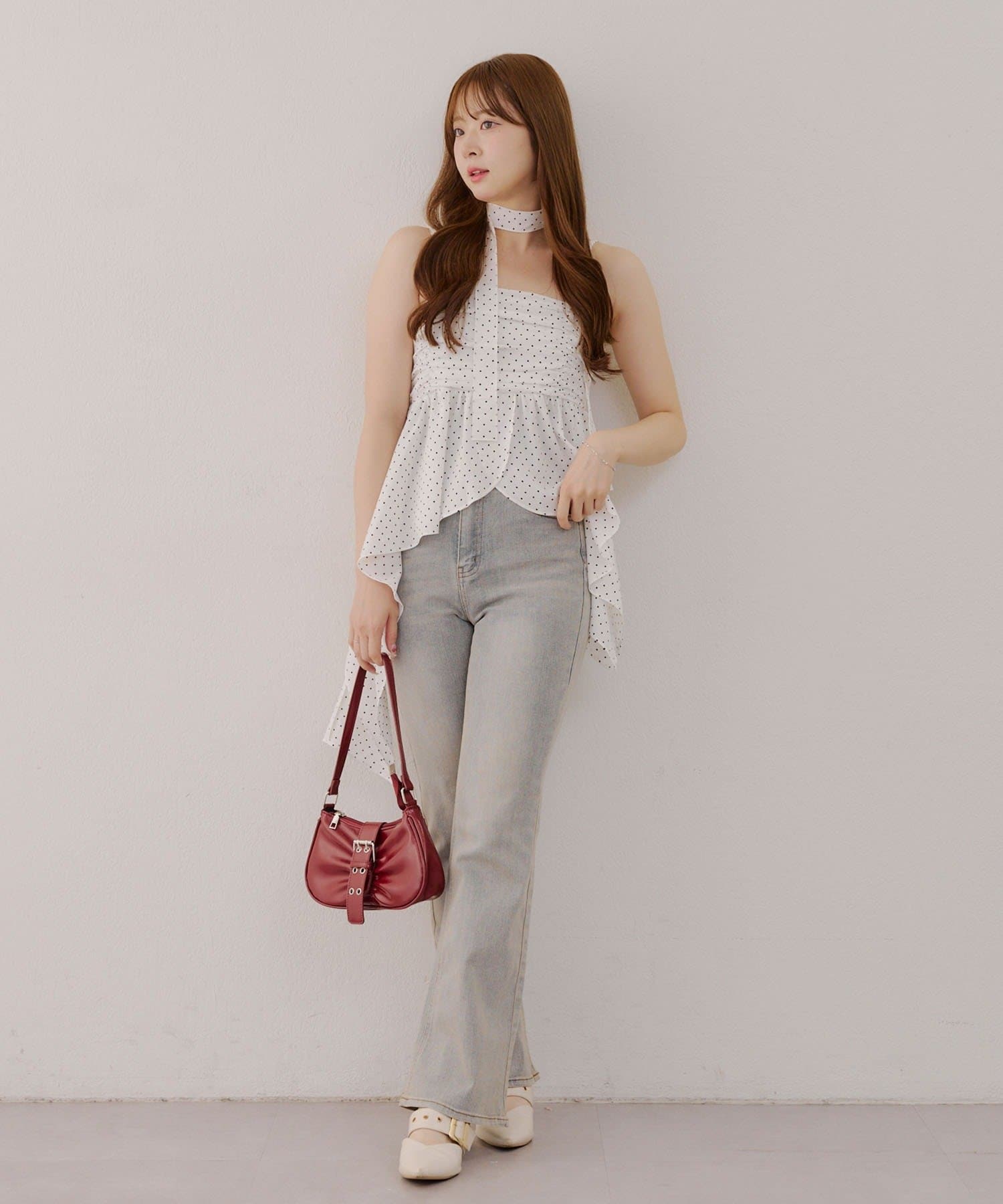 ・コンパクトなトップスと合わせてスタイルアップした着こなしもおすすめです。