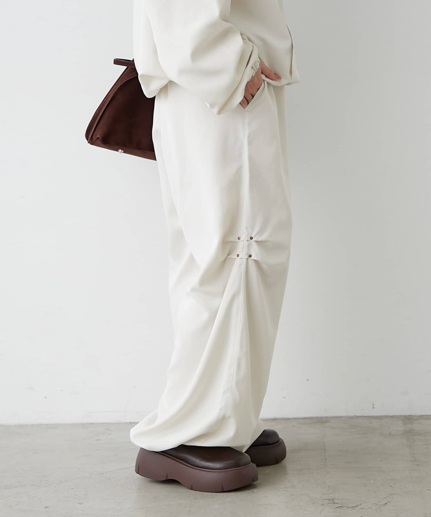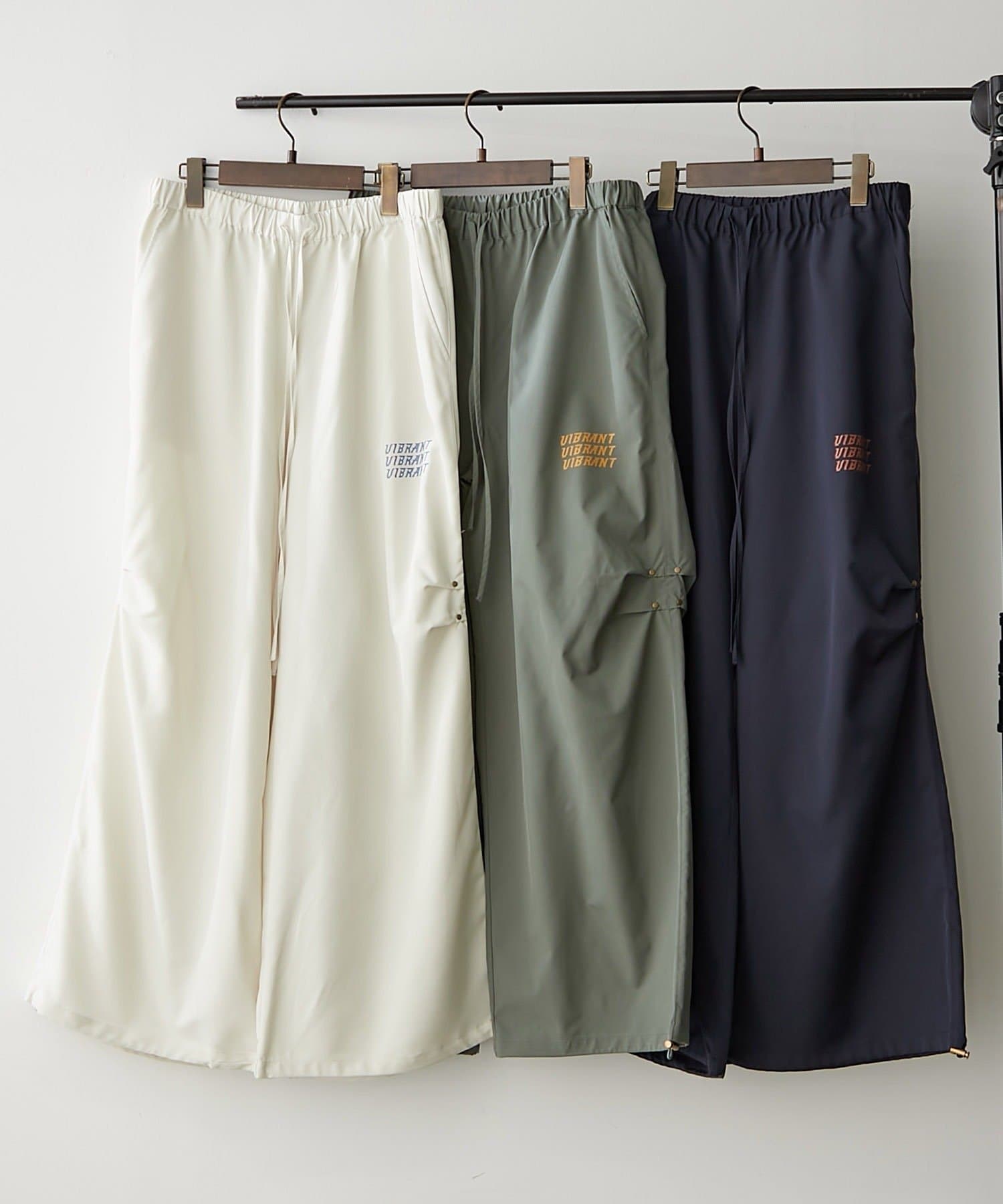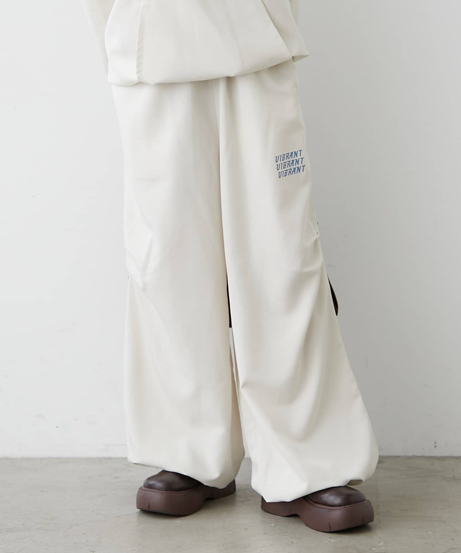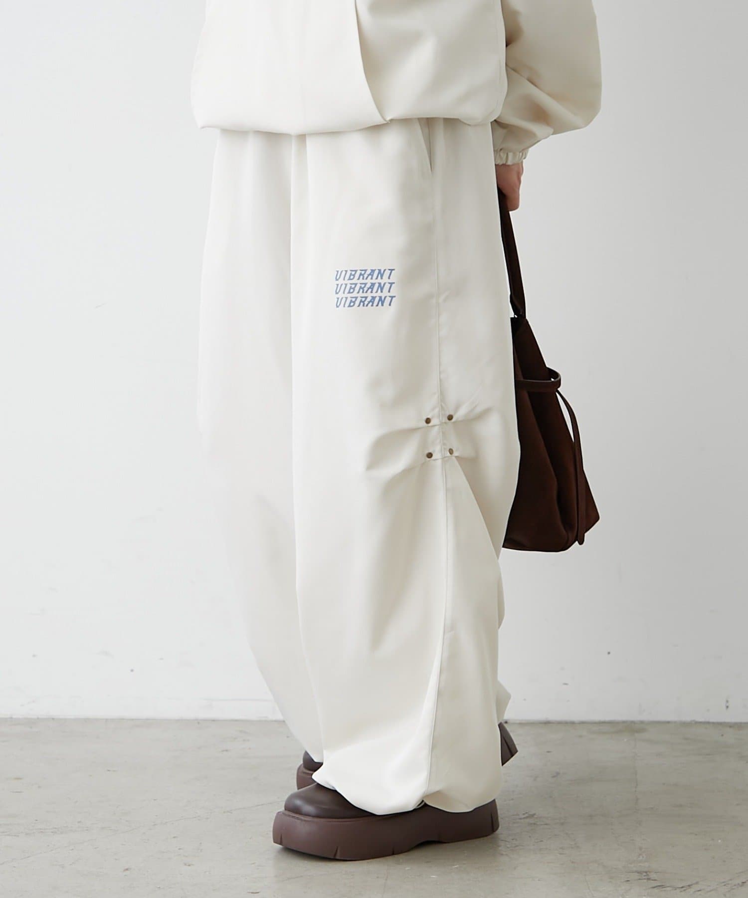 ・サイドのワンポイントロゴやタックがポイントのワイドパンツ