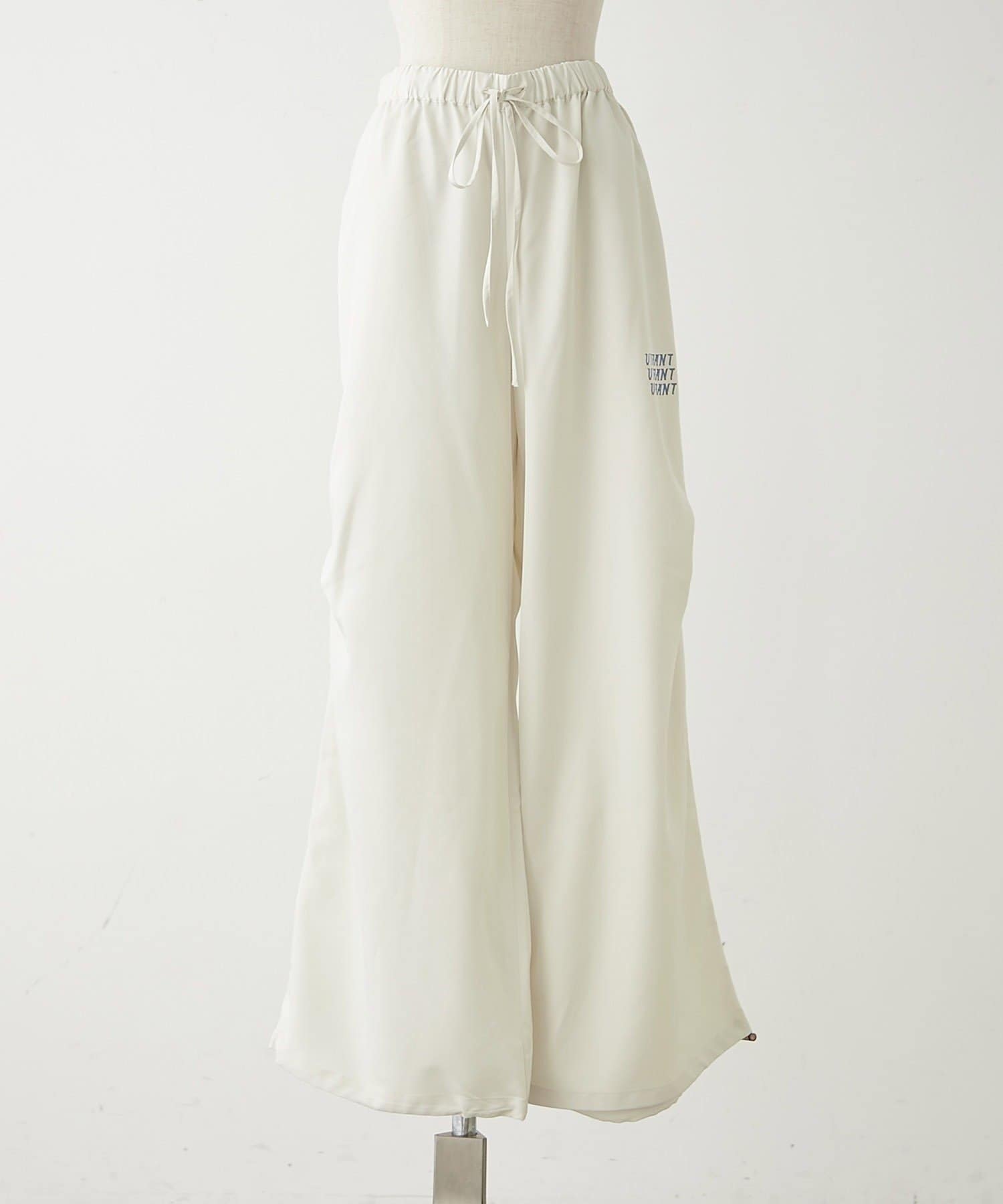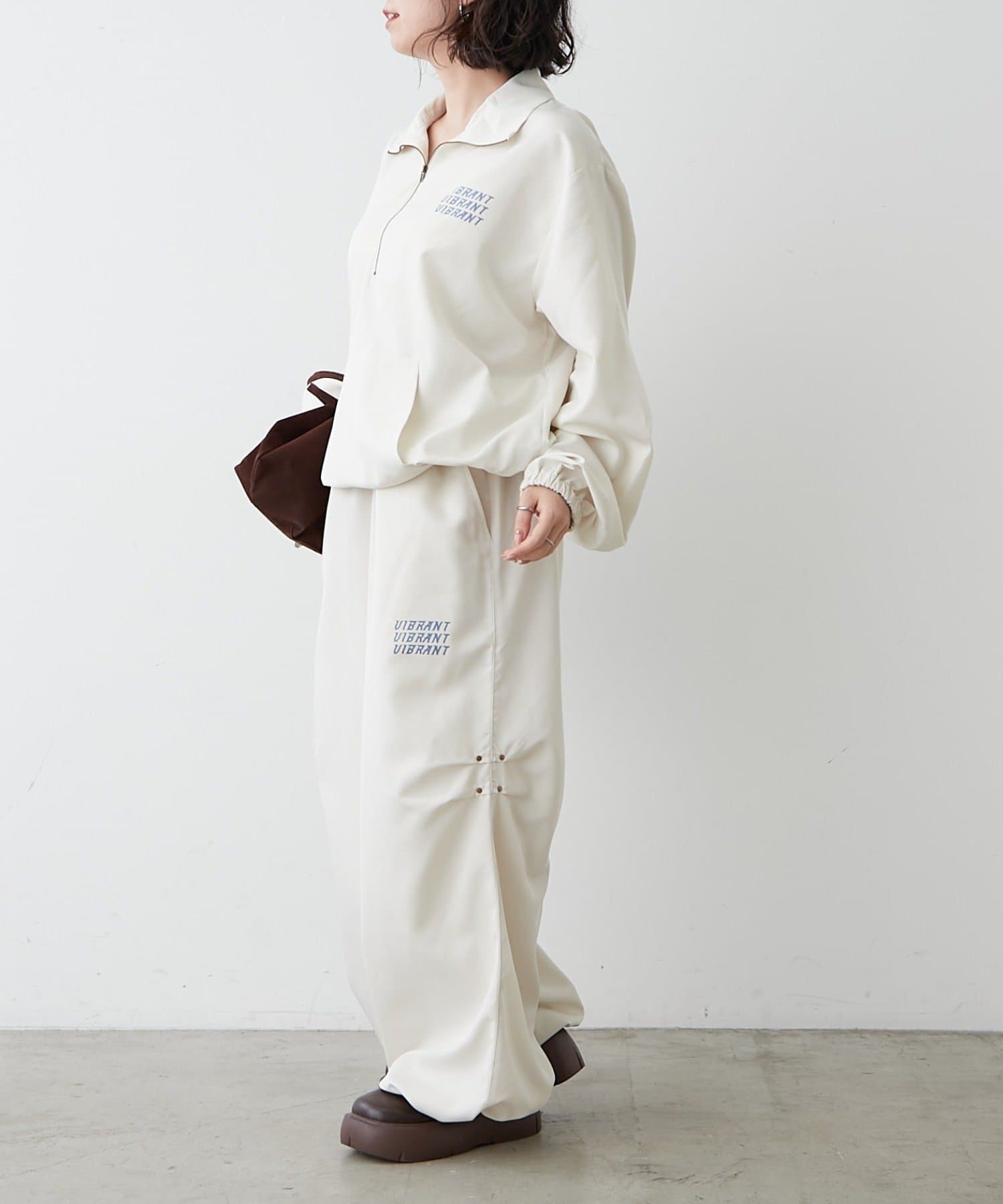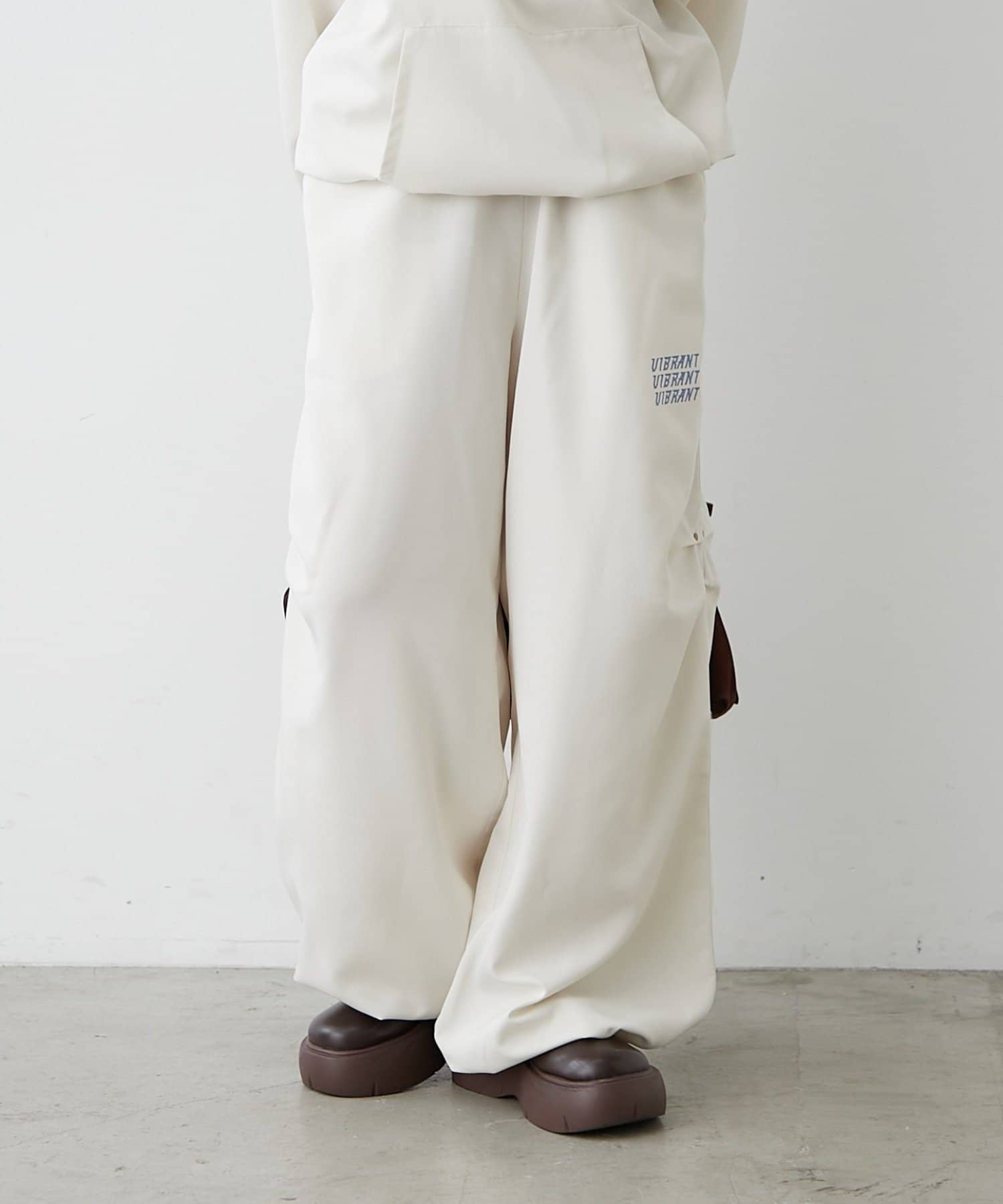 ・サイドのワンポイントロゴやタックがポイントのワイドパンツ