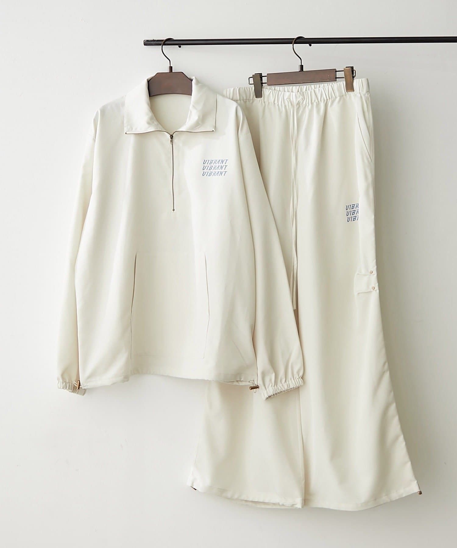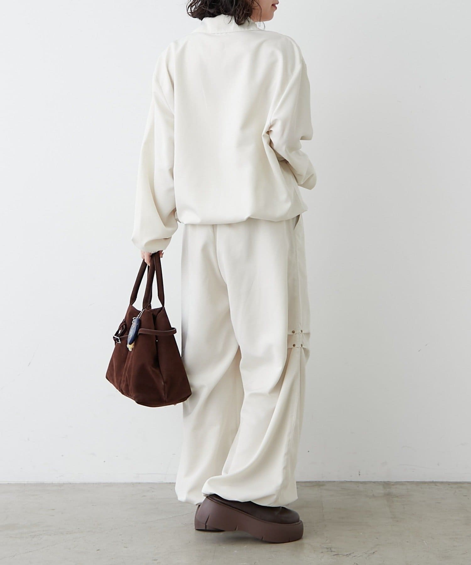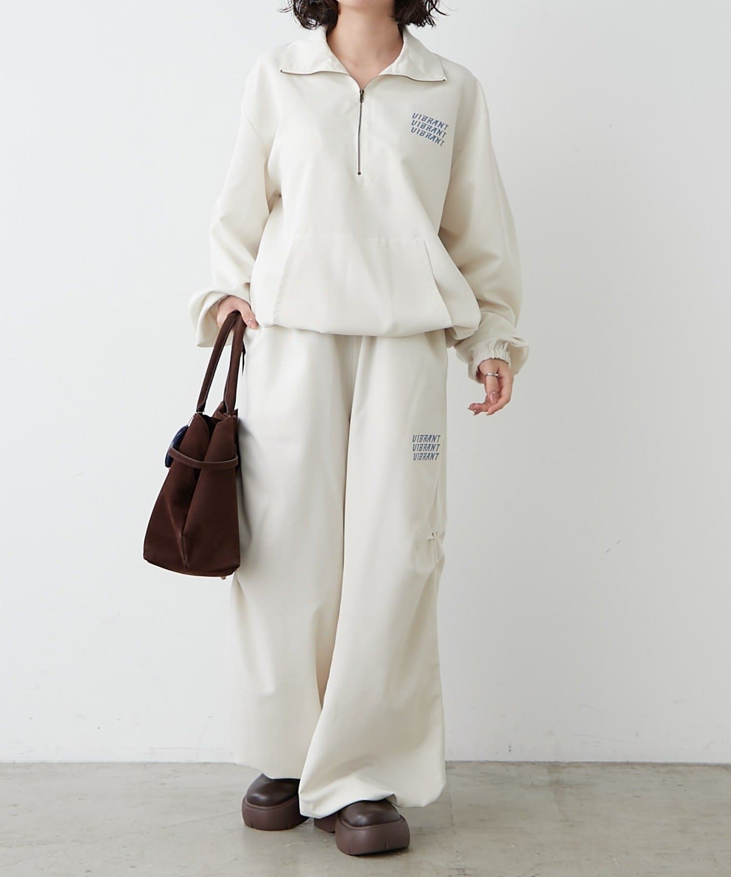・サイドのワンポイントロゴやタックがポイントのワイドパンツ