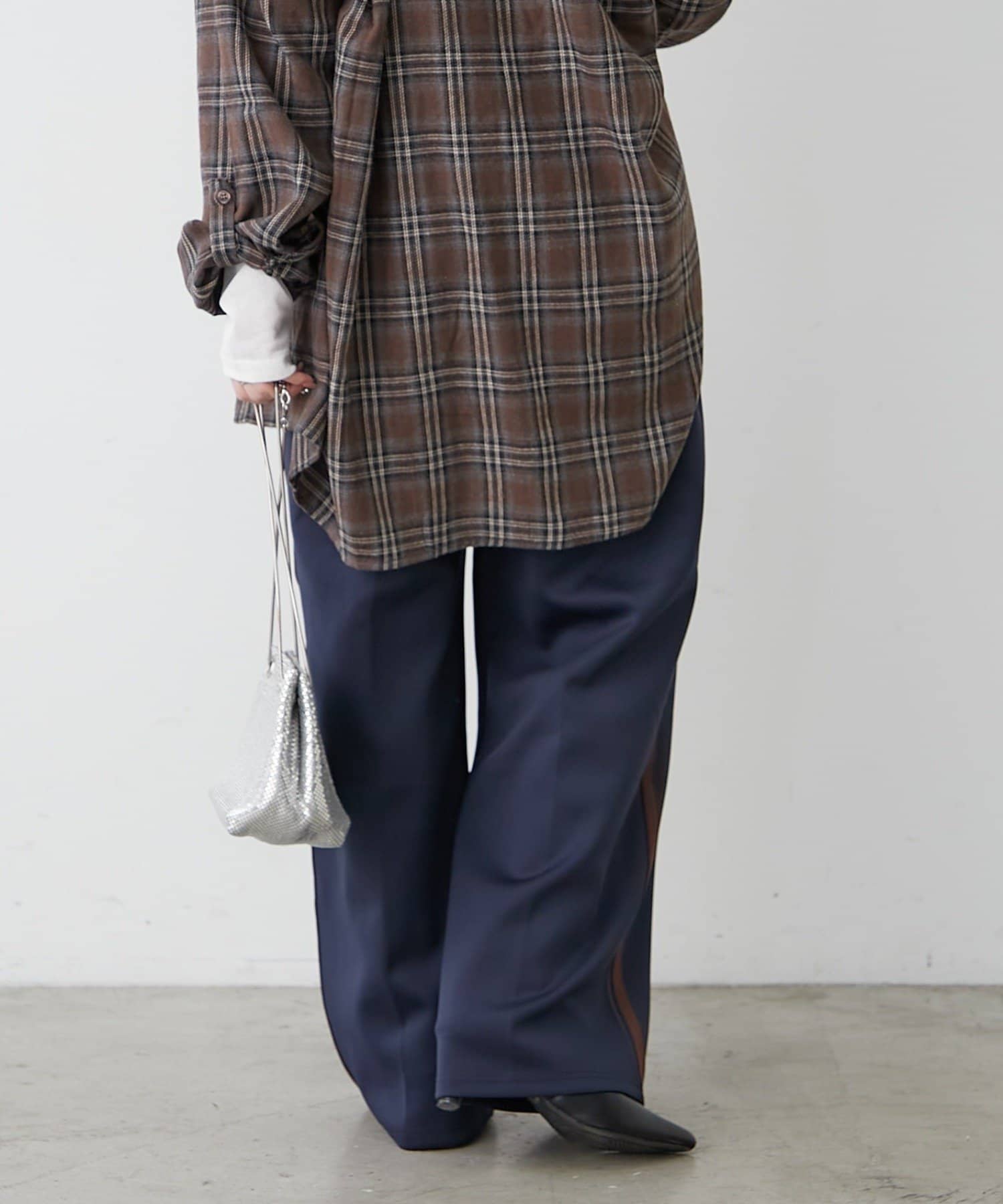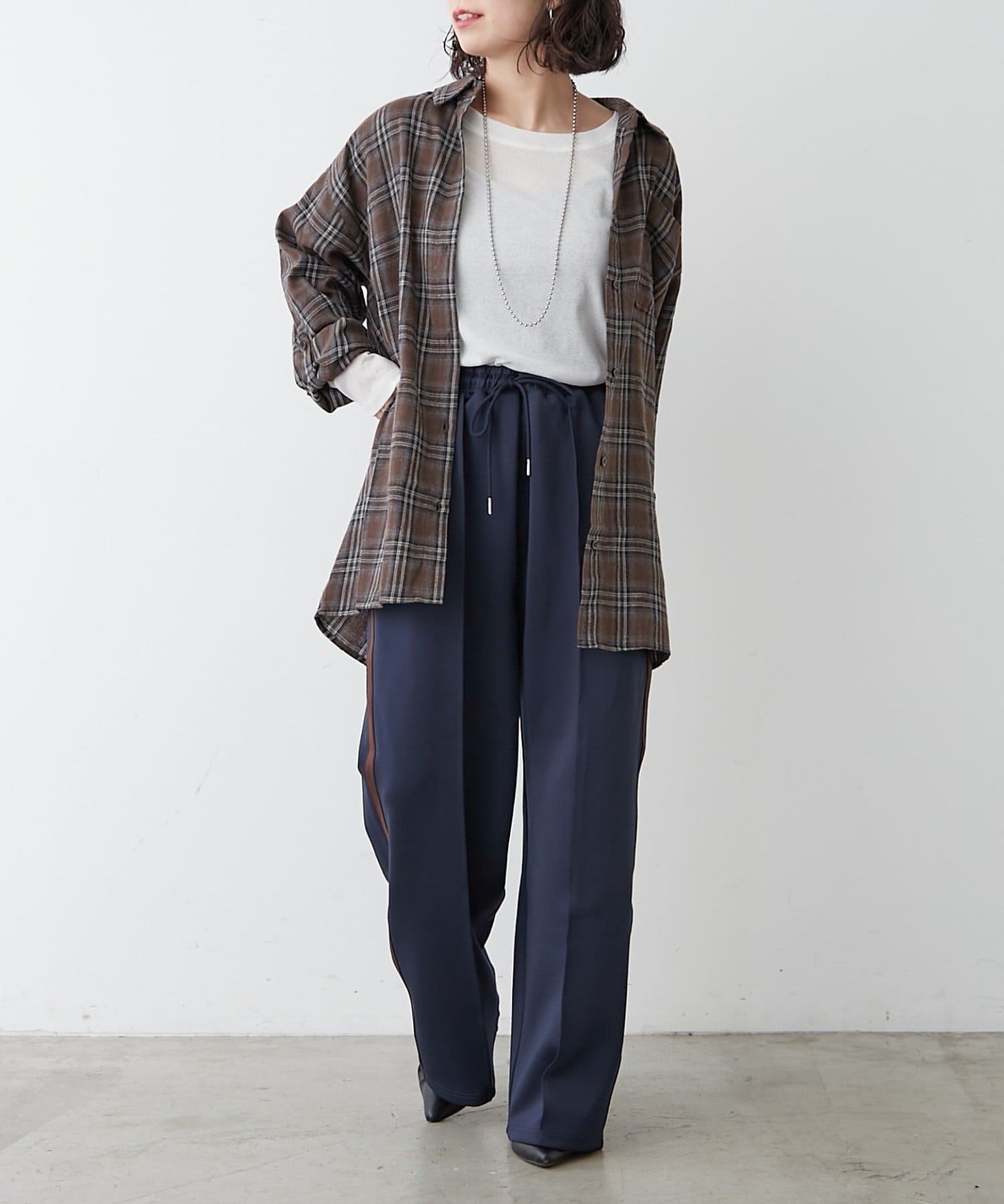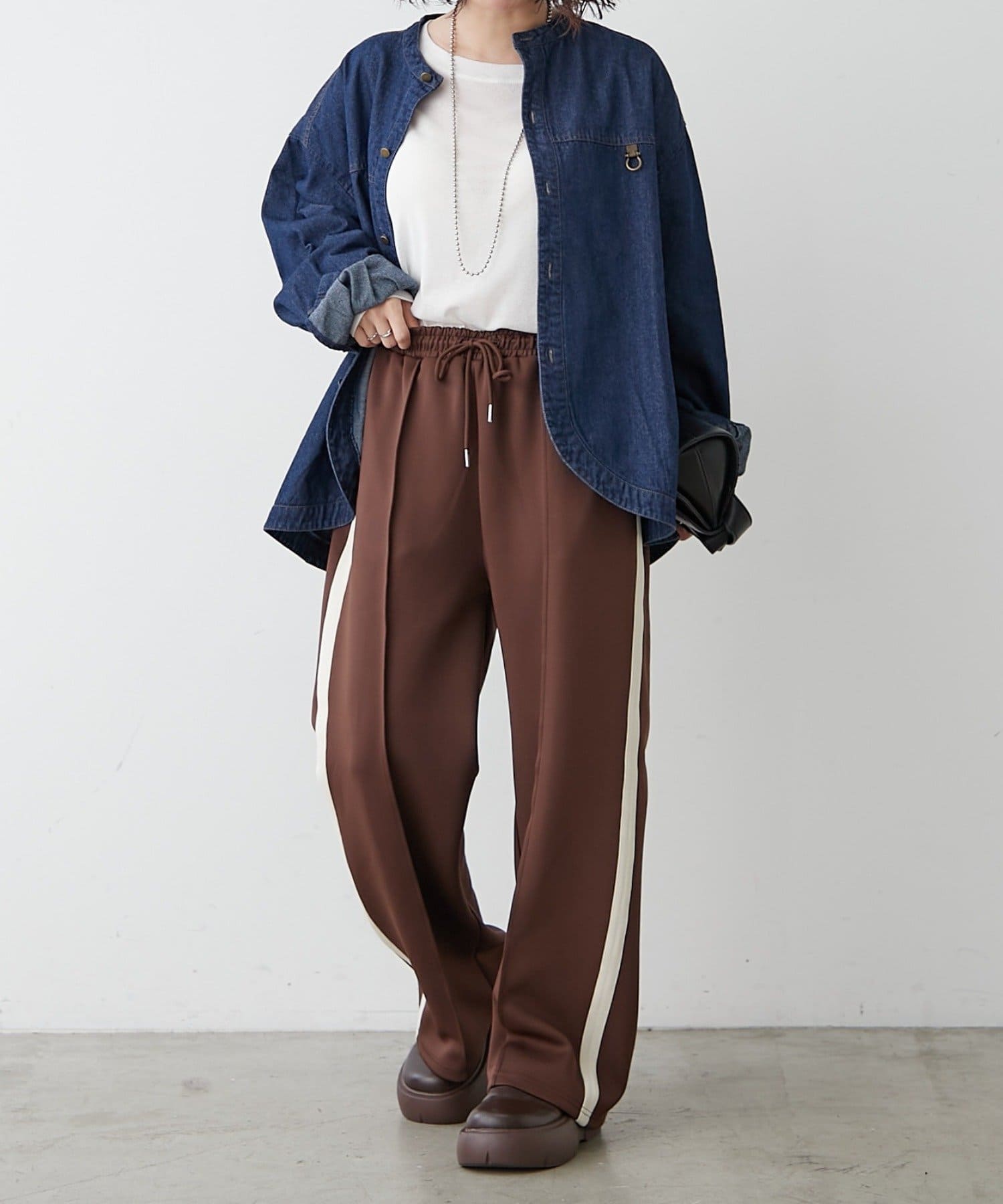 ・カジュアルなラインパンツながらセンタープレスが入っているのでキレイ見えする一枚