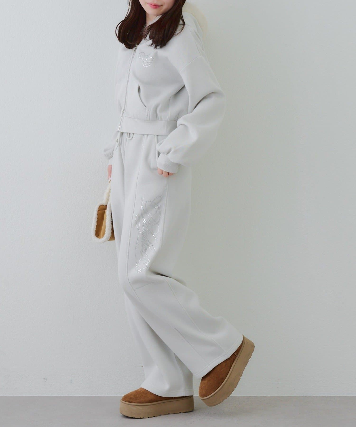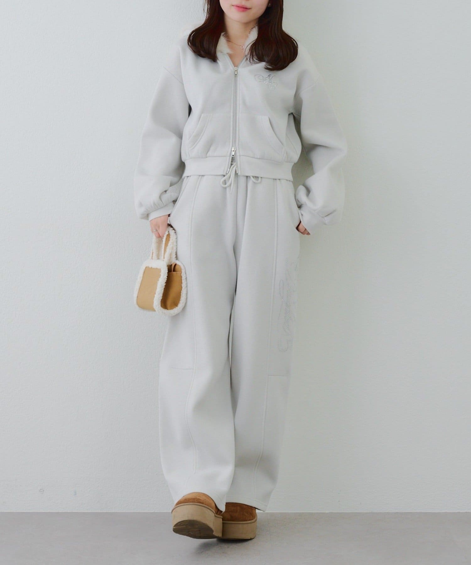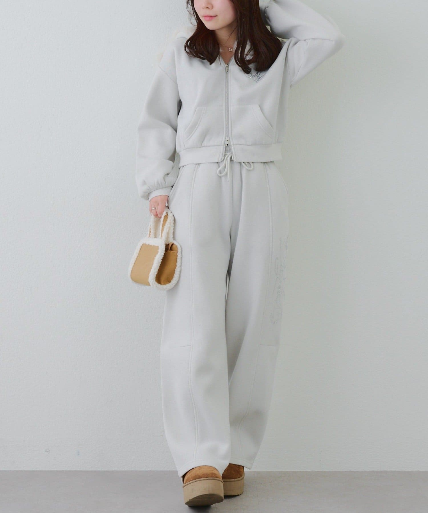 ・同素材のZIPパーカーとのセットアップコーデがおすすめ!
