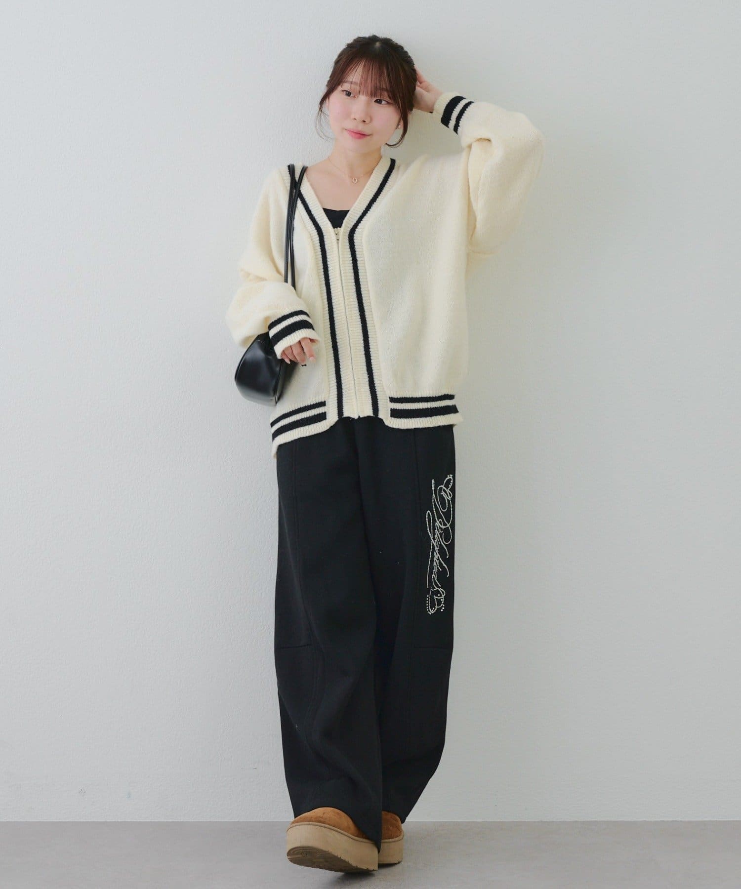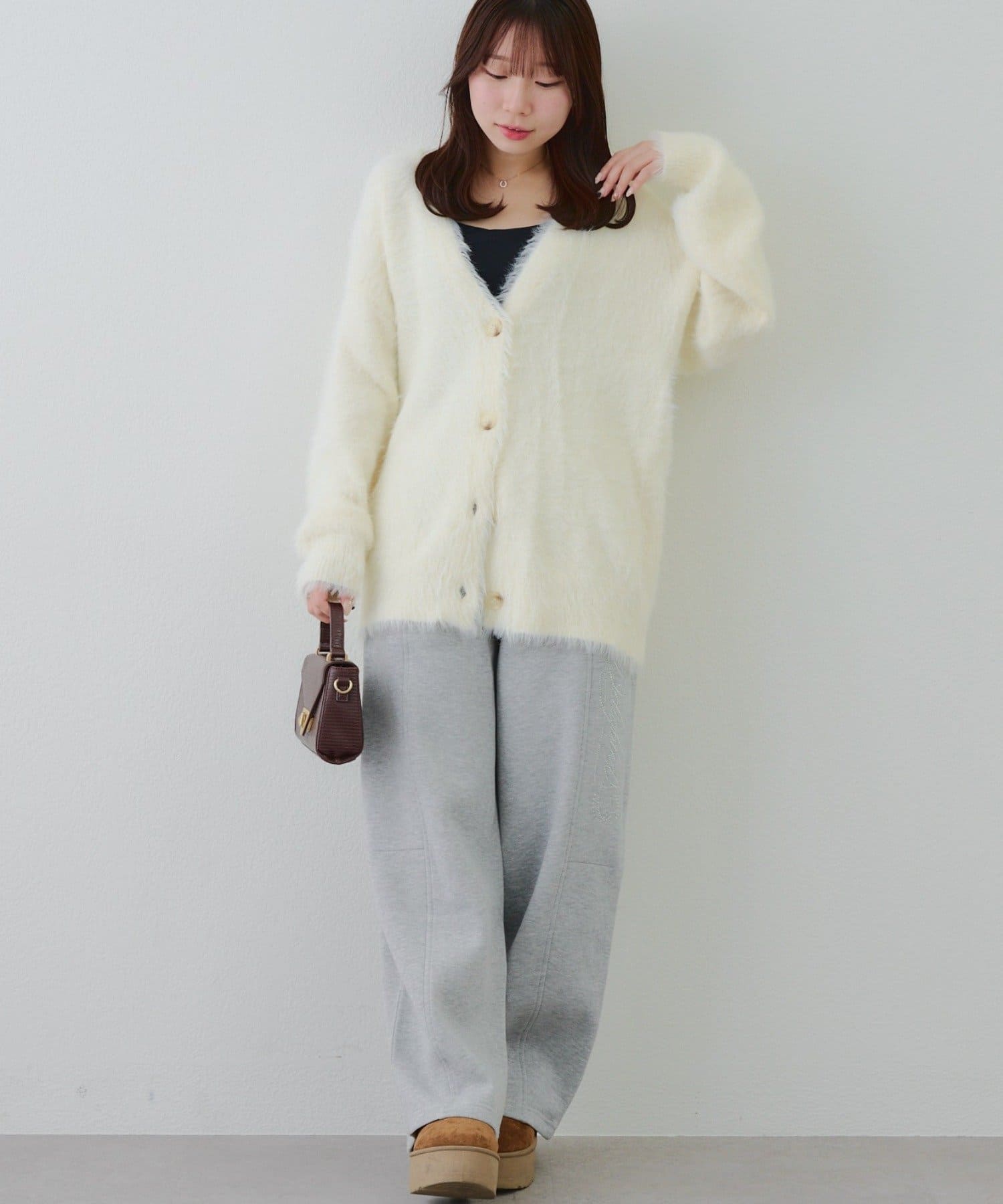 ・ざっくりとしたカーディガンとの抜け感あるスタイリングも◎