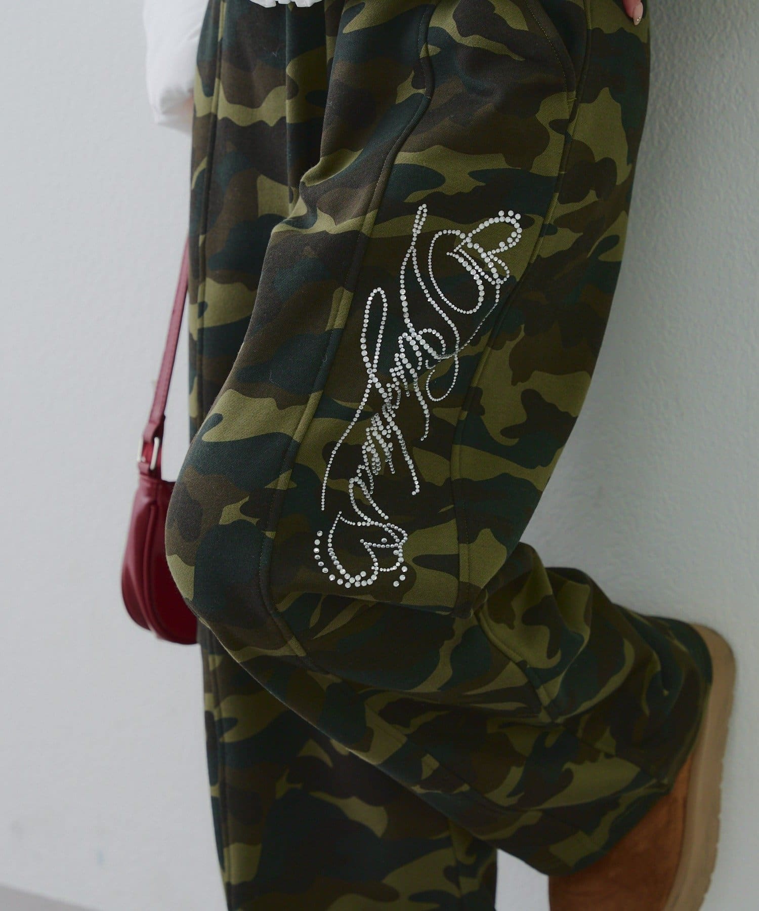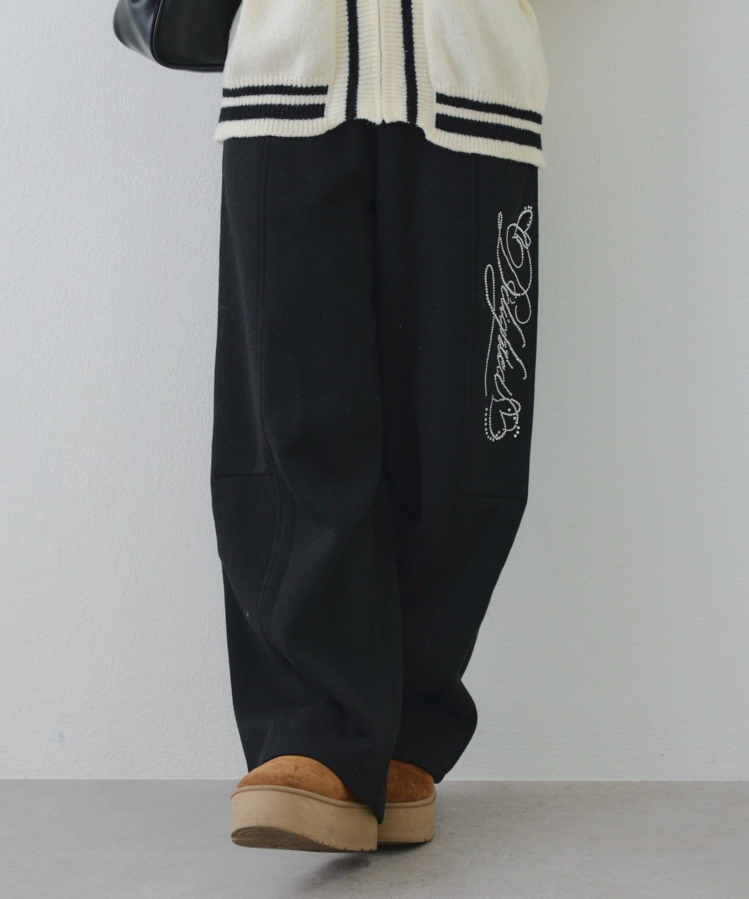 ・太もも部分に入ったラインストーンロゴが目を惹くデザイン