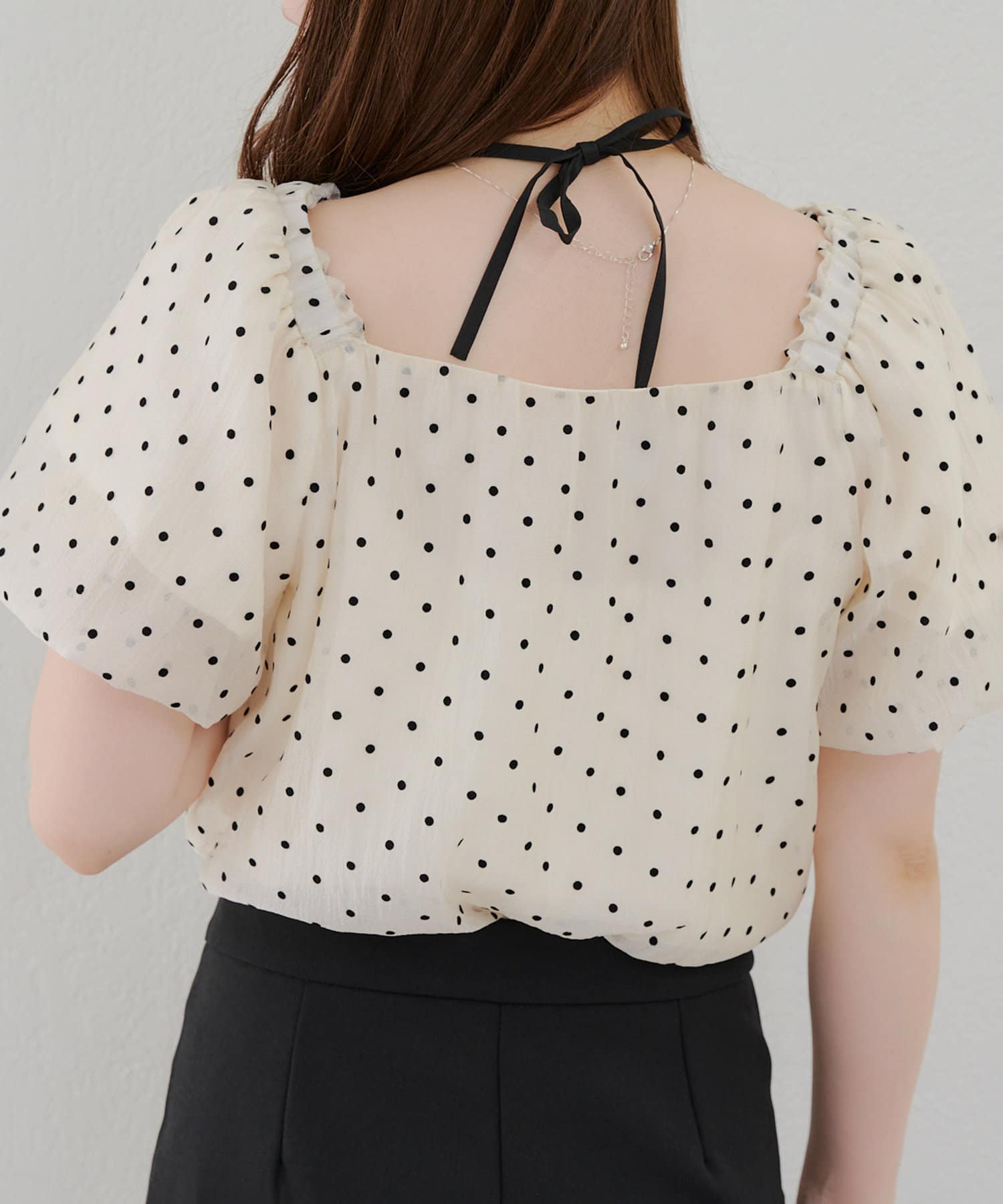 ・スクエアネックが首周りをすっきりと見せてくれ、ガーリーライクにしてくれるトップス