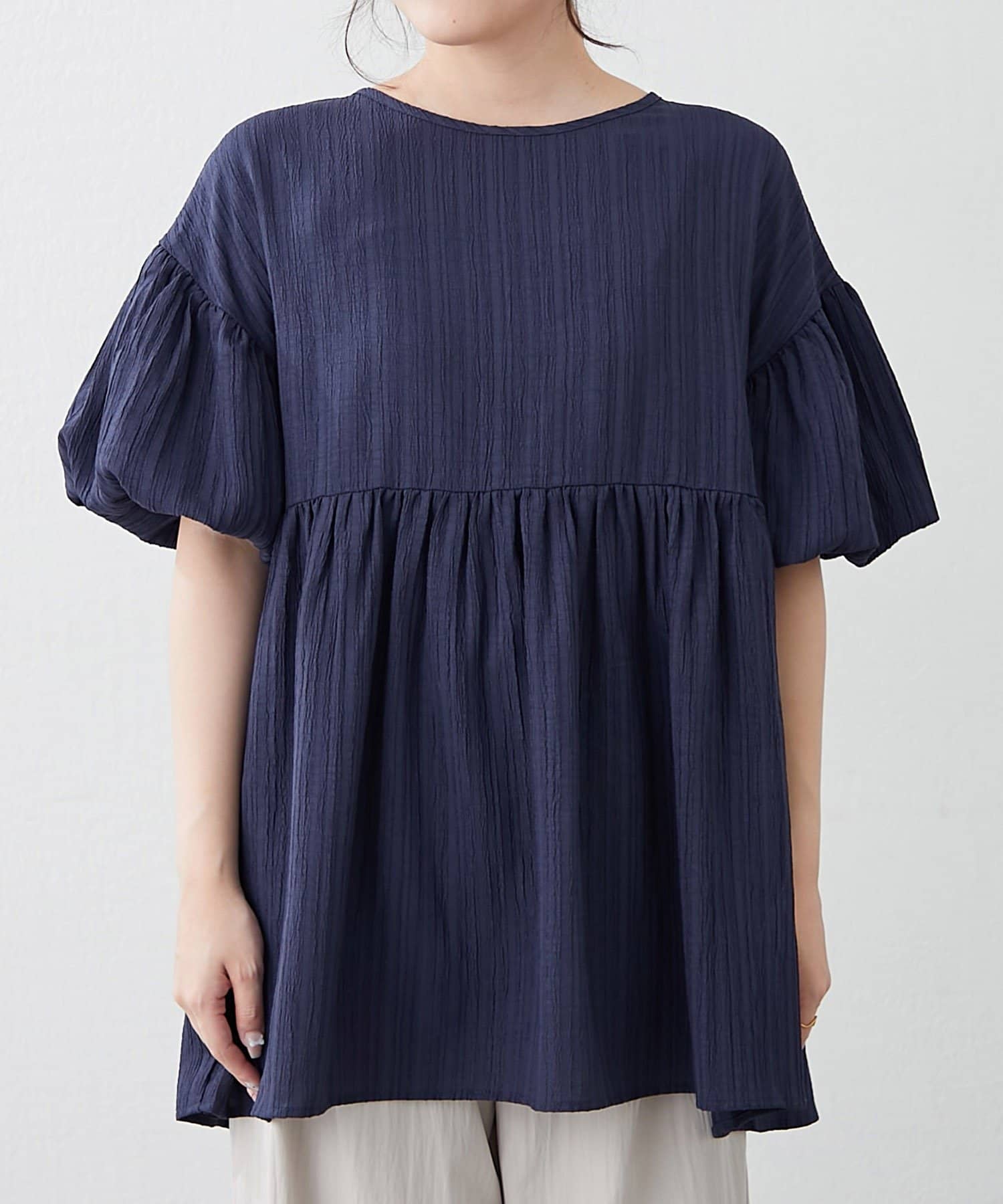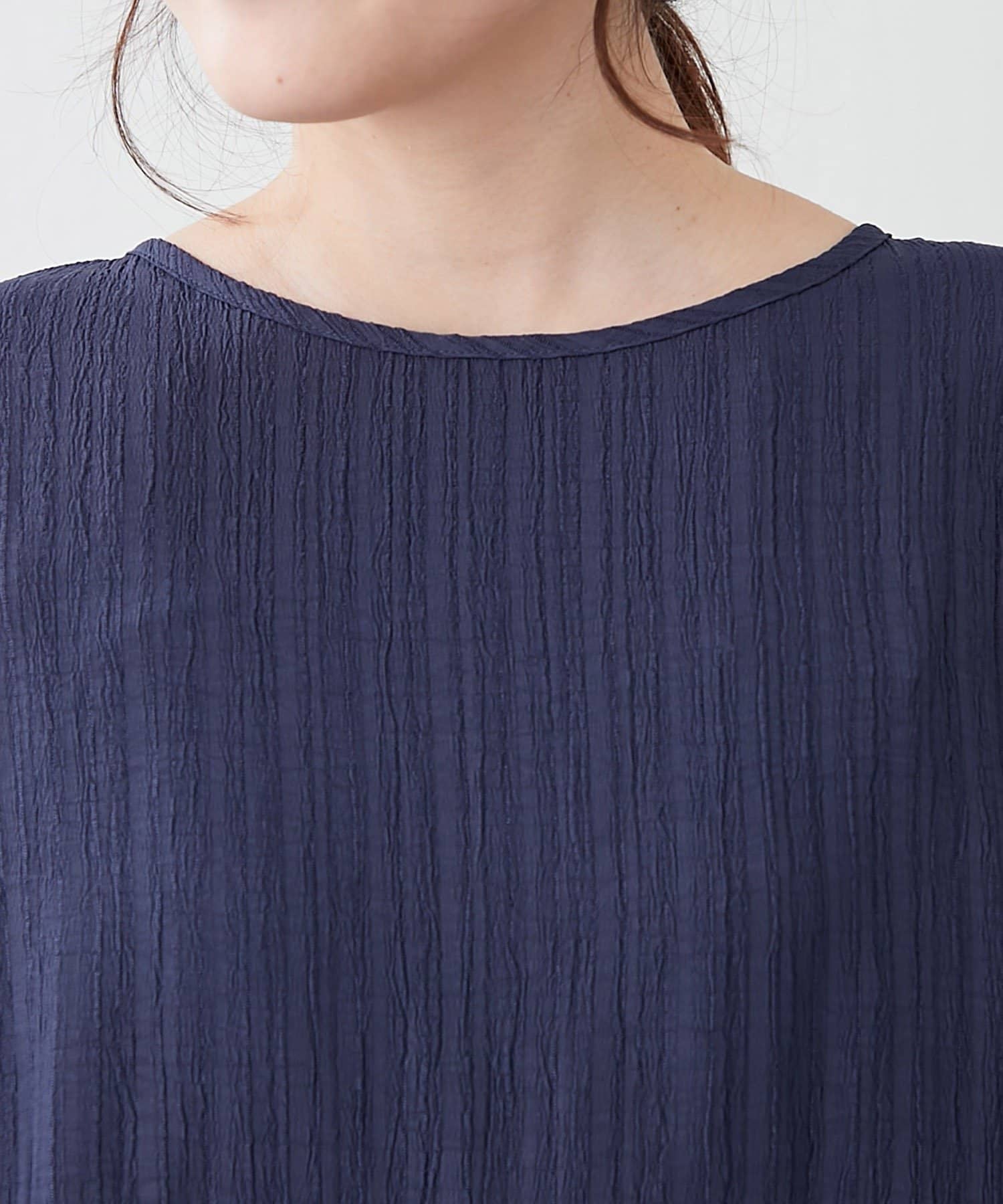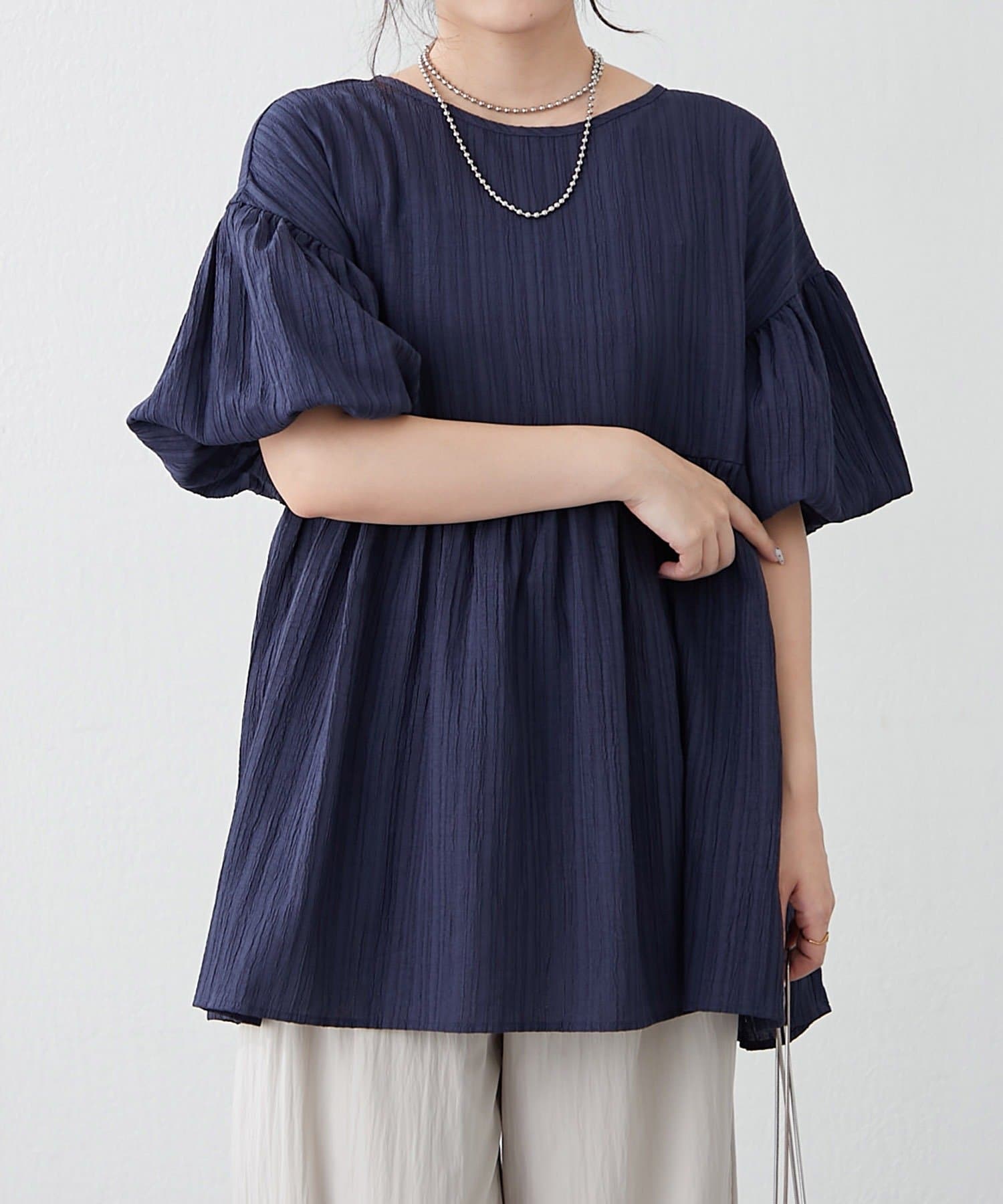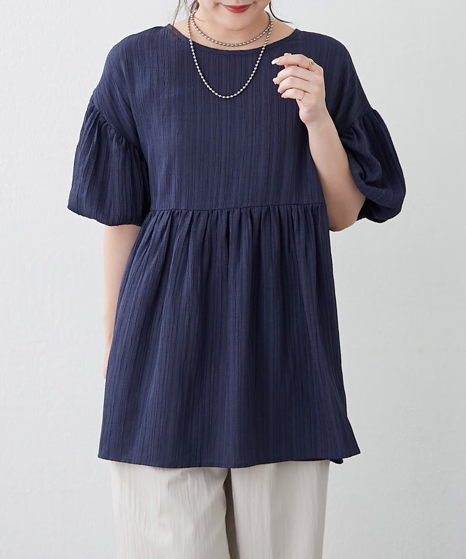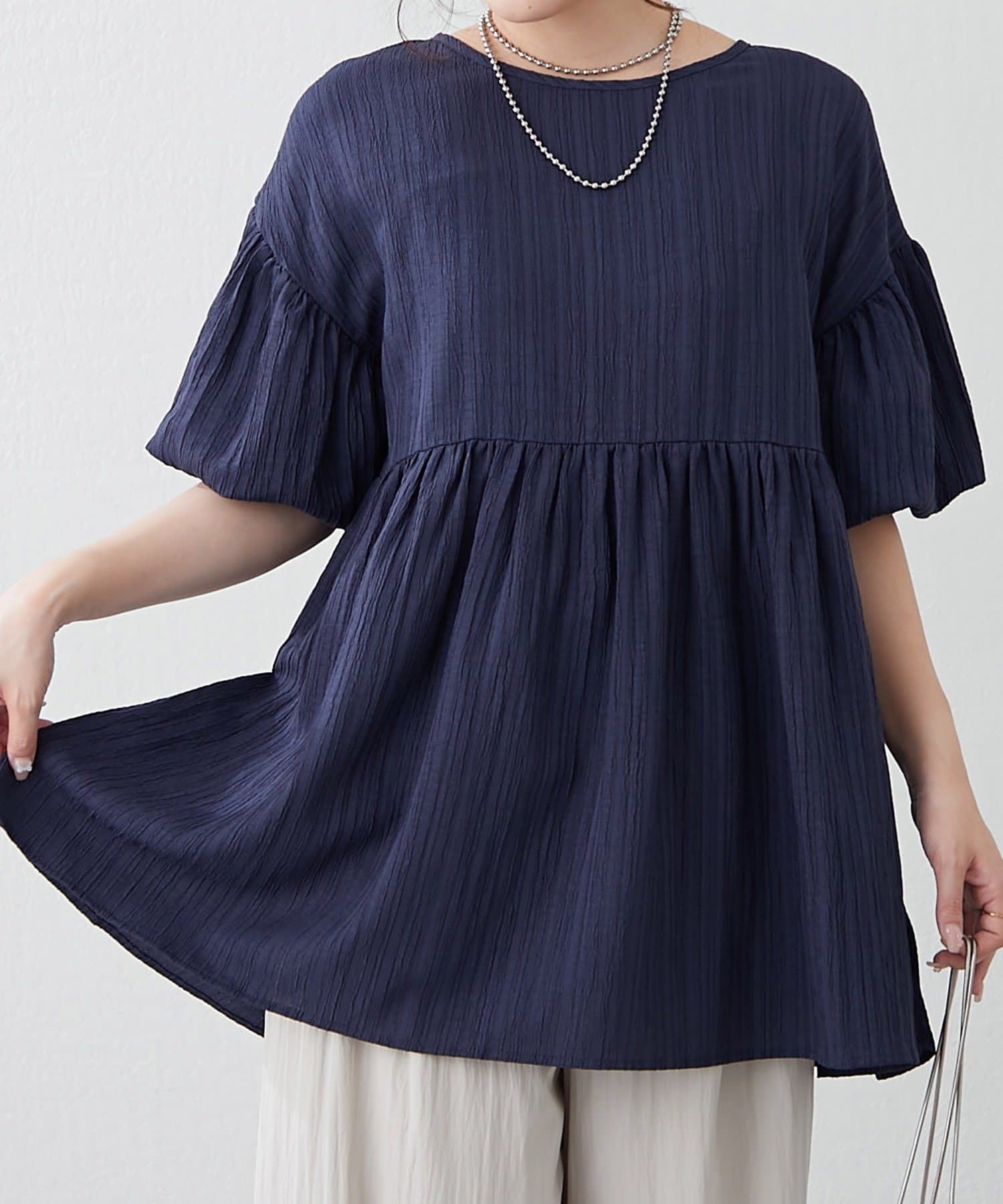 ・見た目も涼し気な楊柳素材のチュニックブラウス