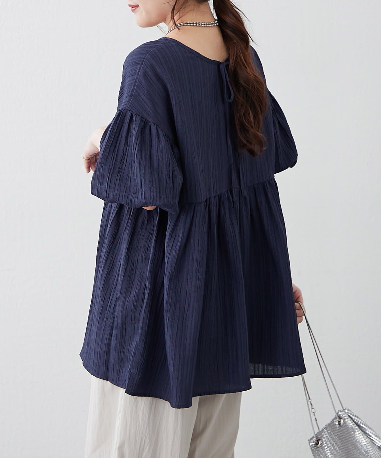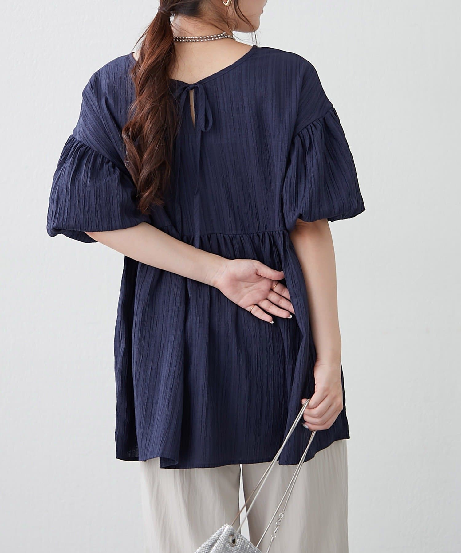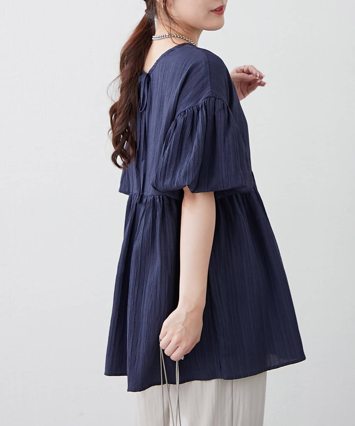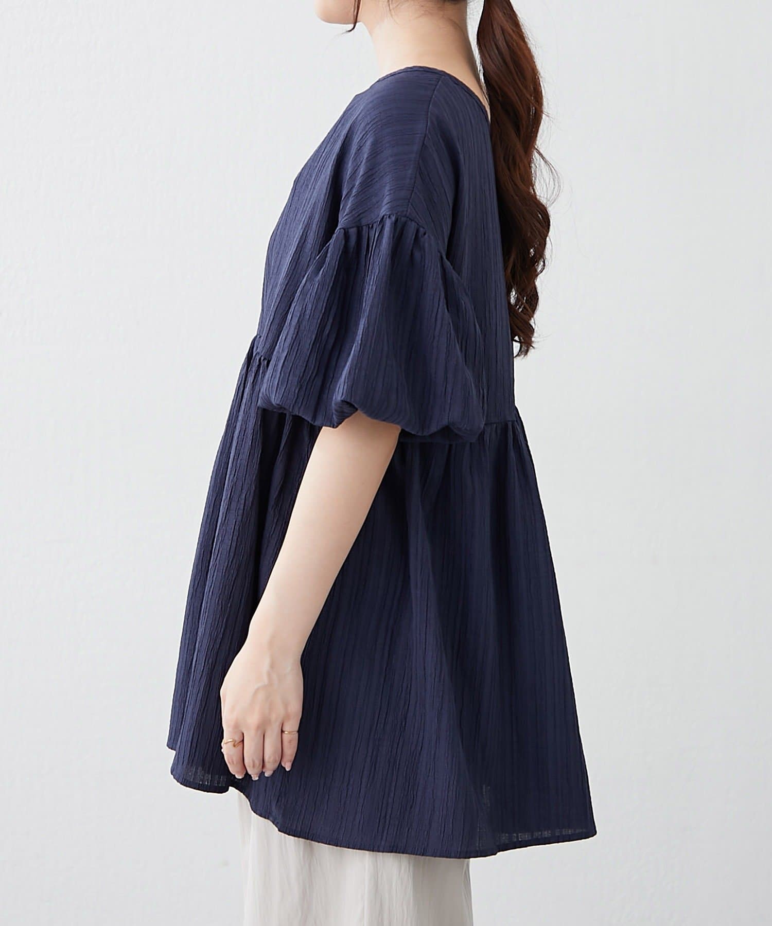・見た目も涼し気な楊柳素材のチュニックブラウス