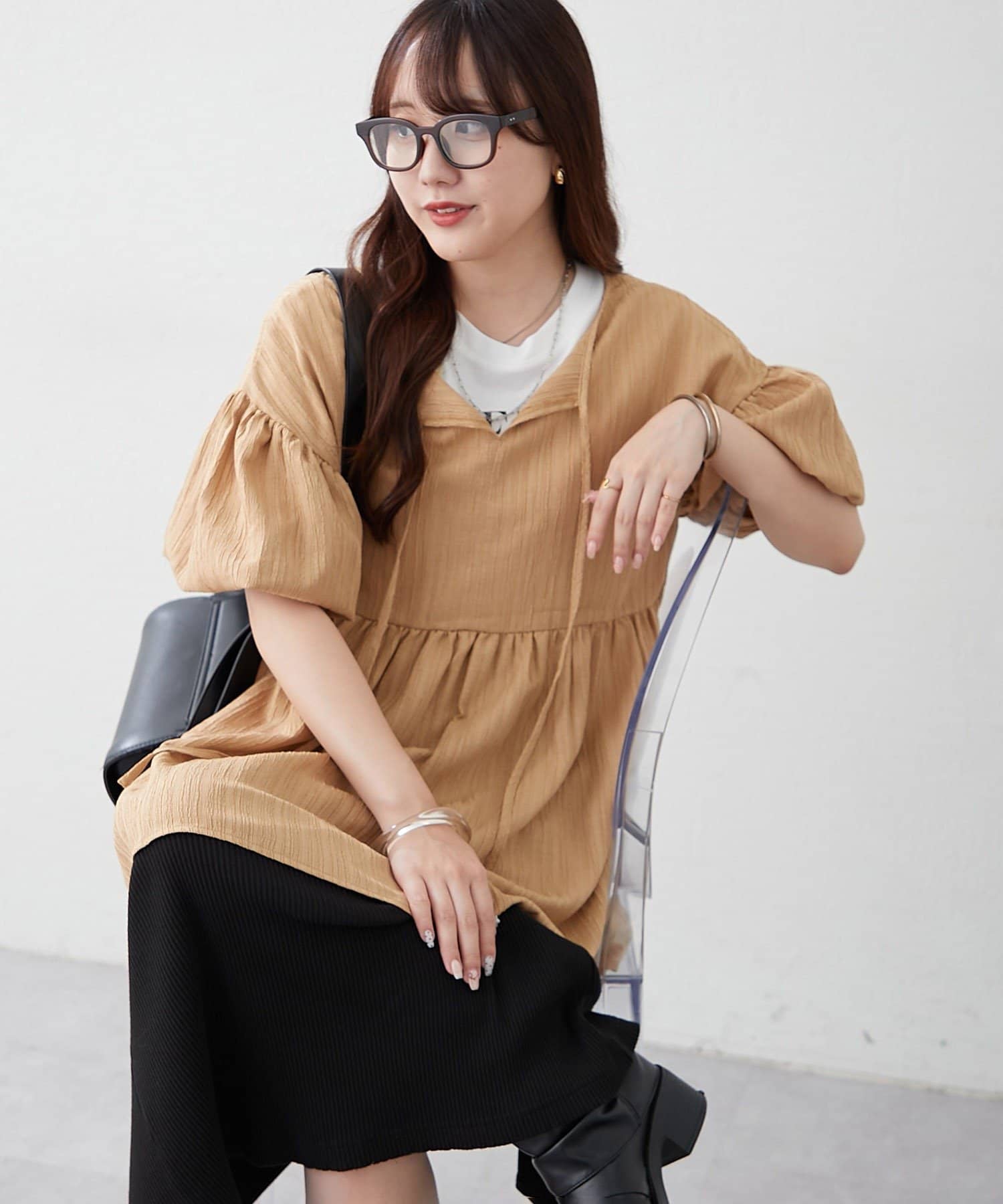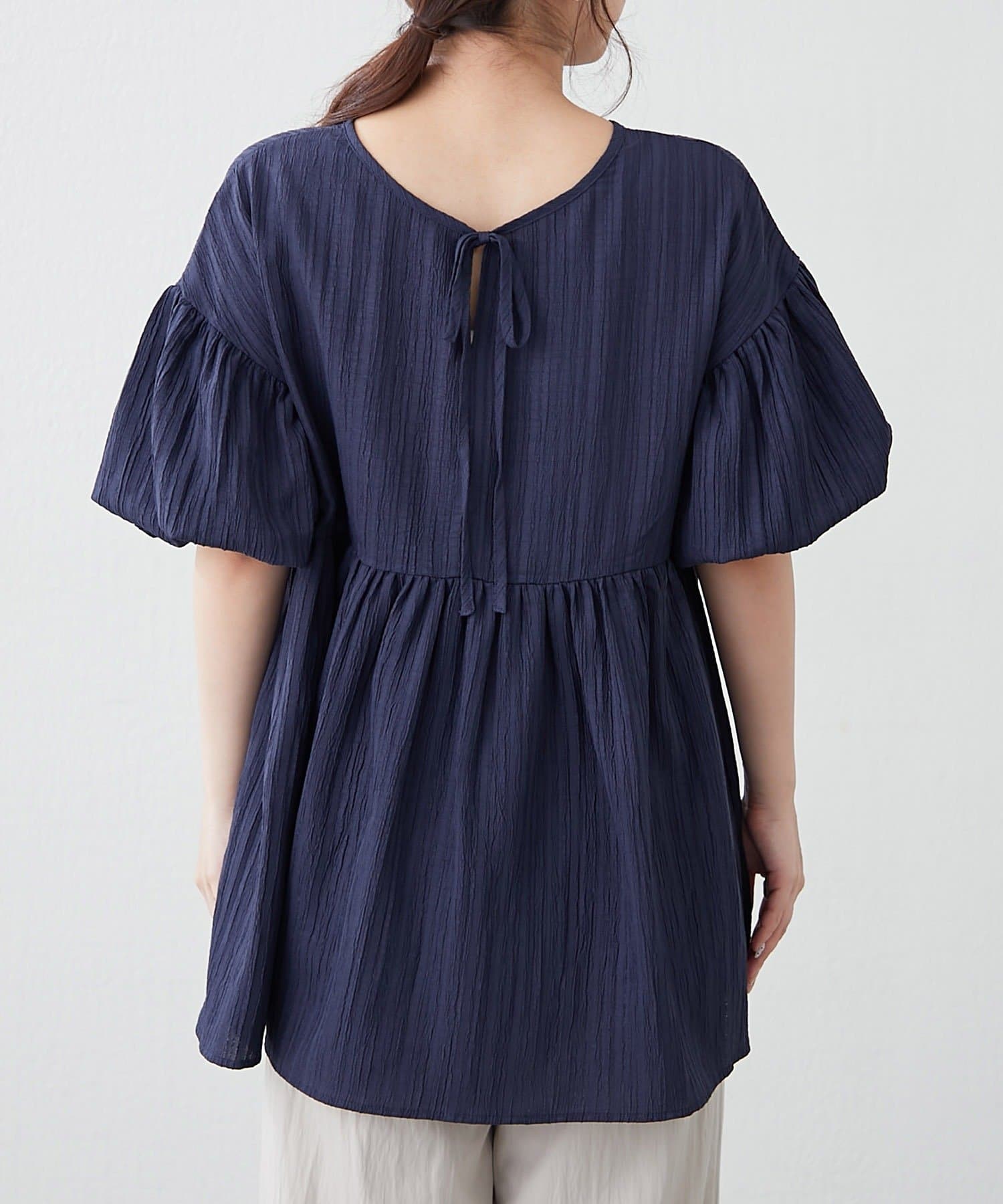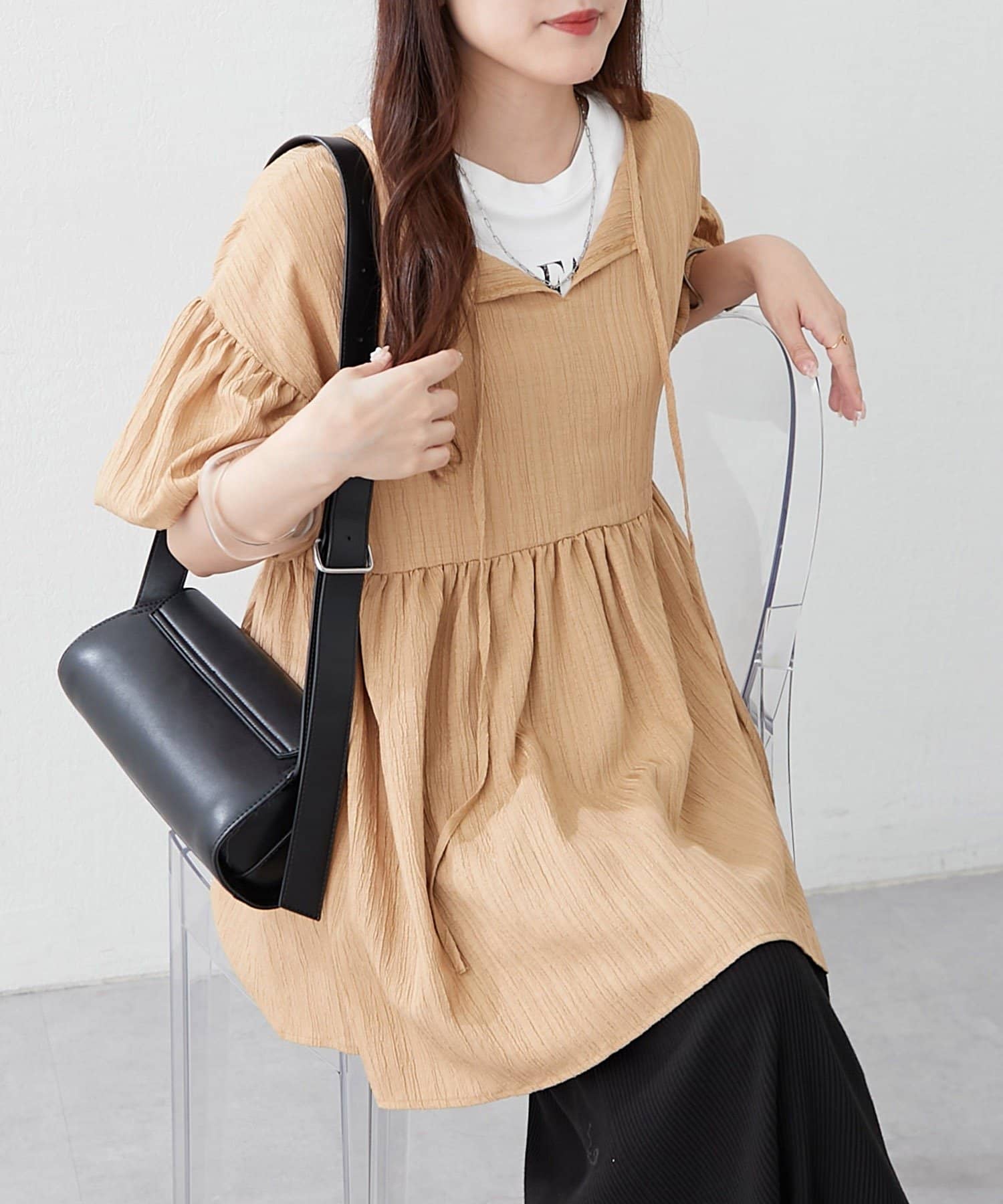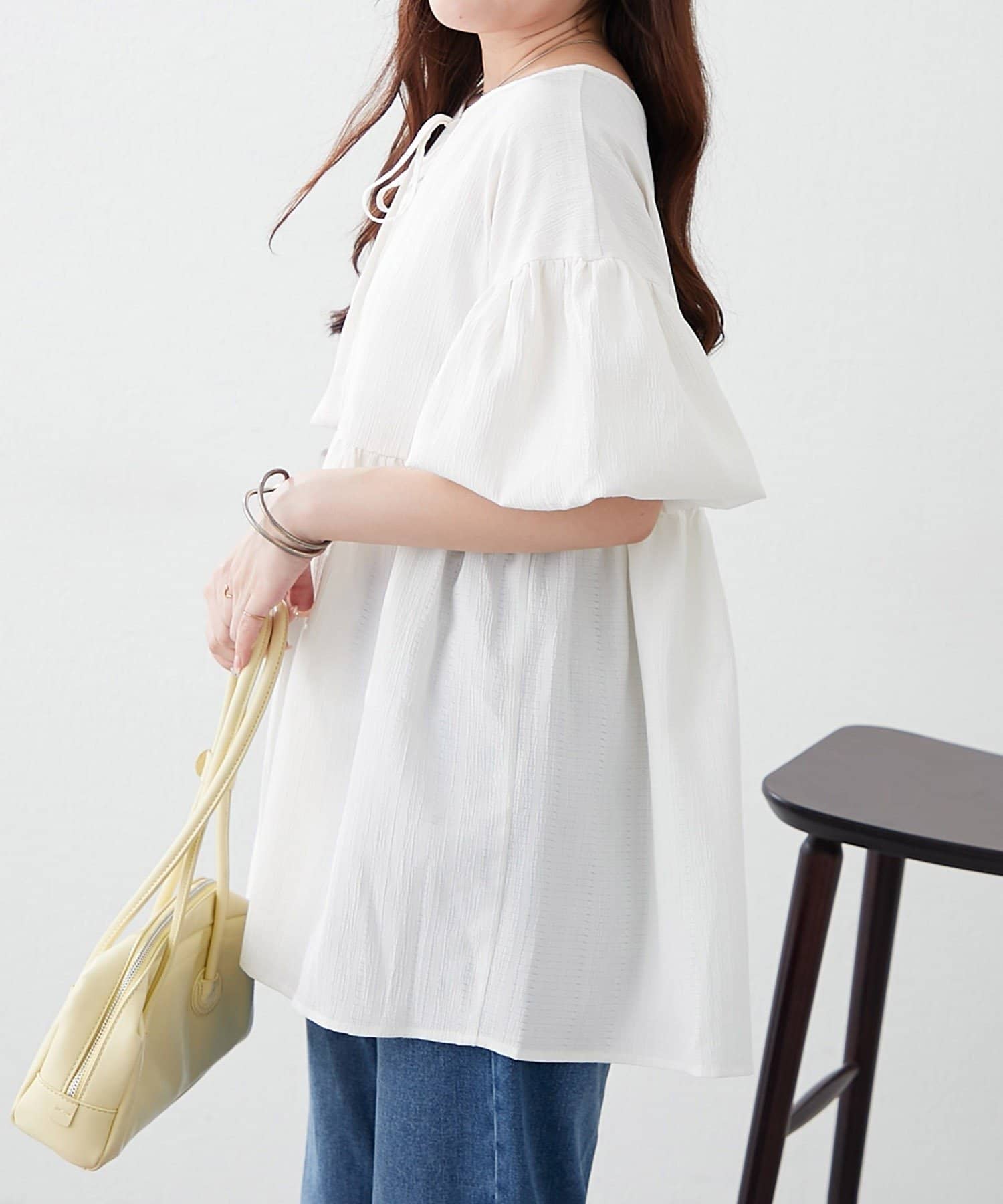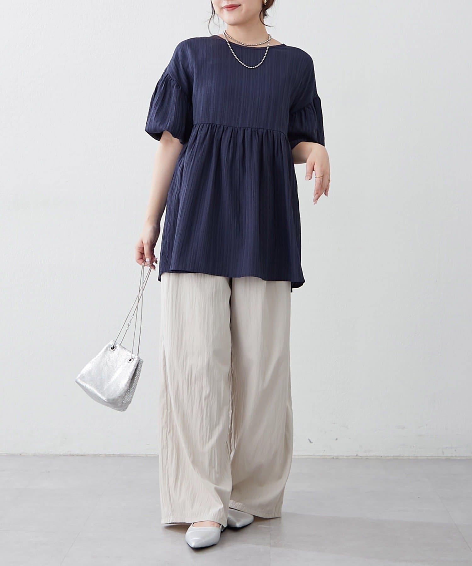 ・見た目も涼し気な楊柳素材のチュニックブラウス