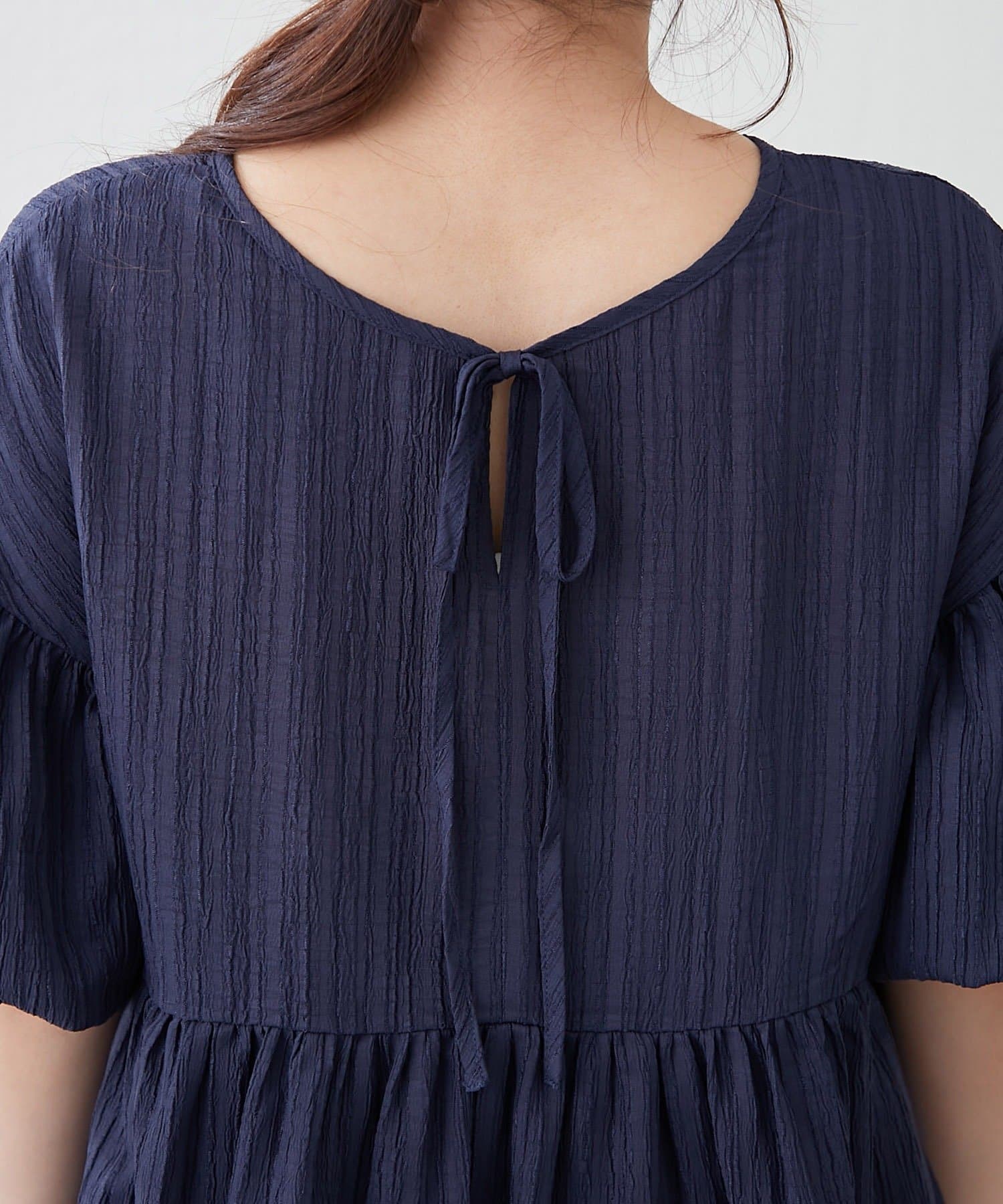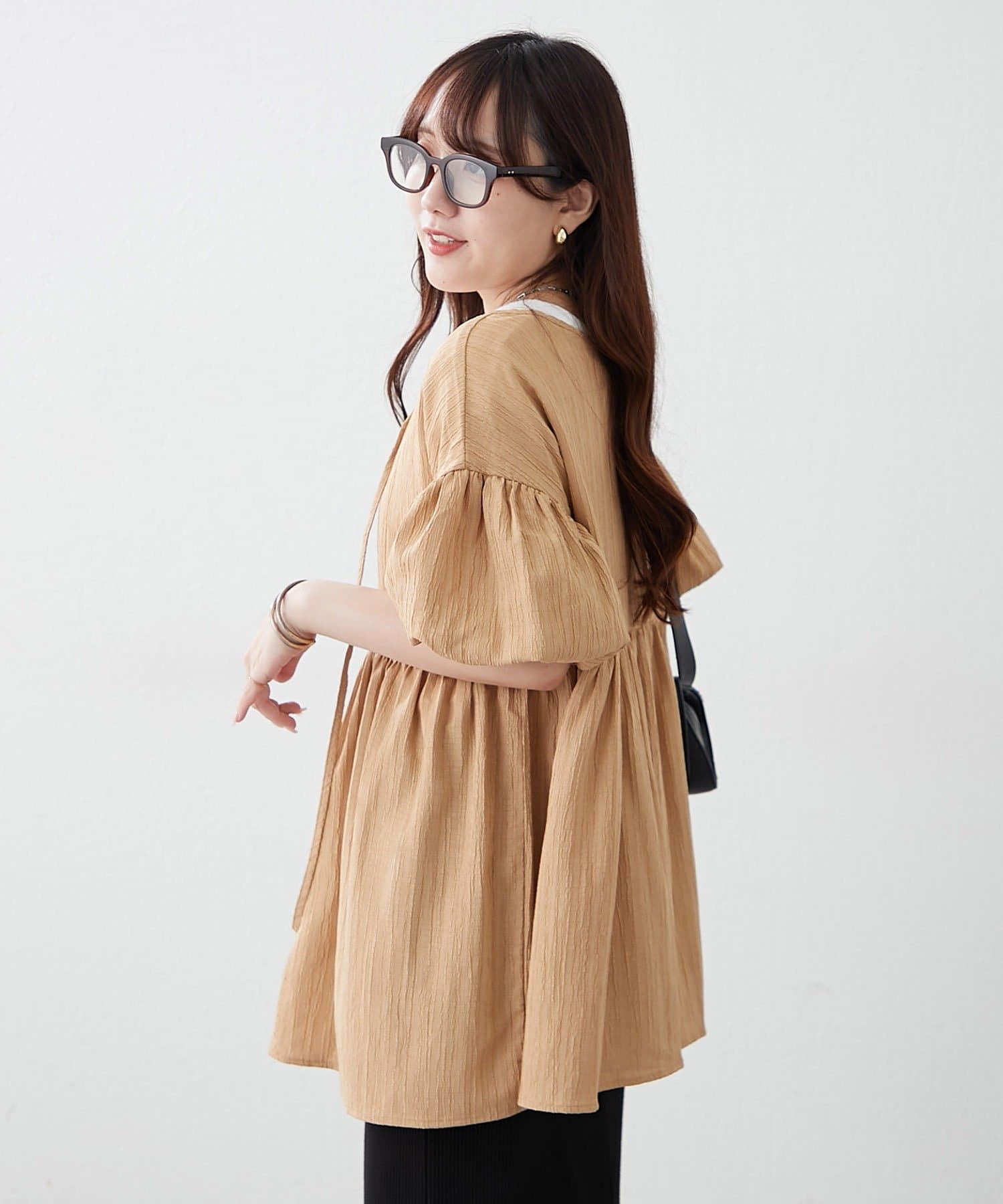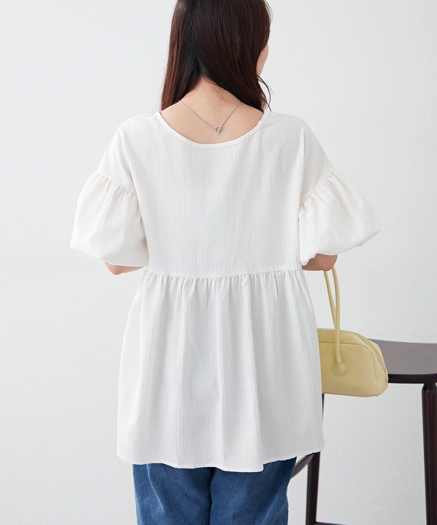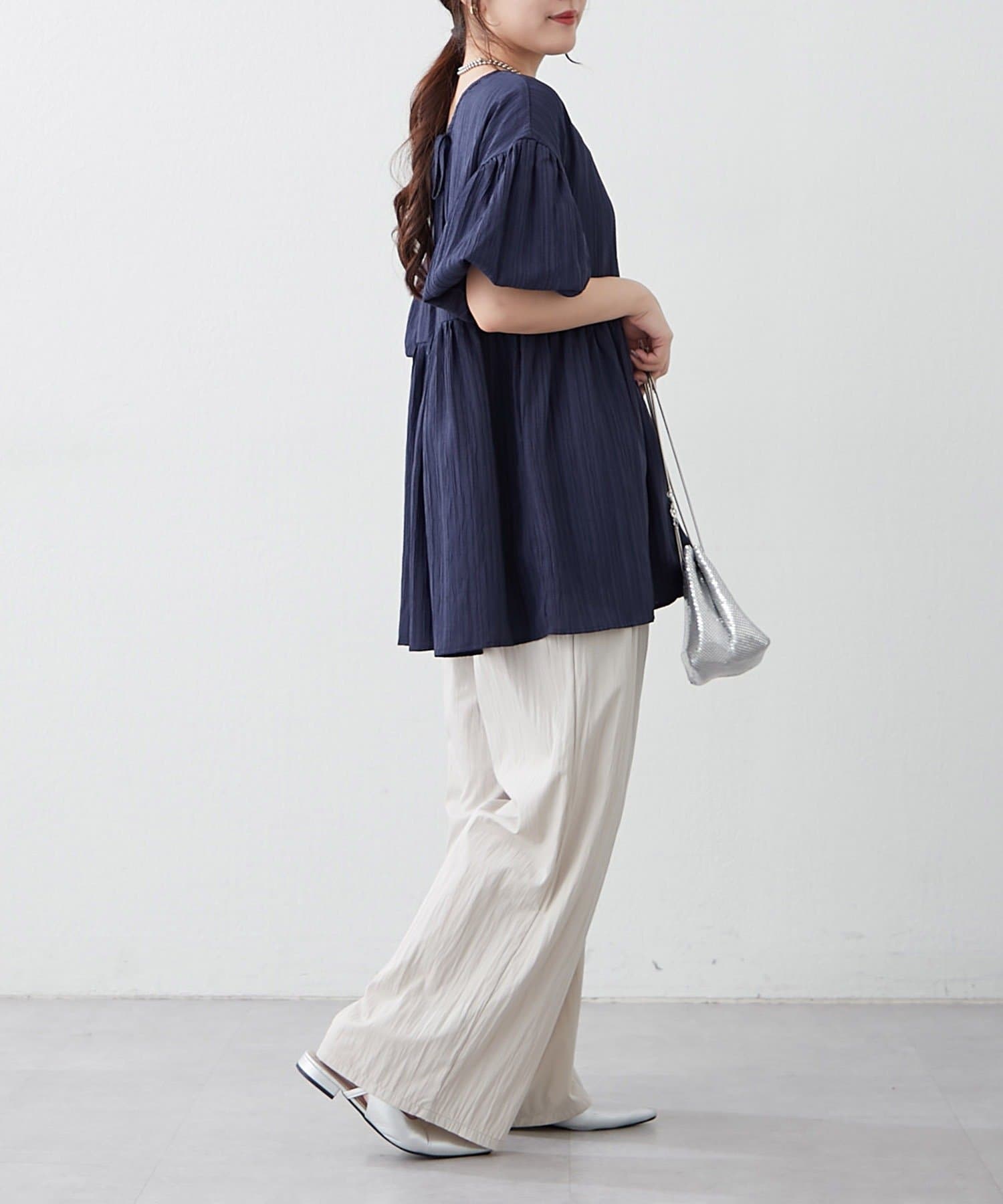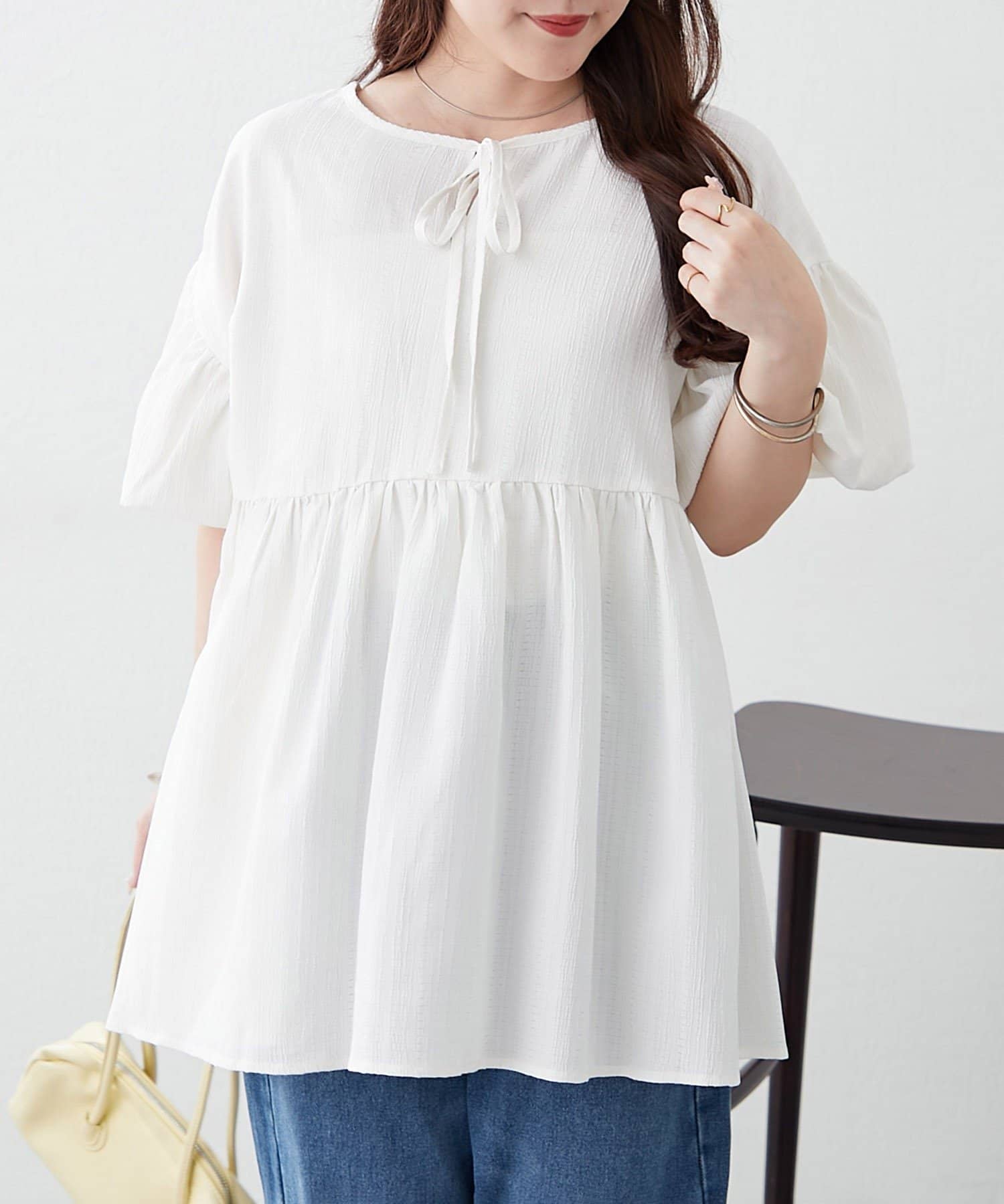 ・見た目も涼し気な楊柳素材のチュニックブラウス