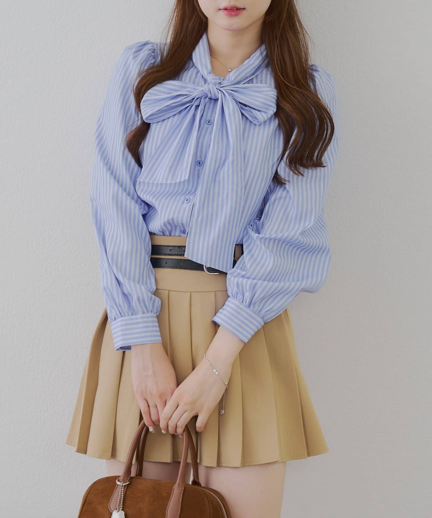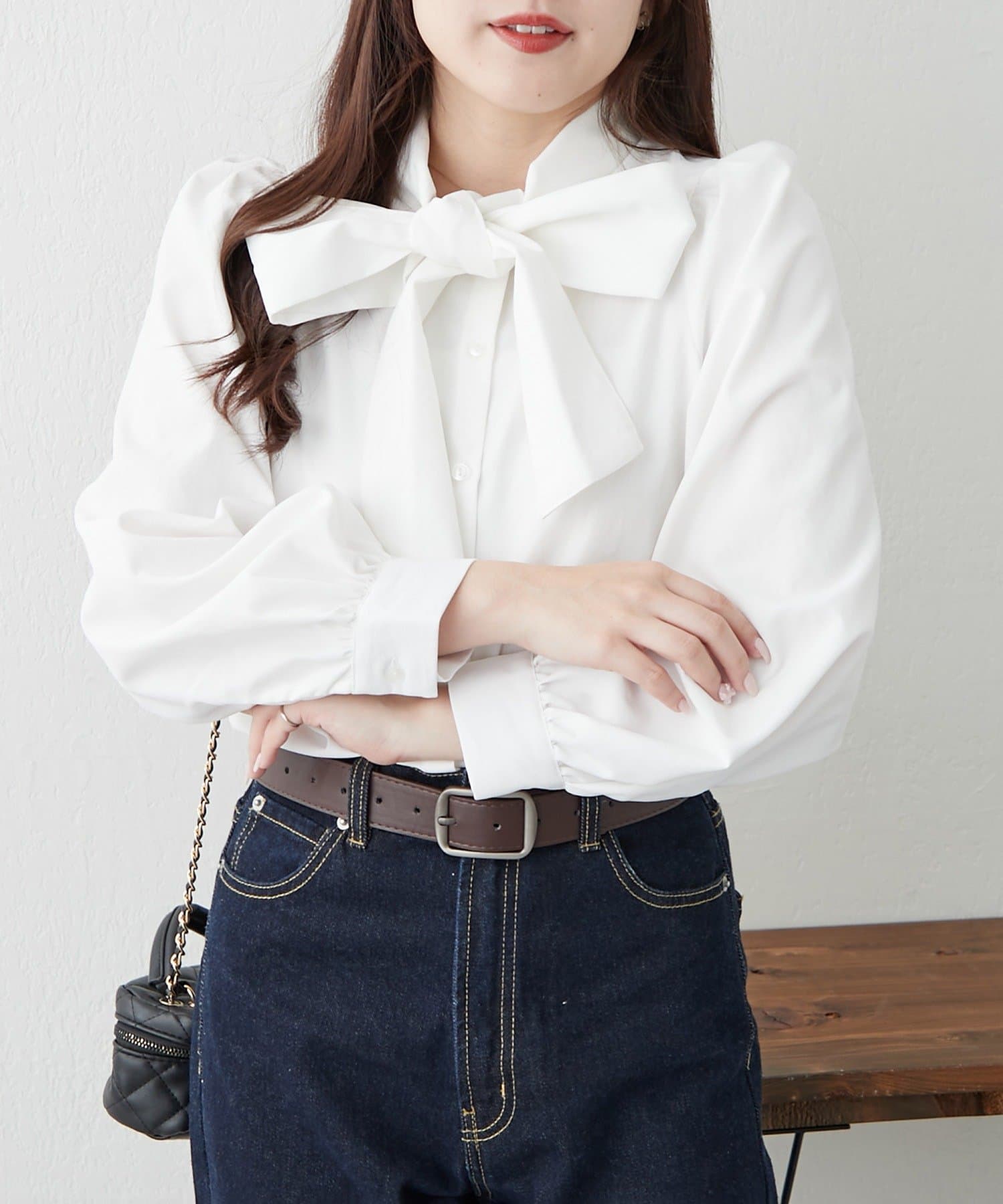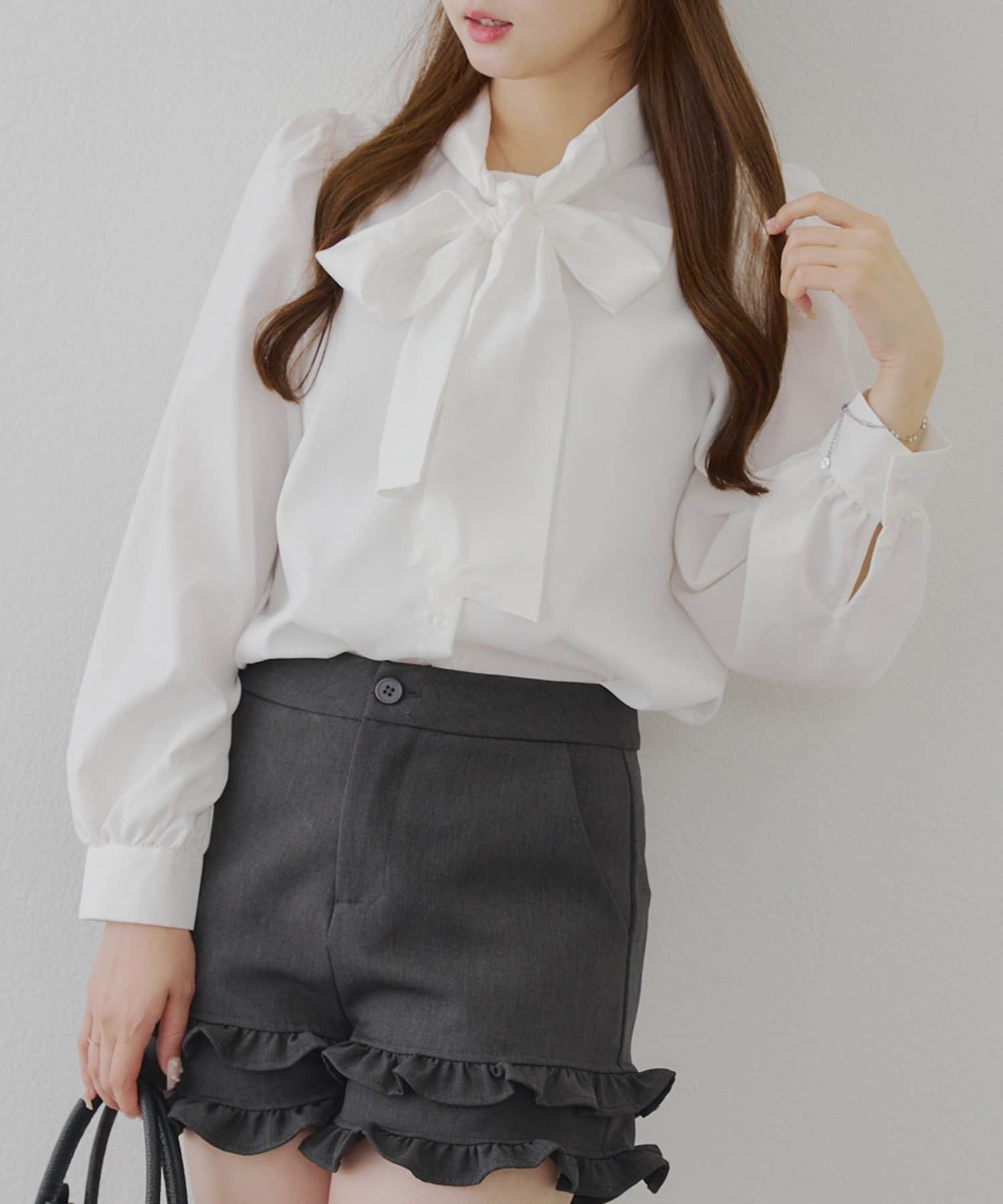・ガーリーコーデに欠かせないボウタイ付きブラウス