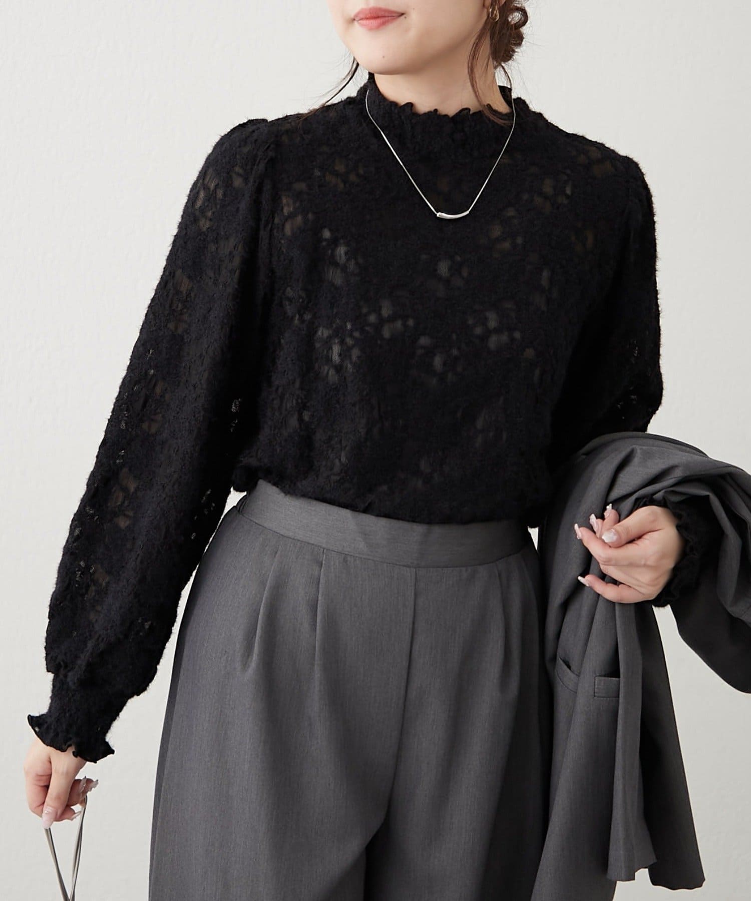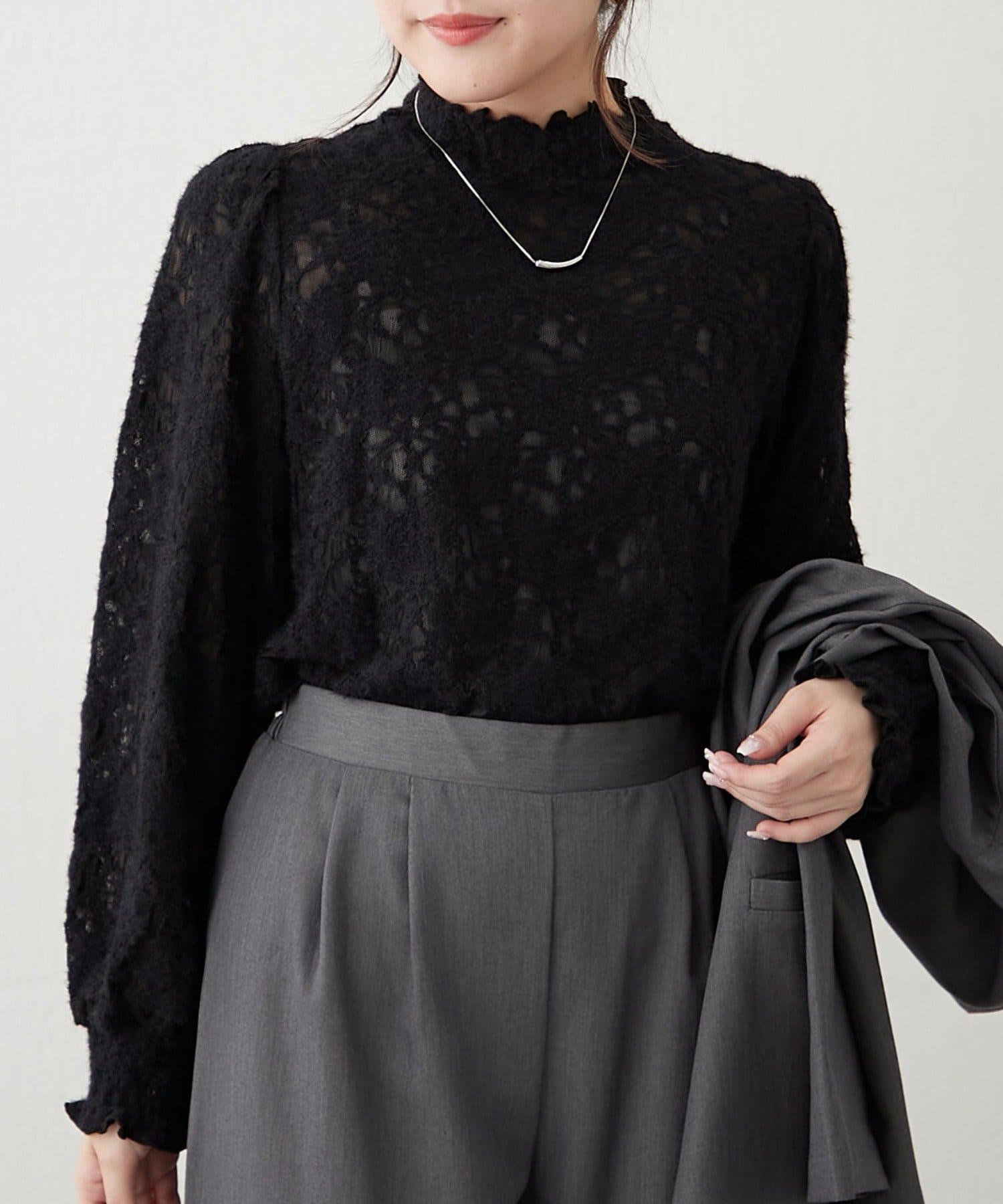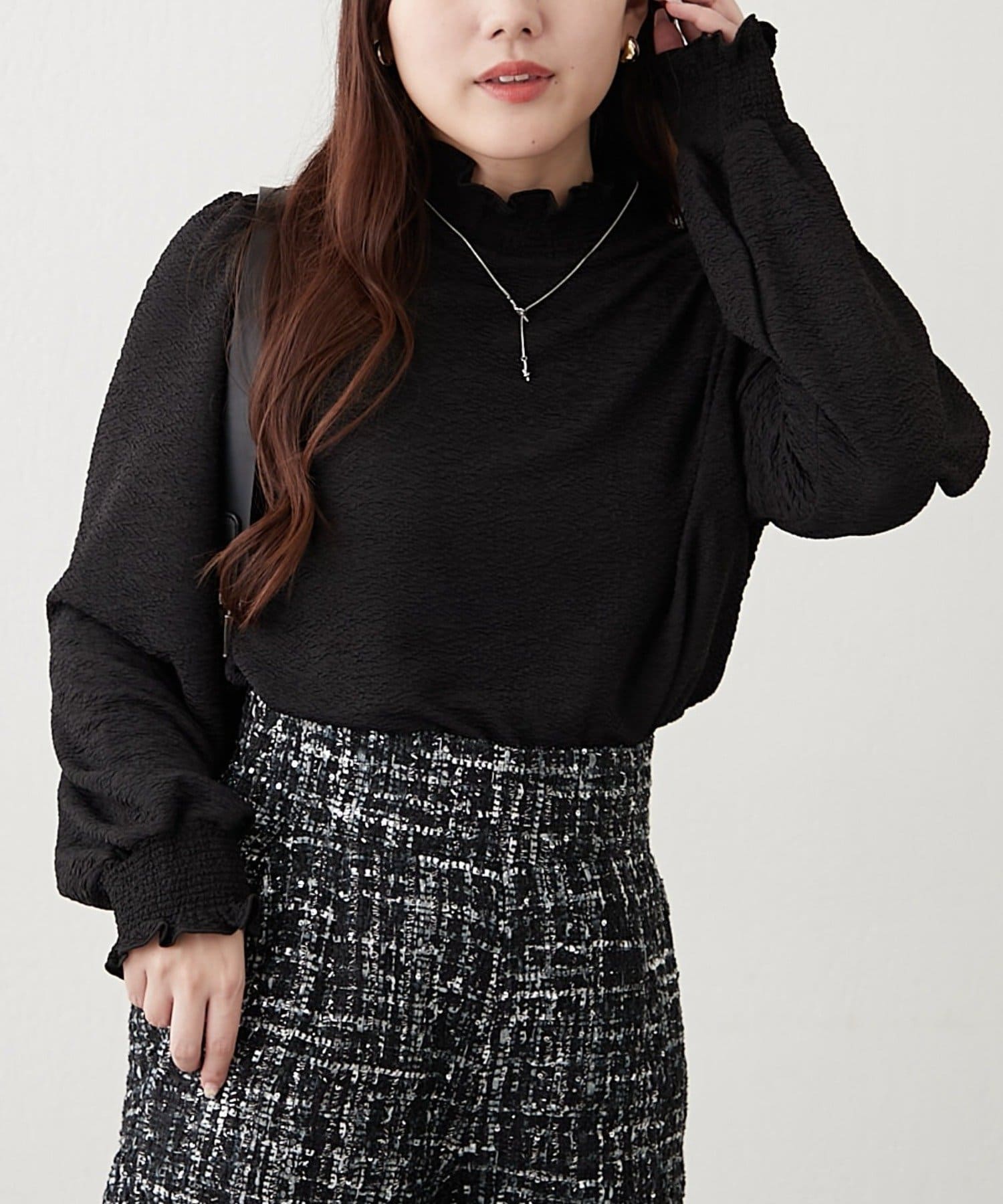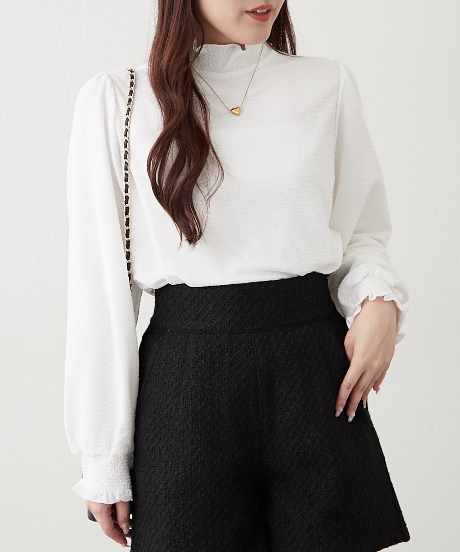 レイヤードにおすすめ!プチハイシャーリングブラウス