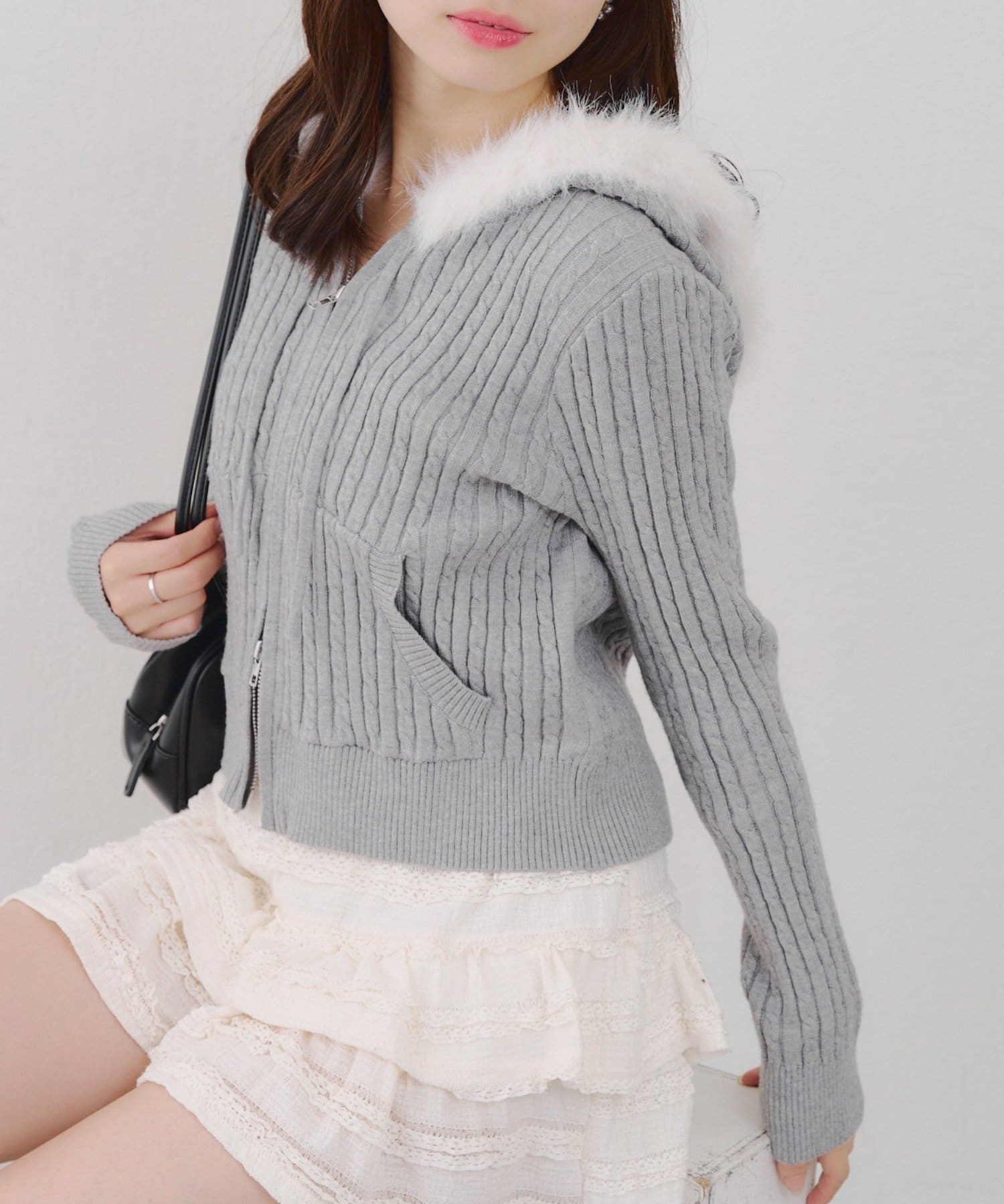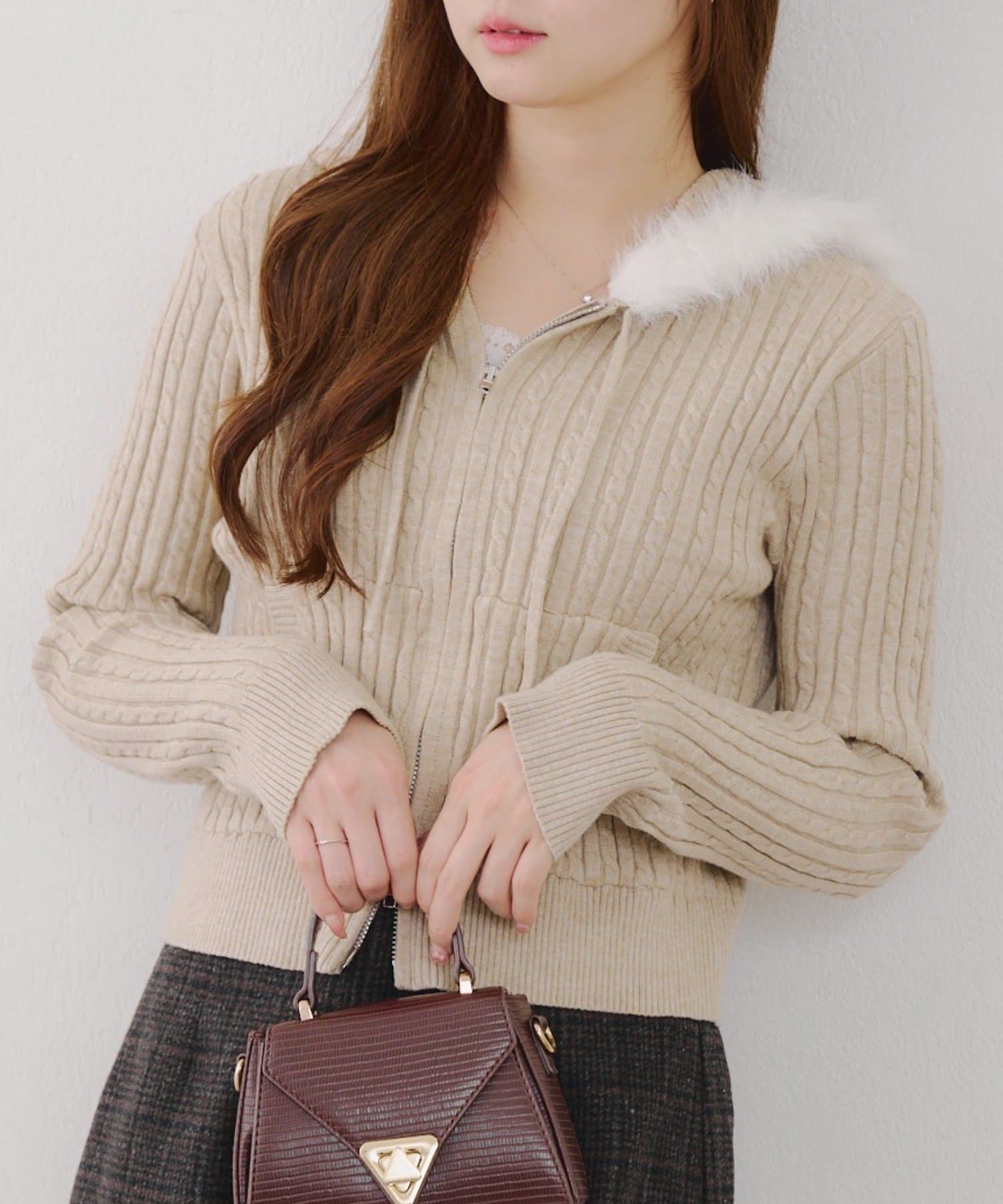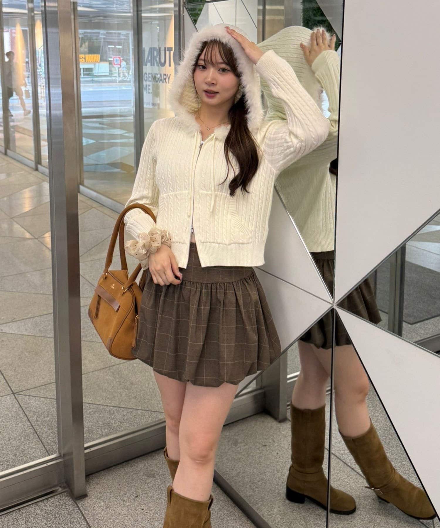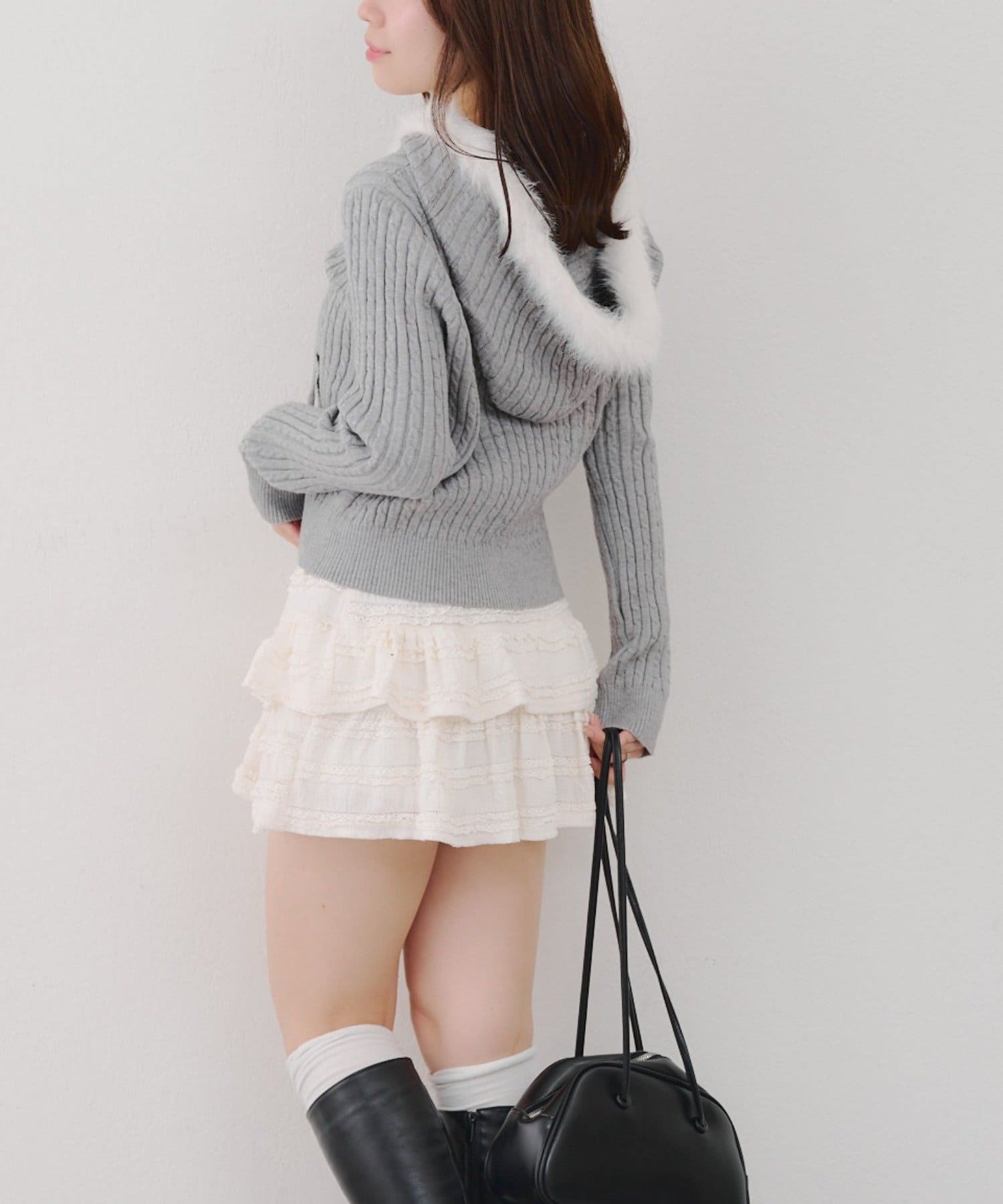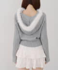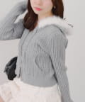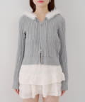 ・ファー付きのフードがトレンドのニットパーカー。