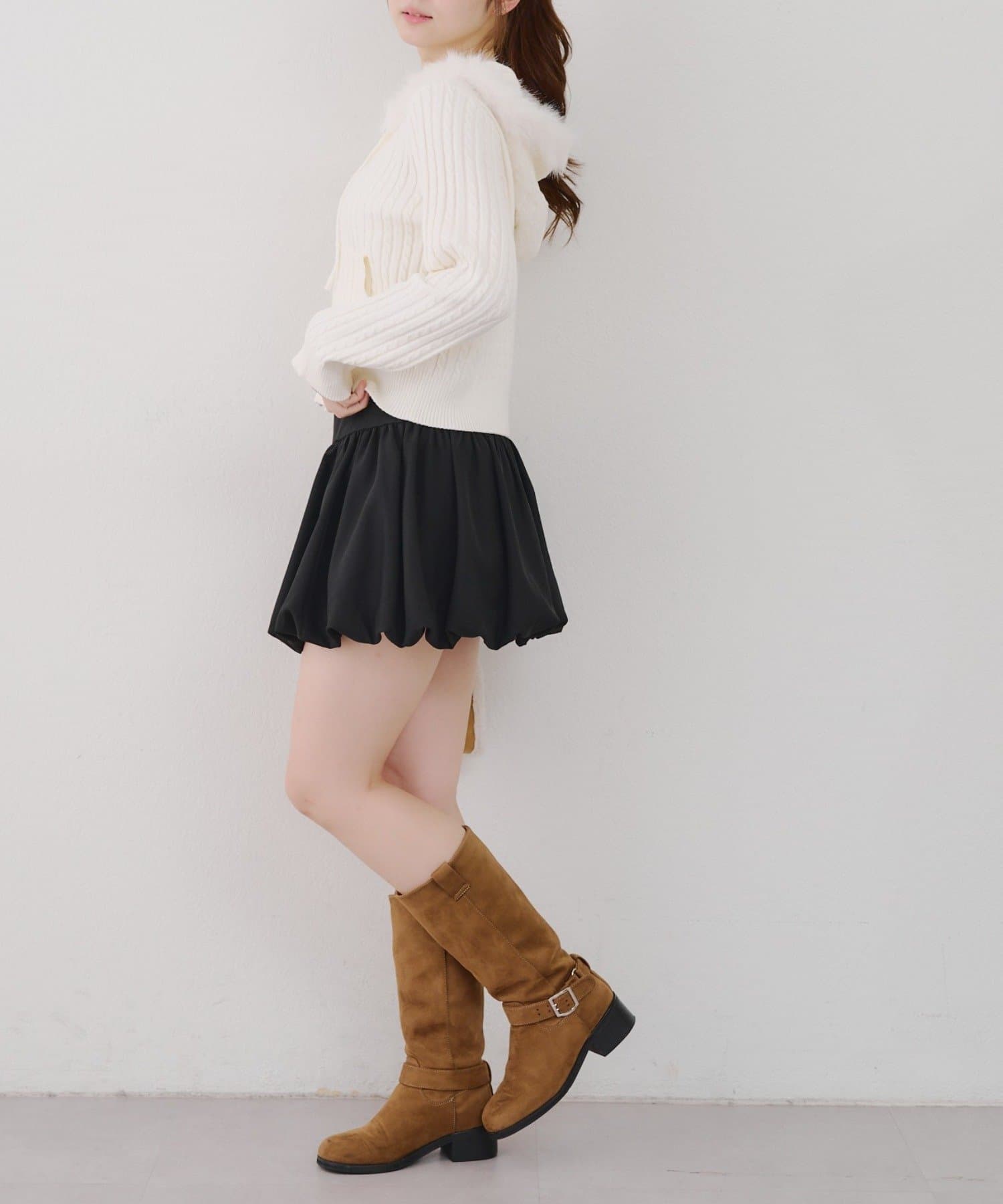 ・ミニスカートやショートパンツにブーツ合わせが韓国コーデでおすすめです。