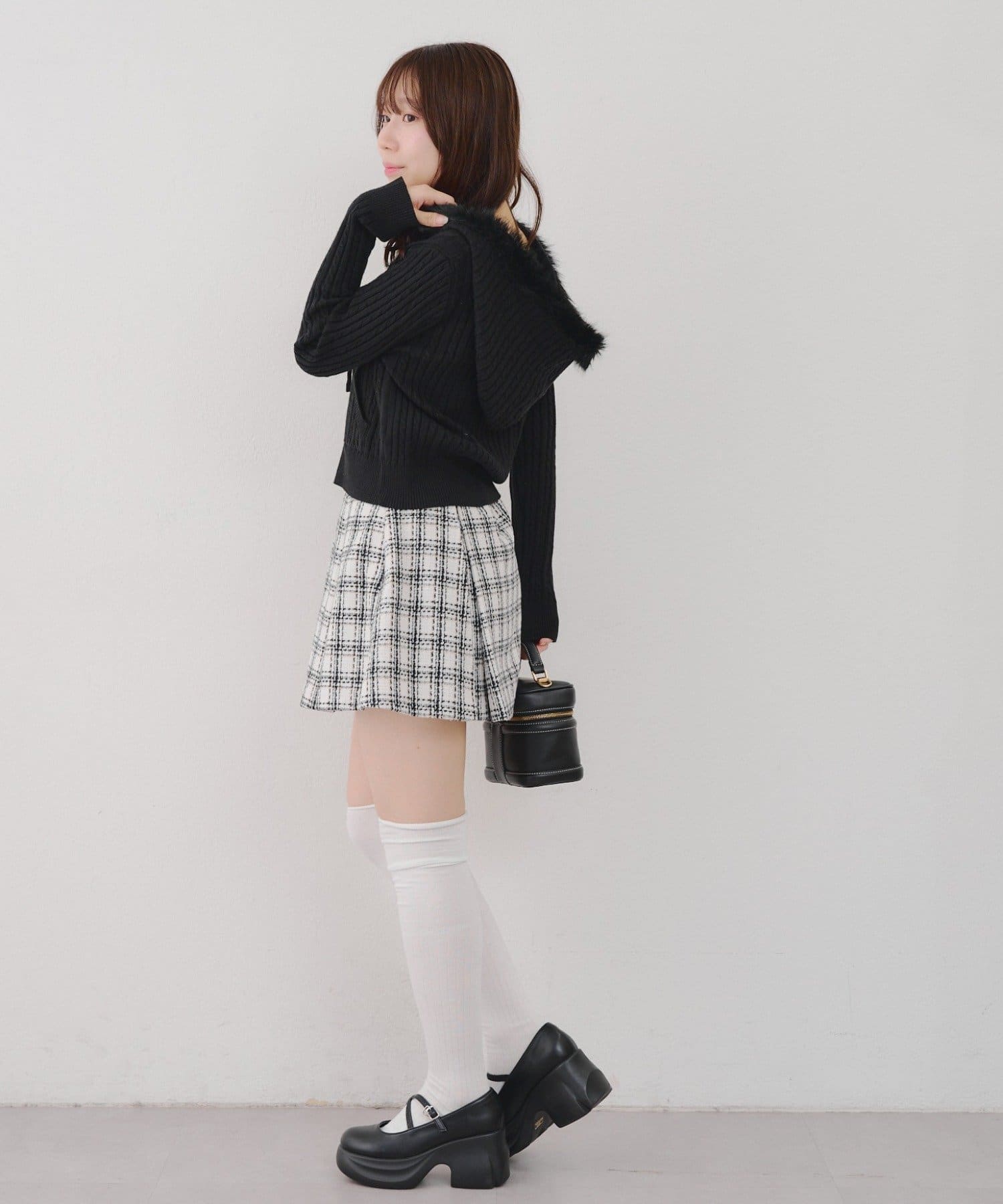 ・顔周りを女性らしく華やかにみせてくれる秋冬モードにぴったりの1枚。