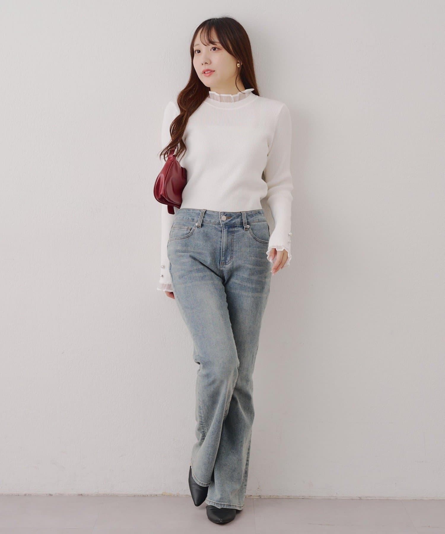 ・デニムと合わせてカジュアルダウンした大人可愛いスタイルに