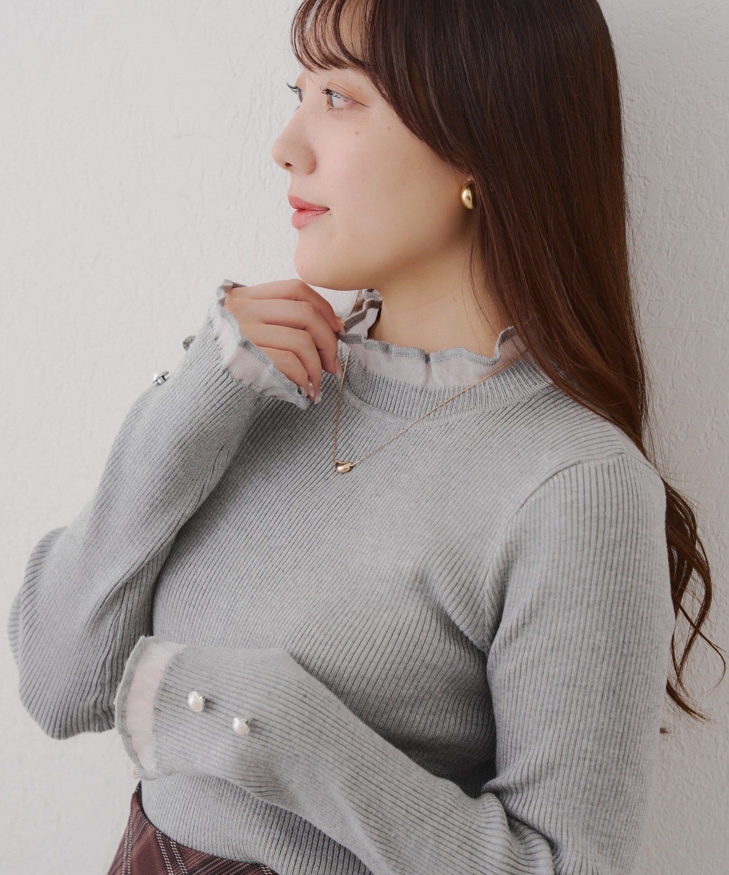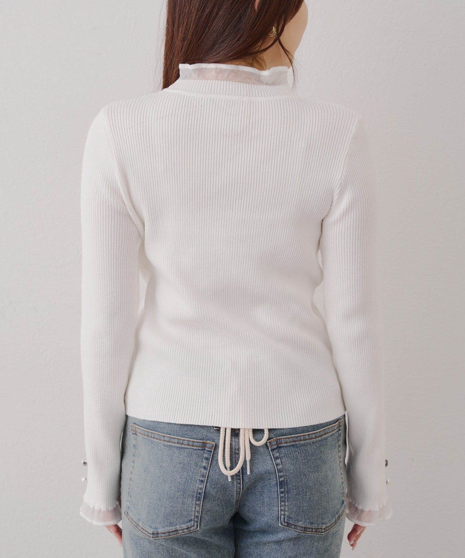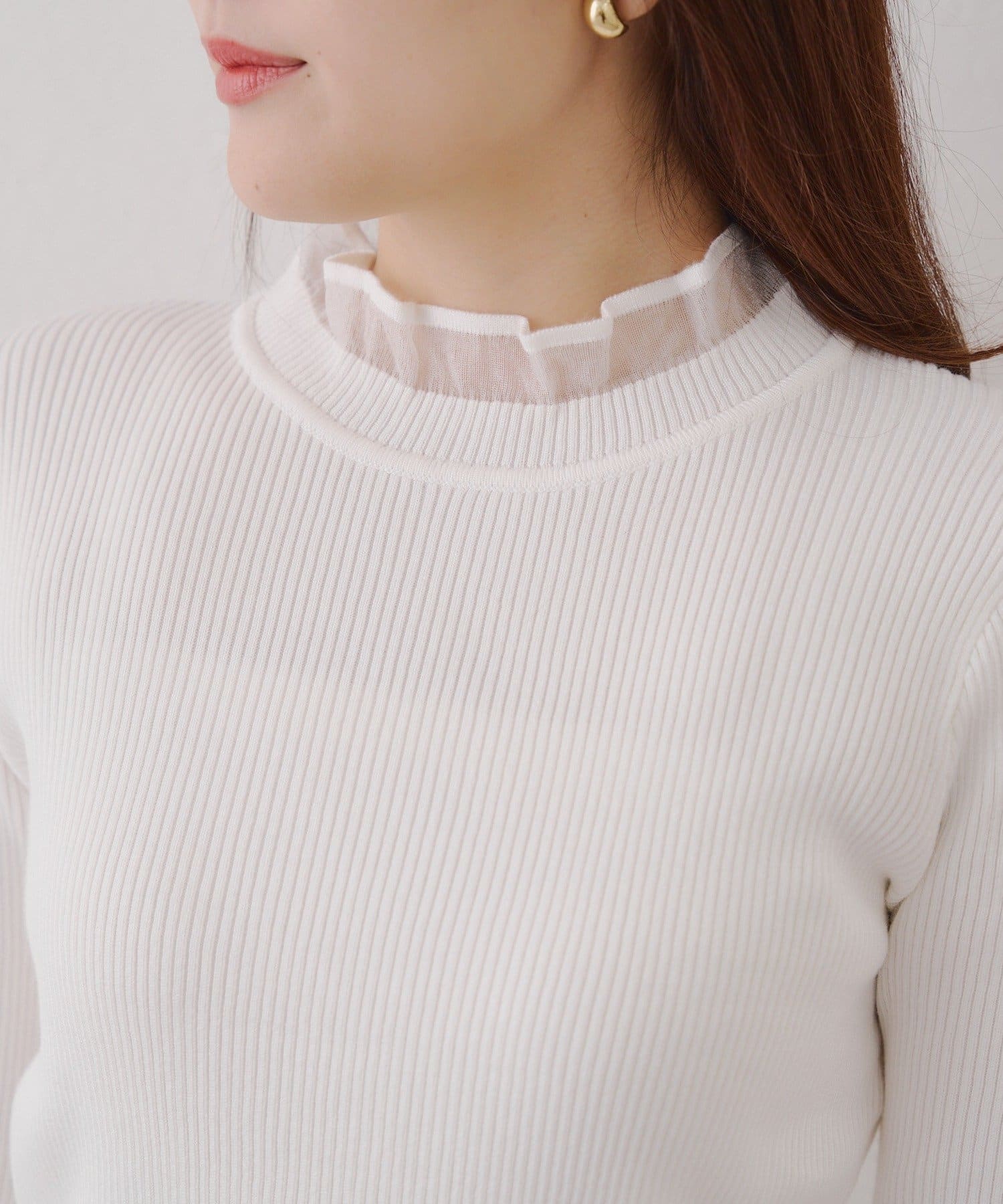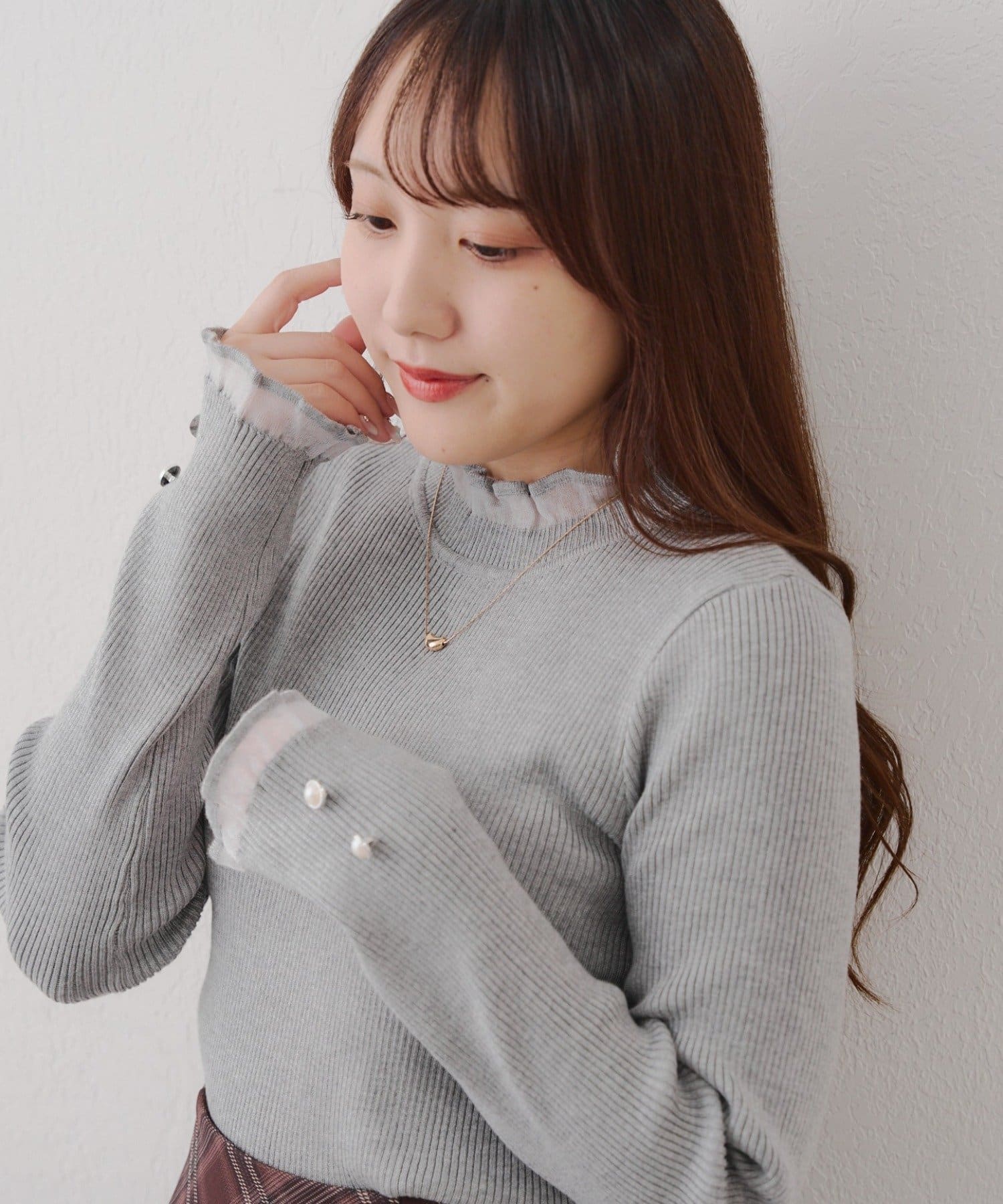 ・首元と袖口をオーガン生地にしたことでほどよい透け感があり上品見え
