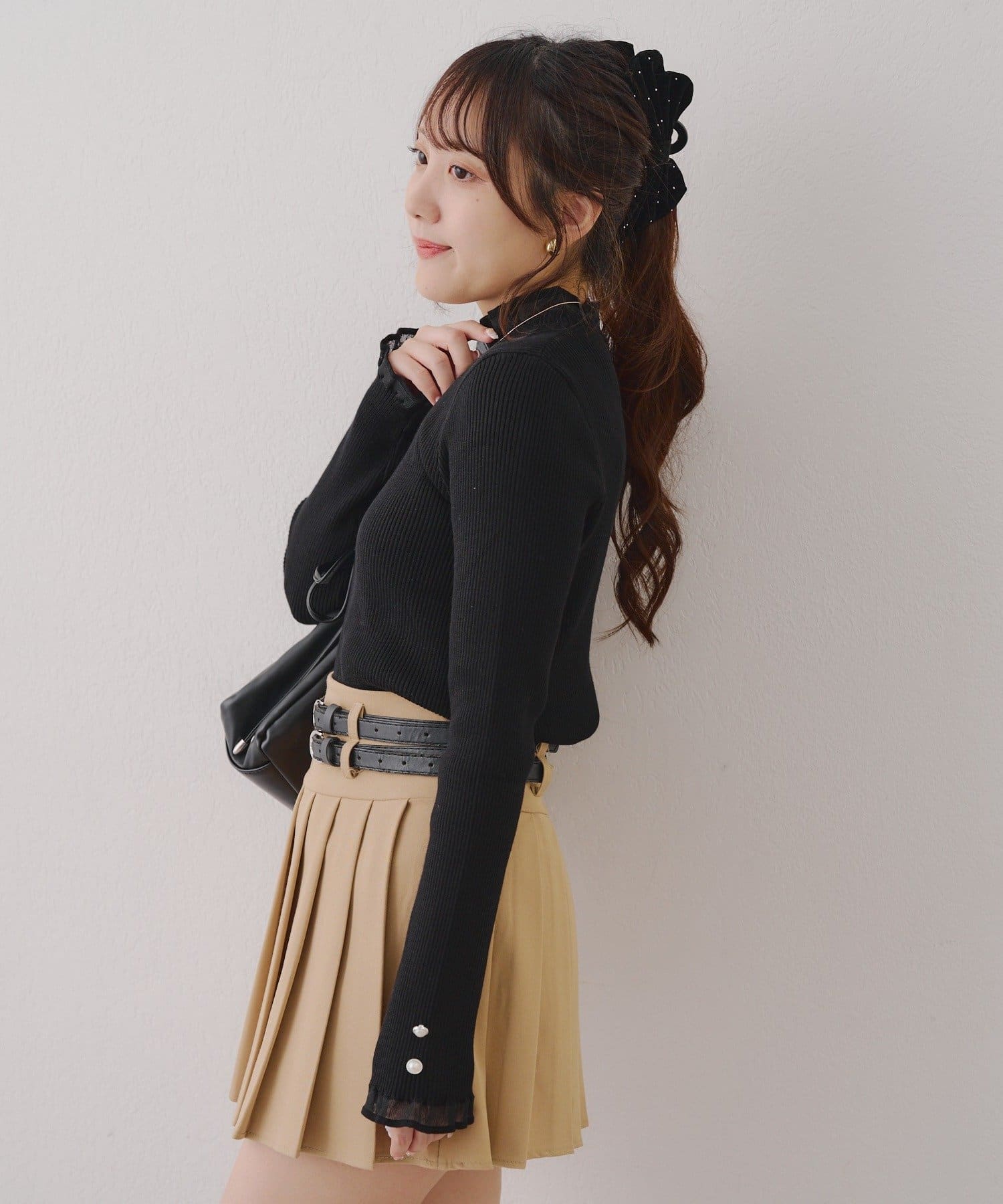 ・フレアスカートと合わせてフェミニンなデートスタイルに