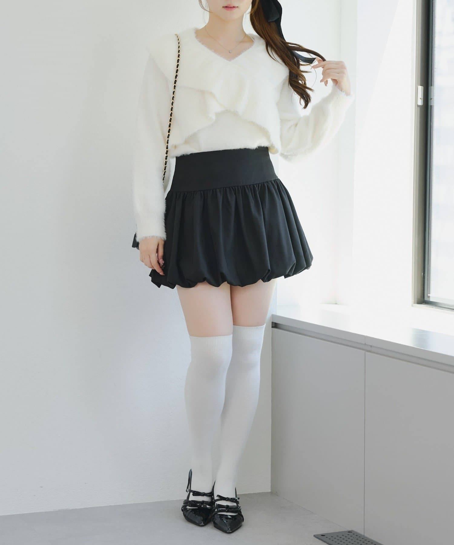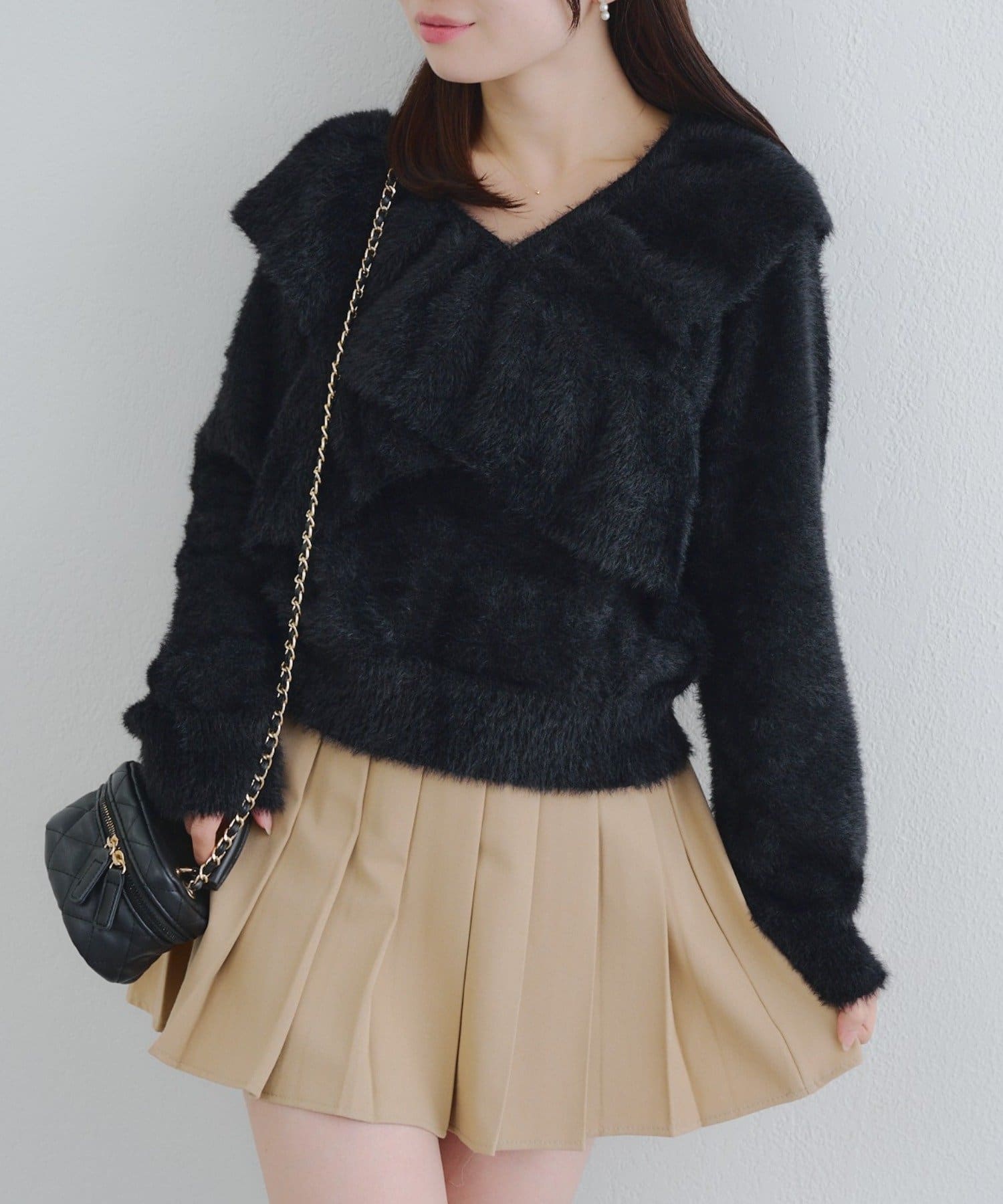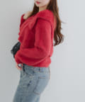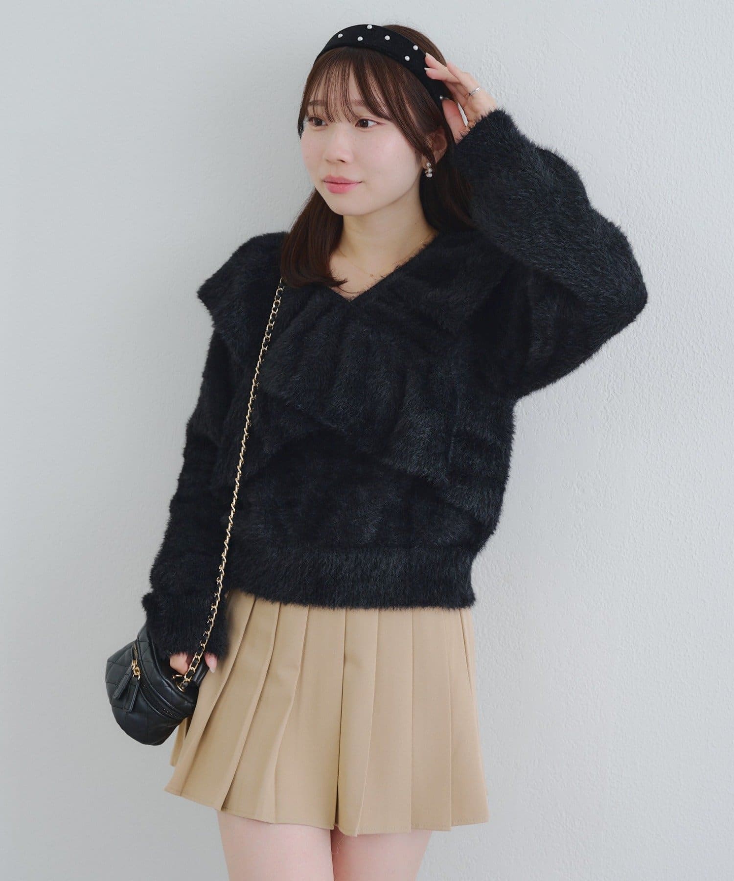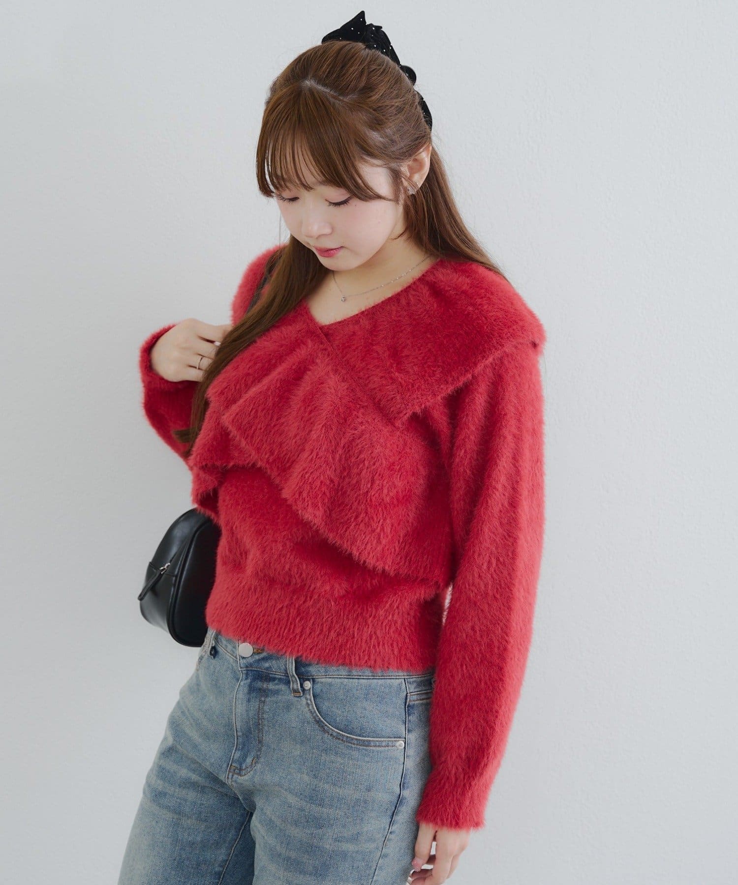 ・デコルテを美しく見せるVネックラインと、さりげないフリルデザインが、女性らしさを引き立てます