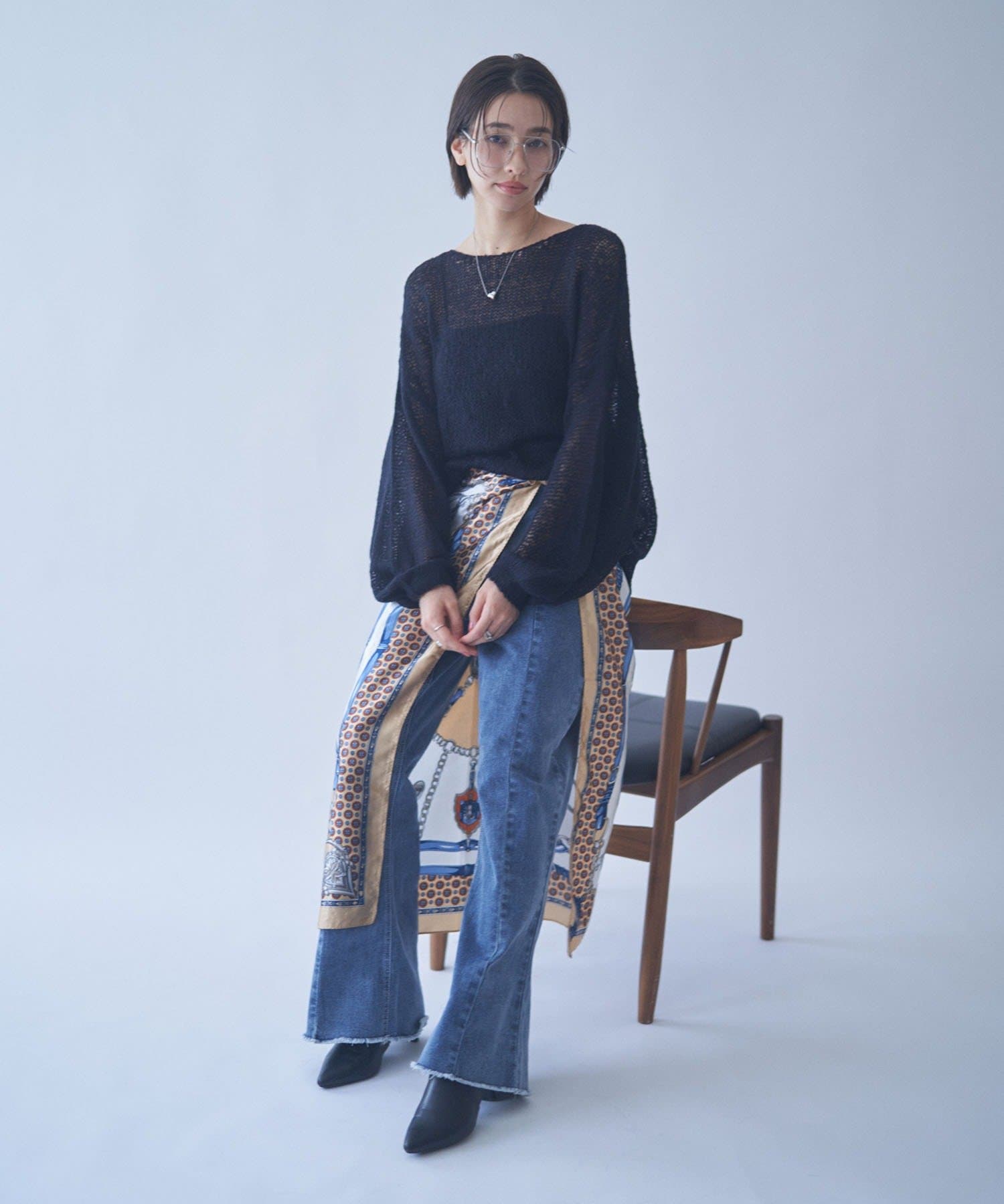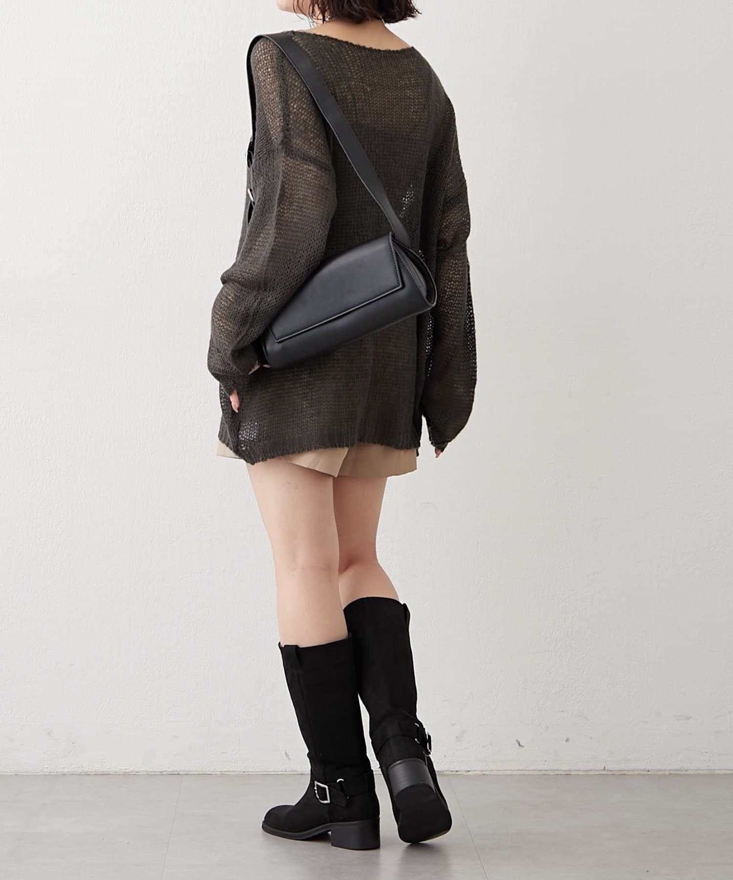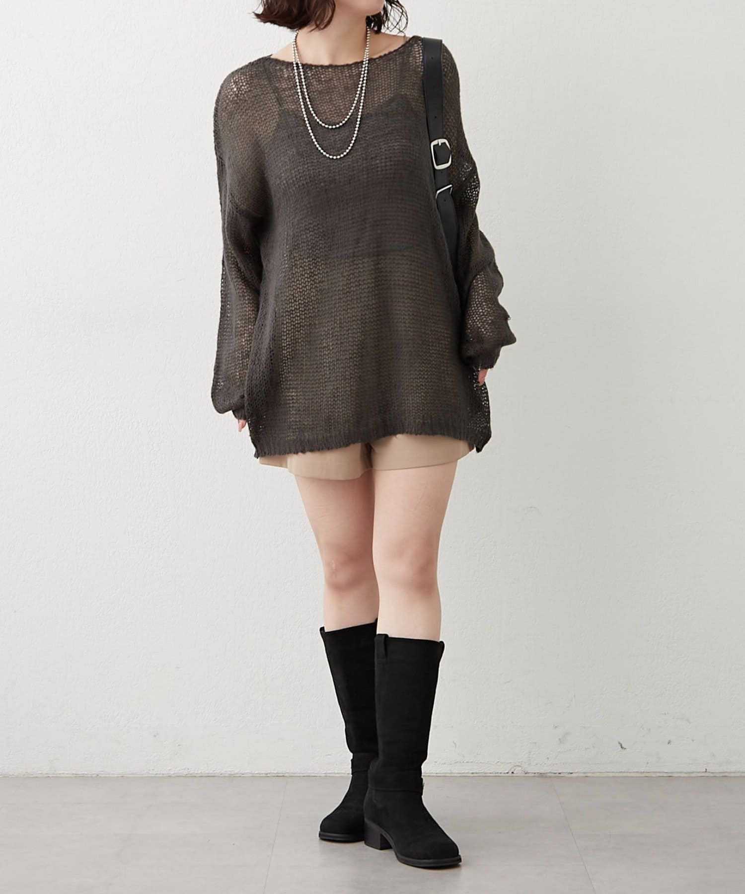 ボトムは鉄板のデニムで合わせたり、ミニボトムにロングブーツでミニワンピースっぽく着こなすのもオススメ。