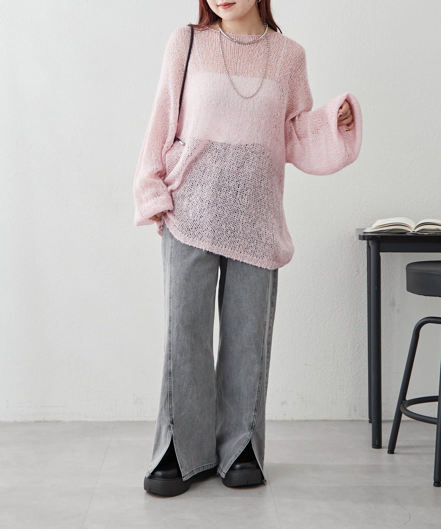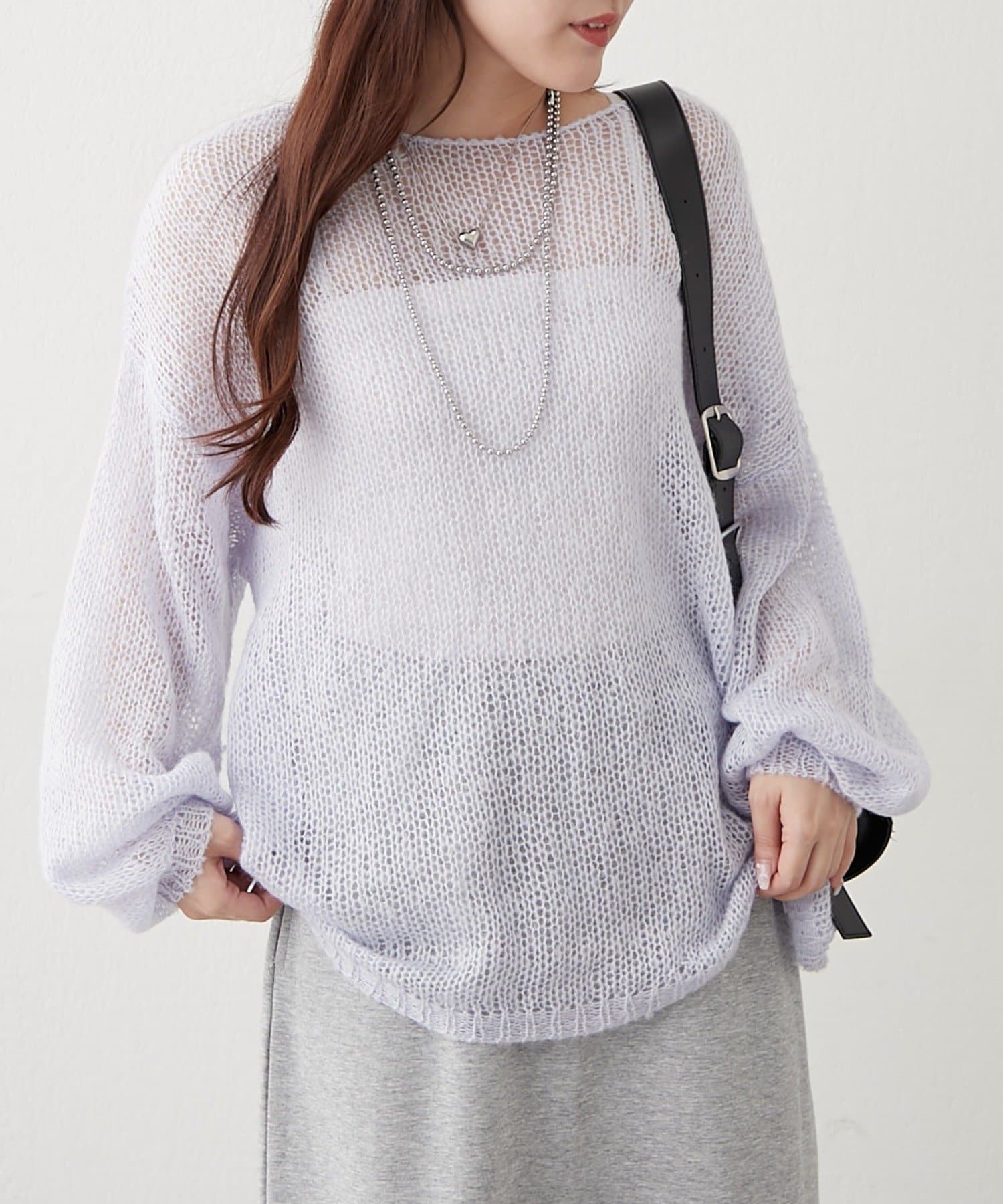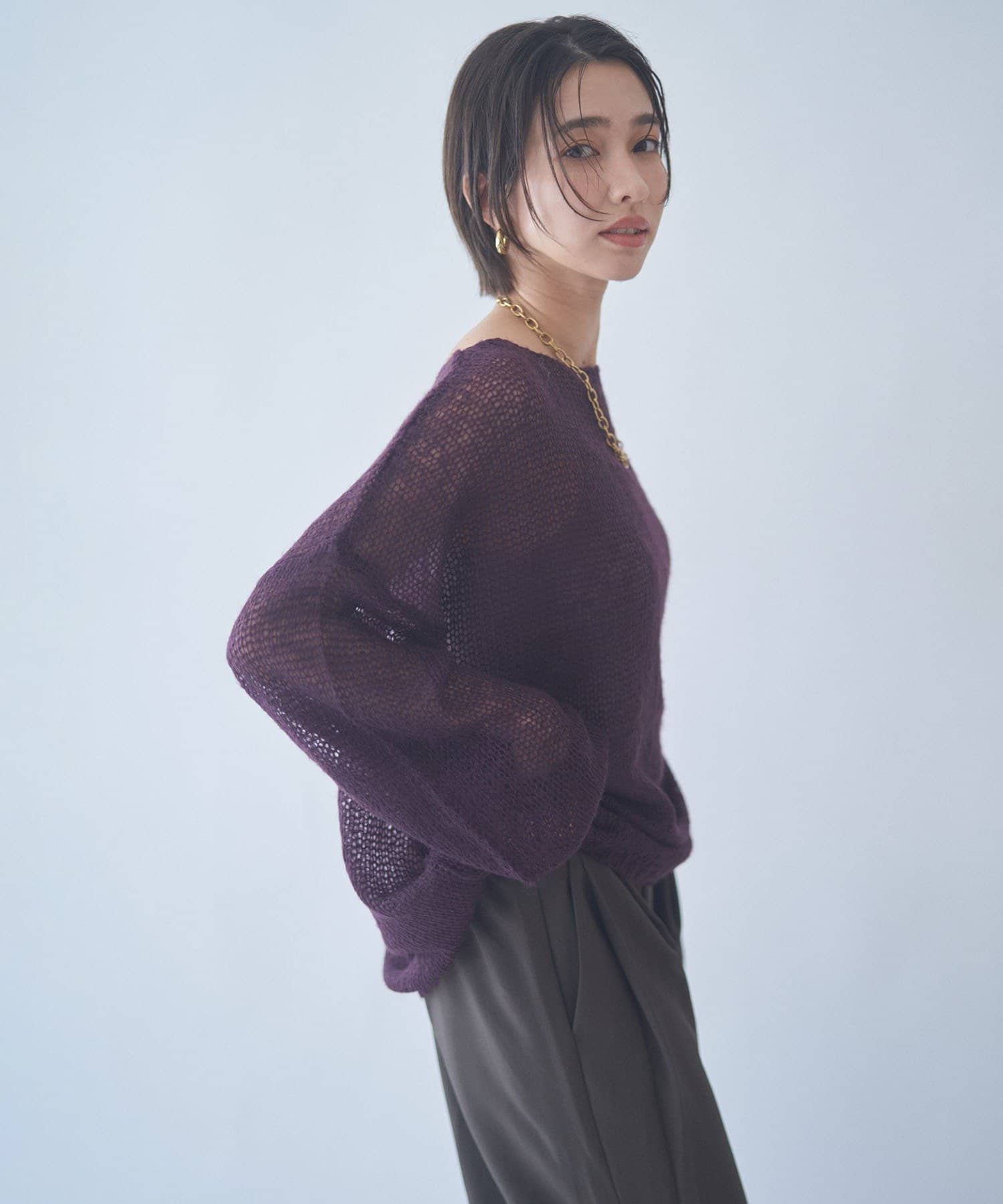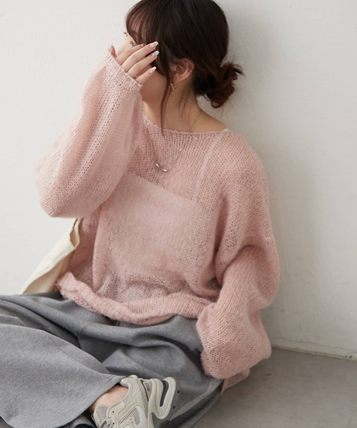 ・柔らかなモヘアタッチ素材で、チクチク感もなく着心地のよいニット。