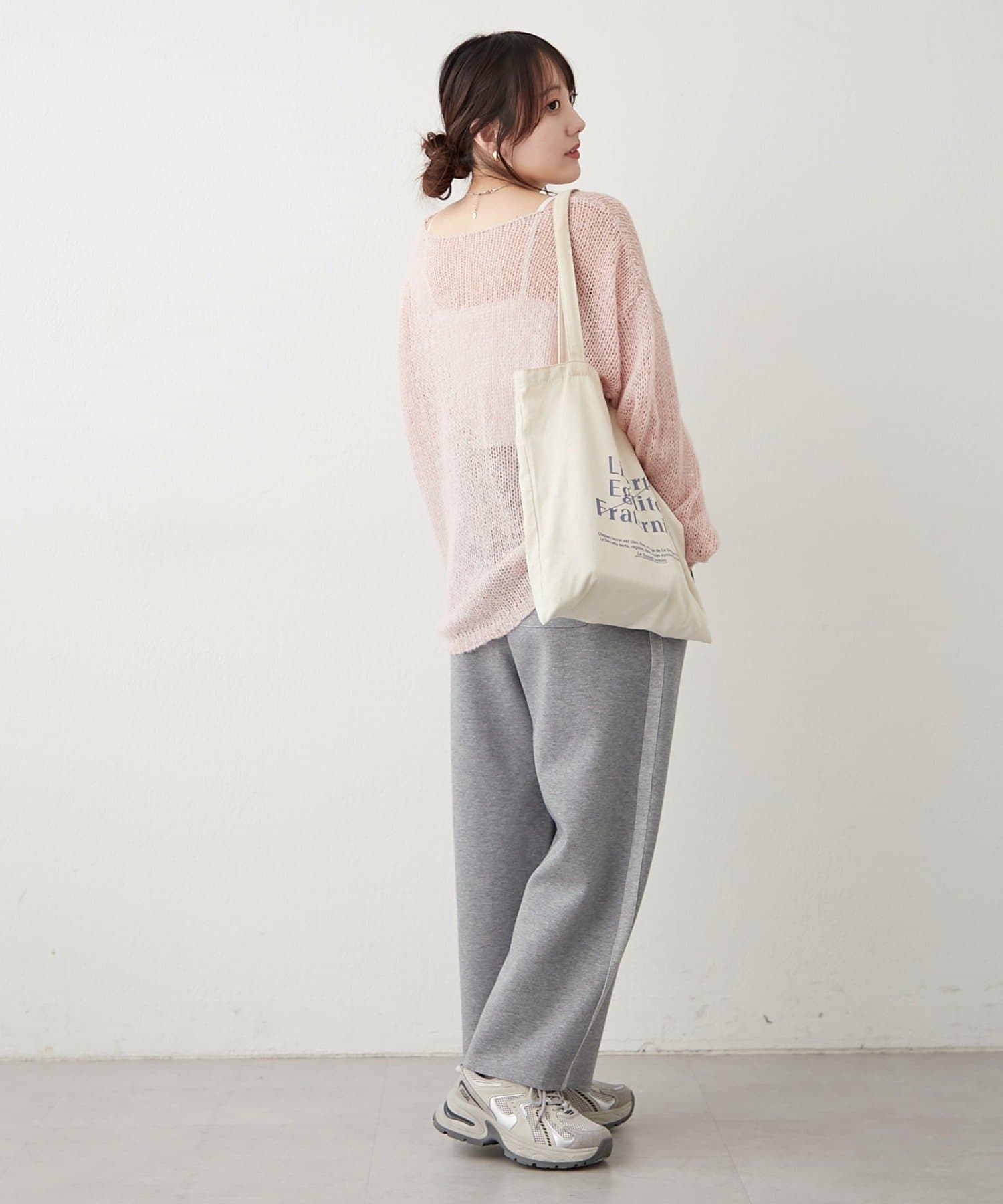 ハイネックニットやロンTeeのロゴを透けさせていつものコーデにトレンド感をプラスするのがオススメです。