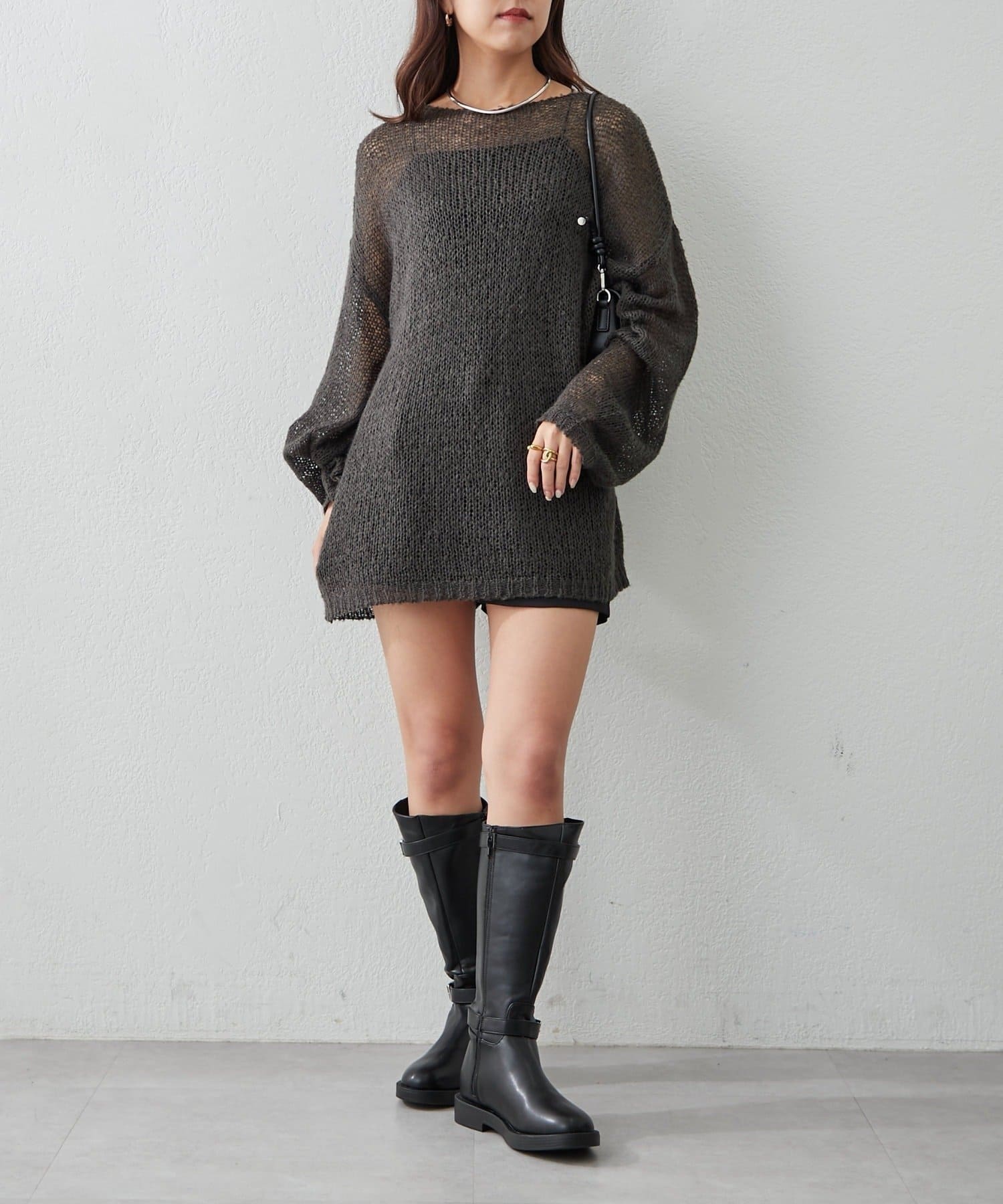 ボトムは鉄板のデニムで合わせたり、ミニボトムにロングブーツでミニワンピースっぽく着こなすのもオススメ。