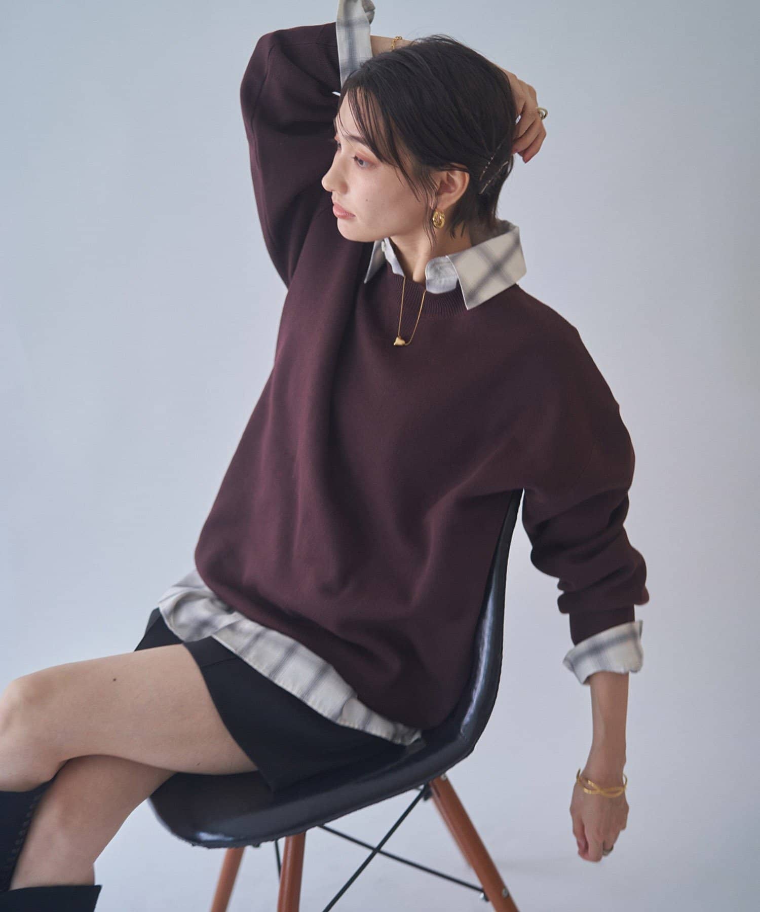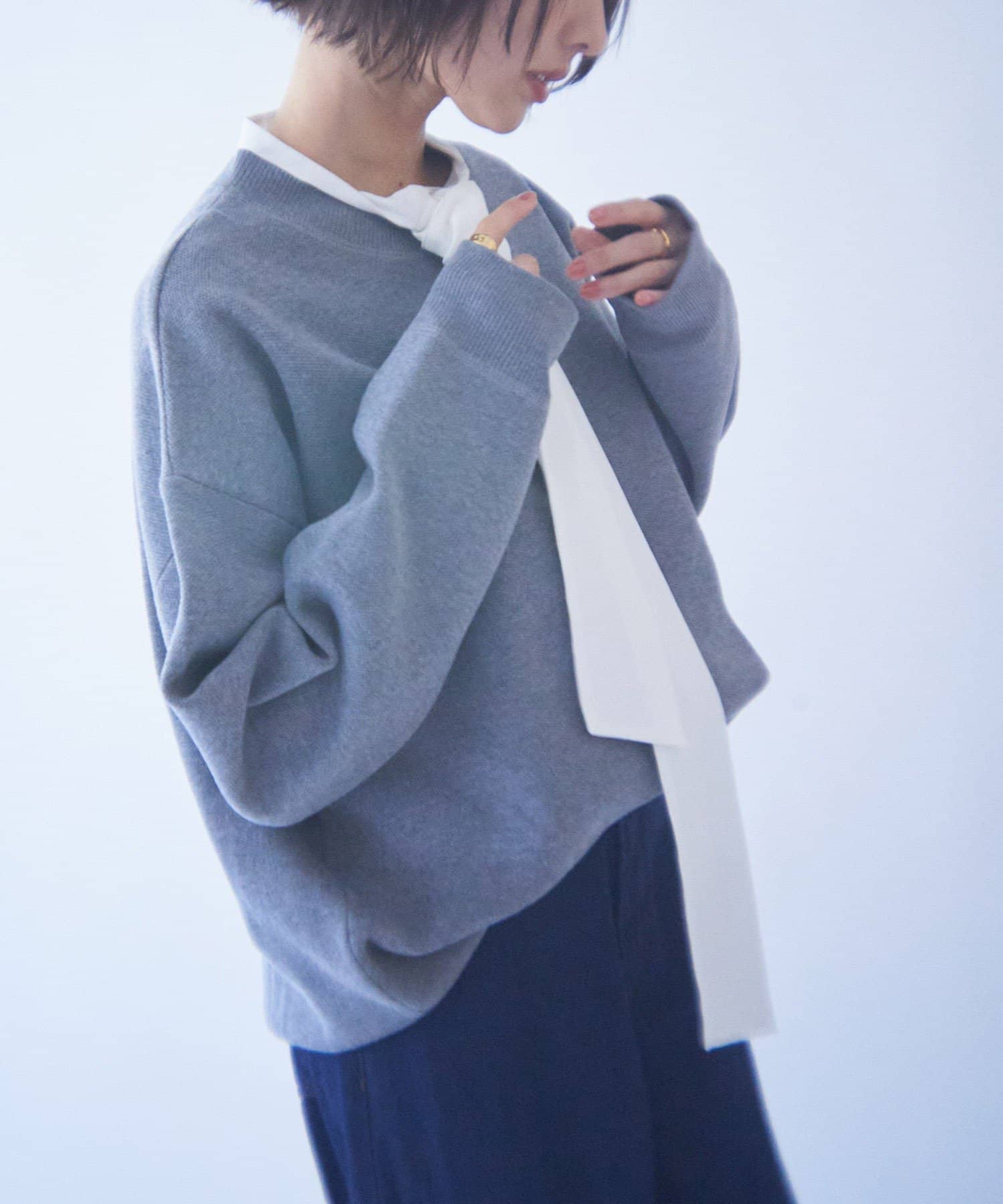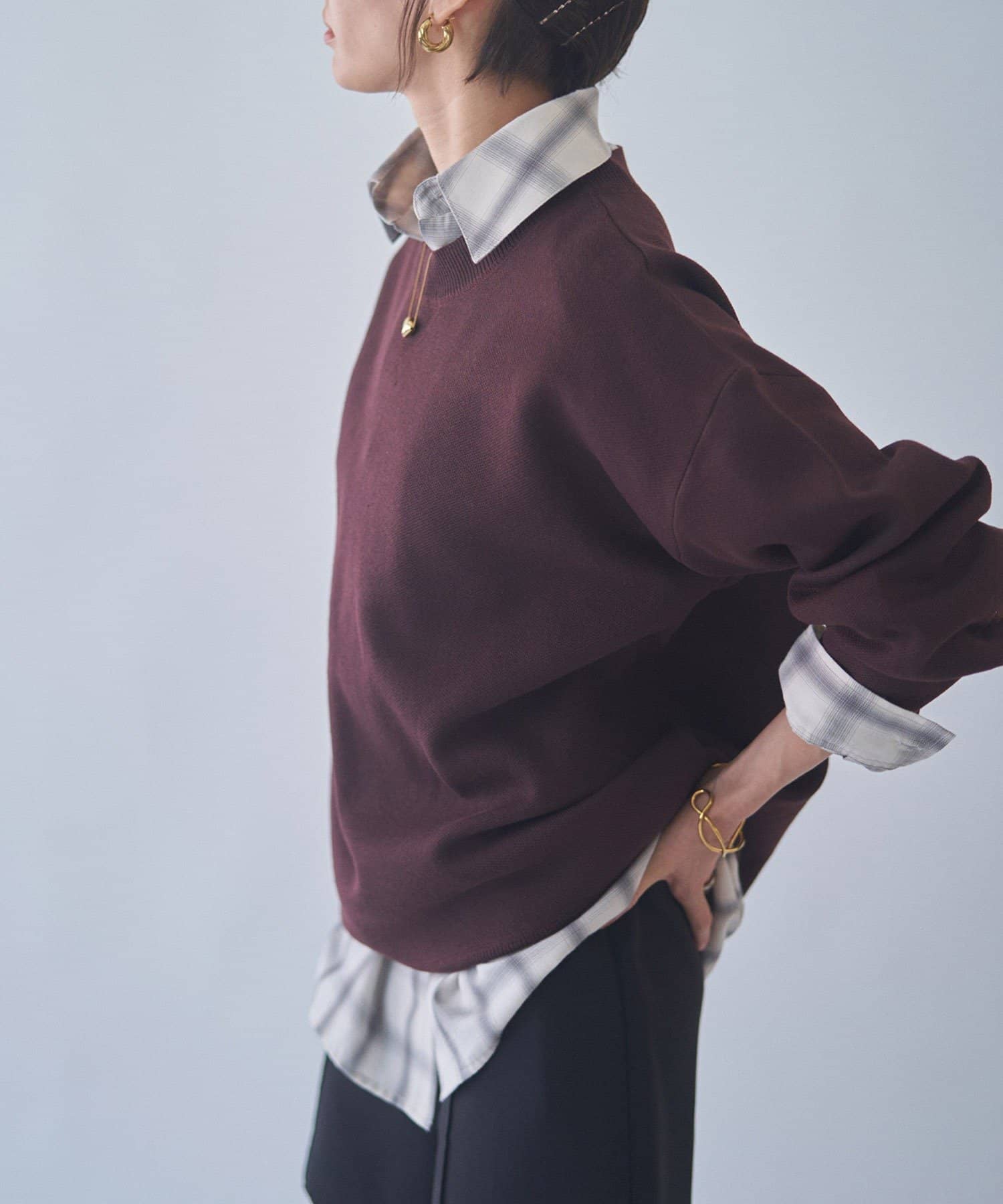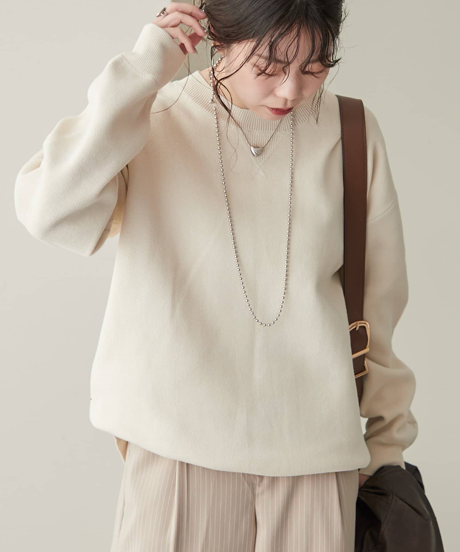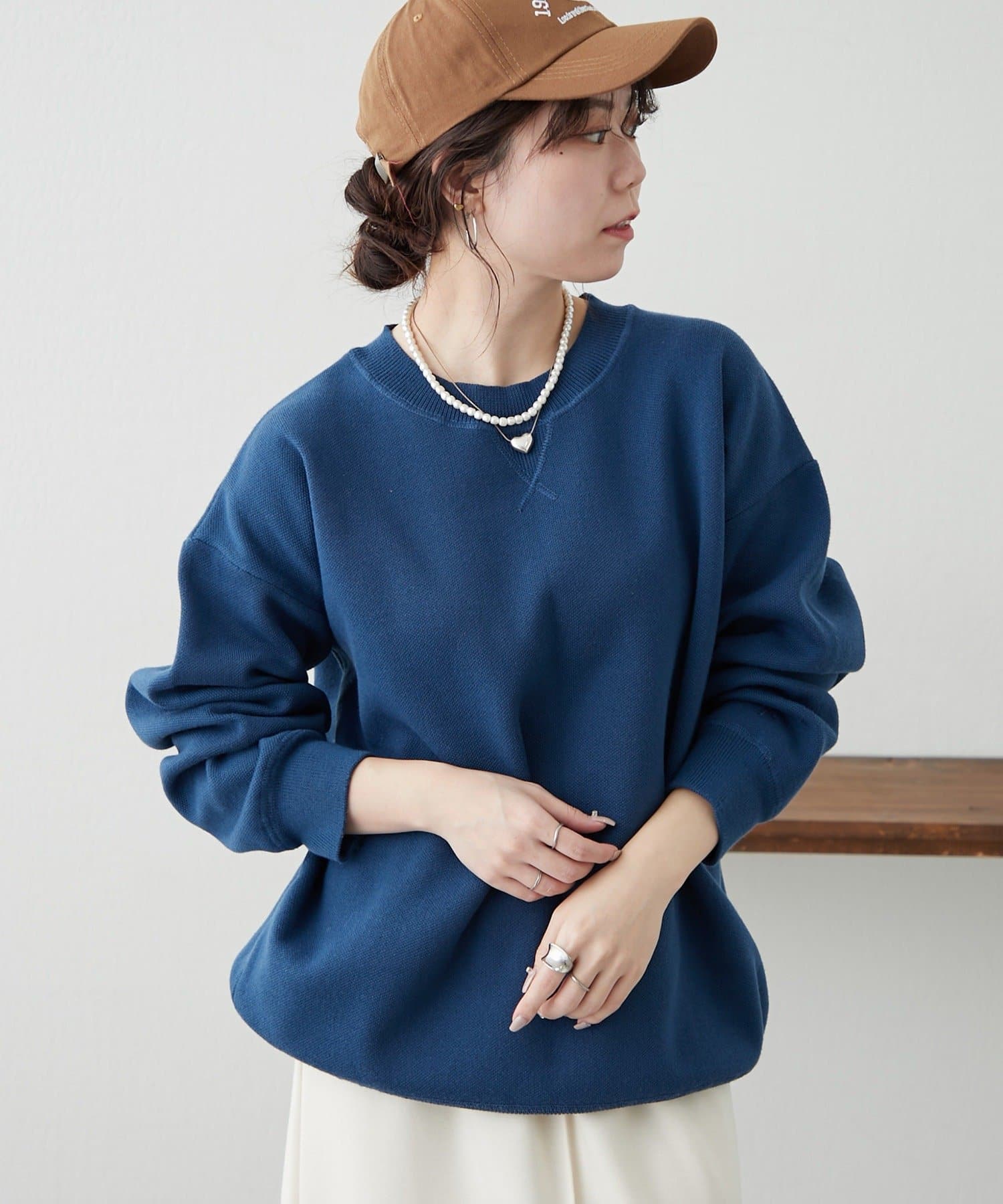 ・まるでスウェットのような軽い着心地のニットプルオーバー。