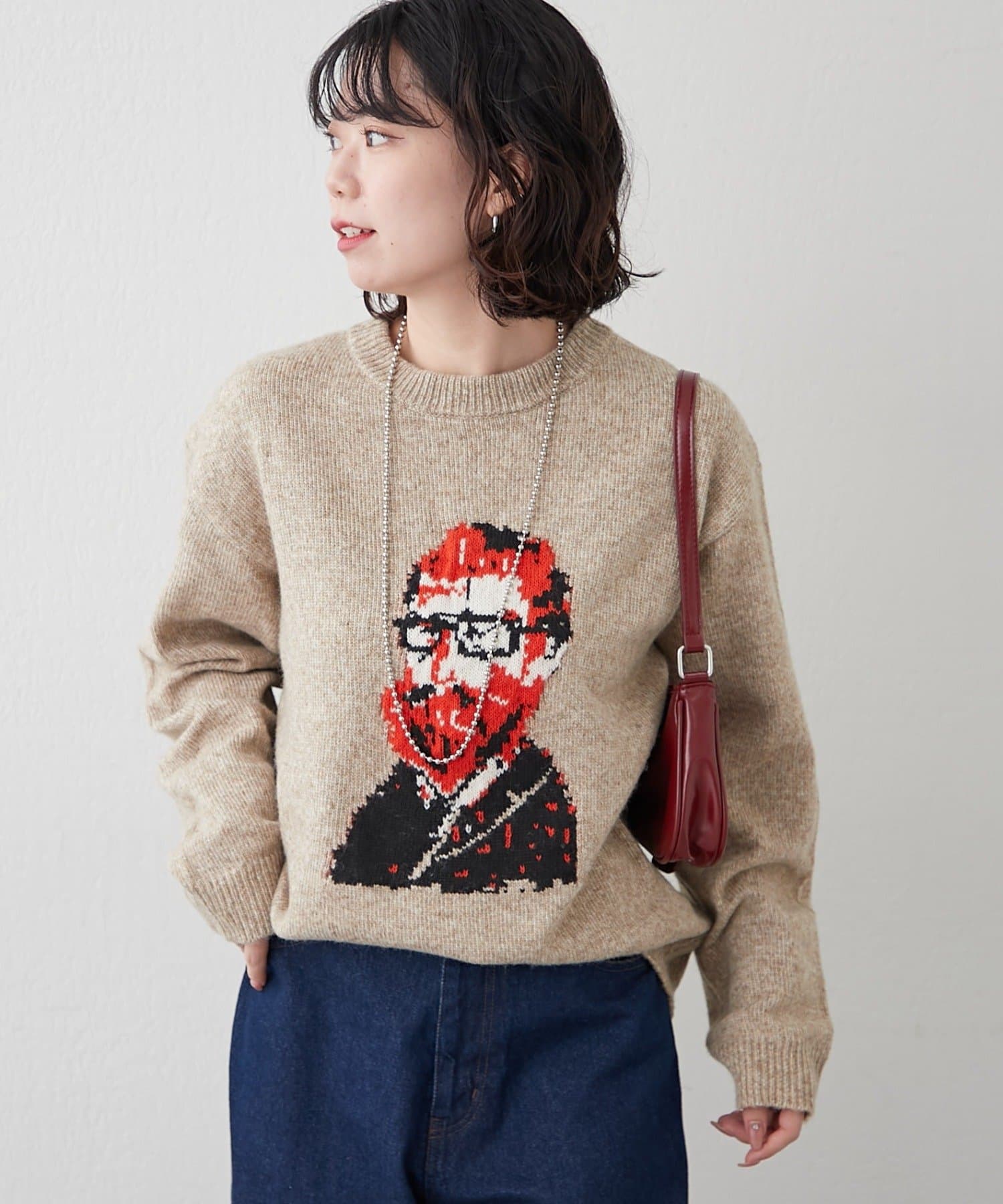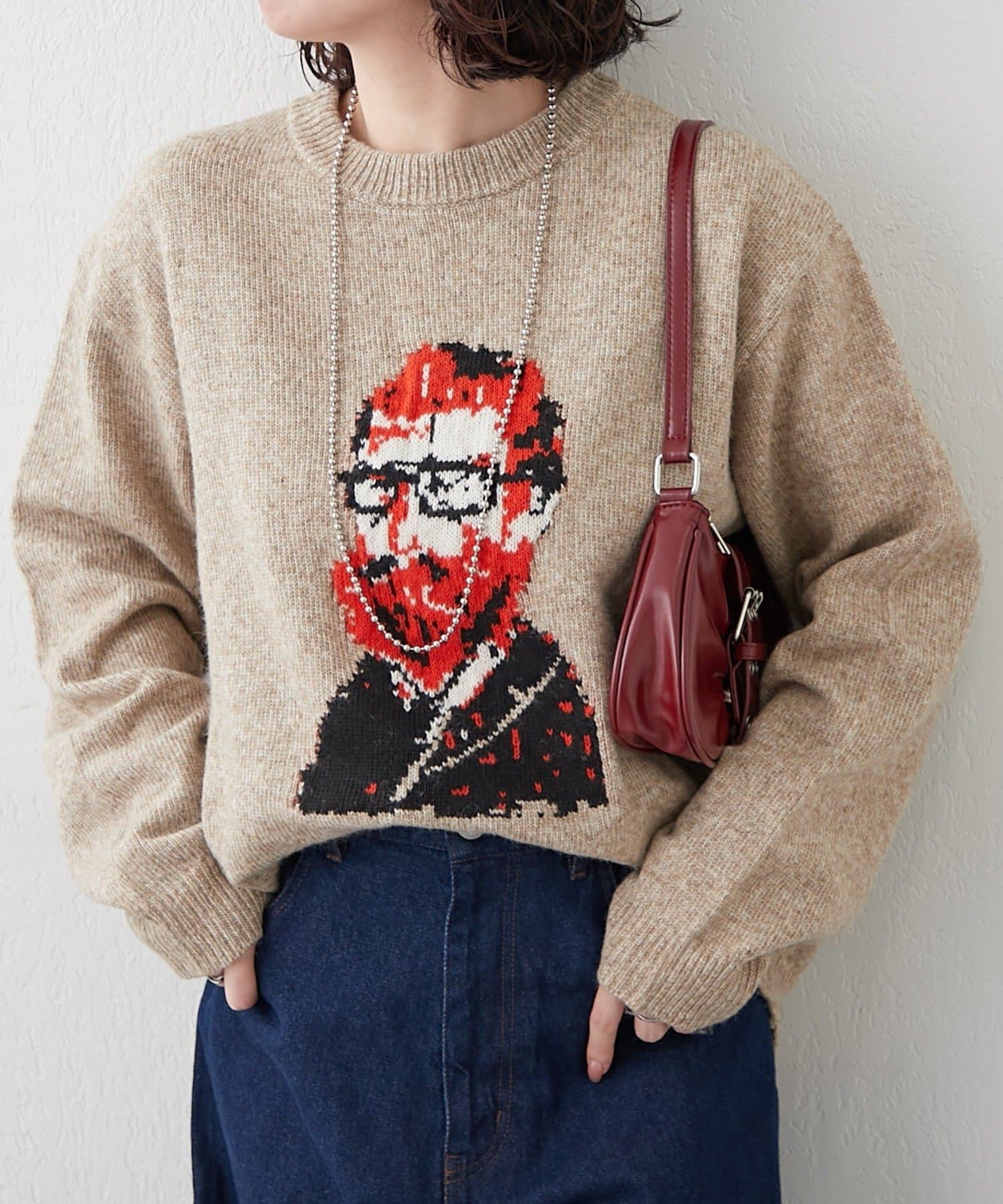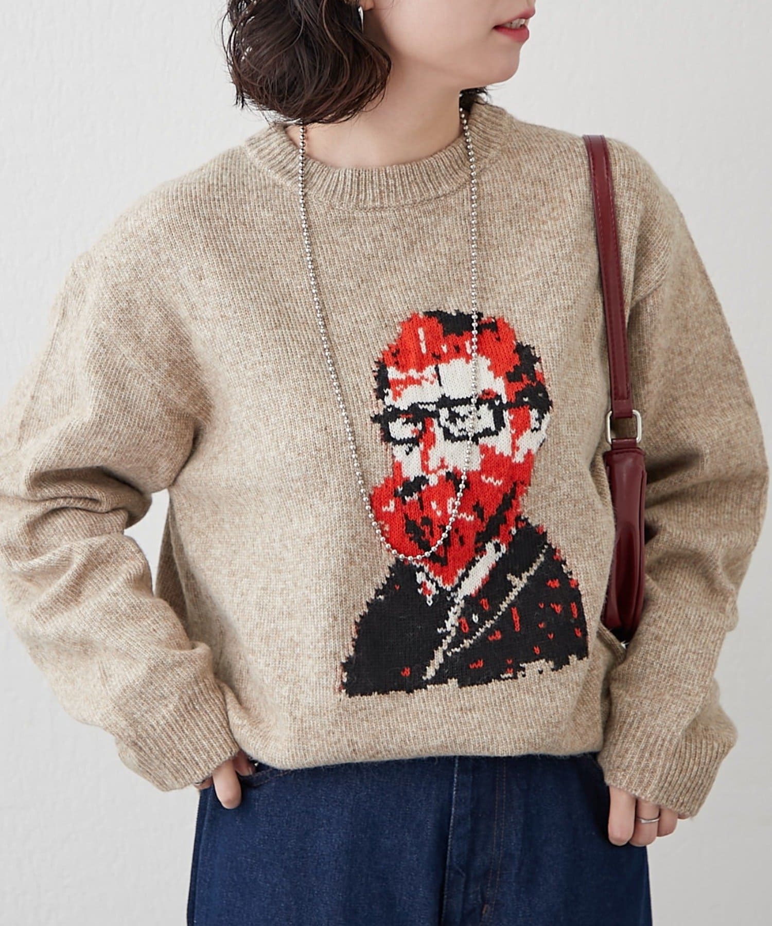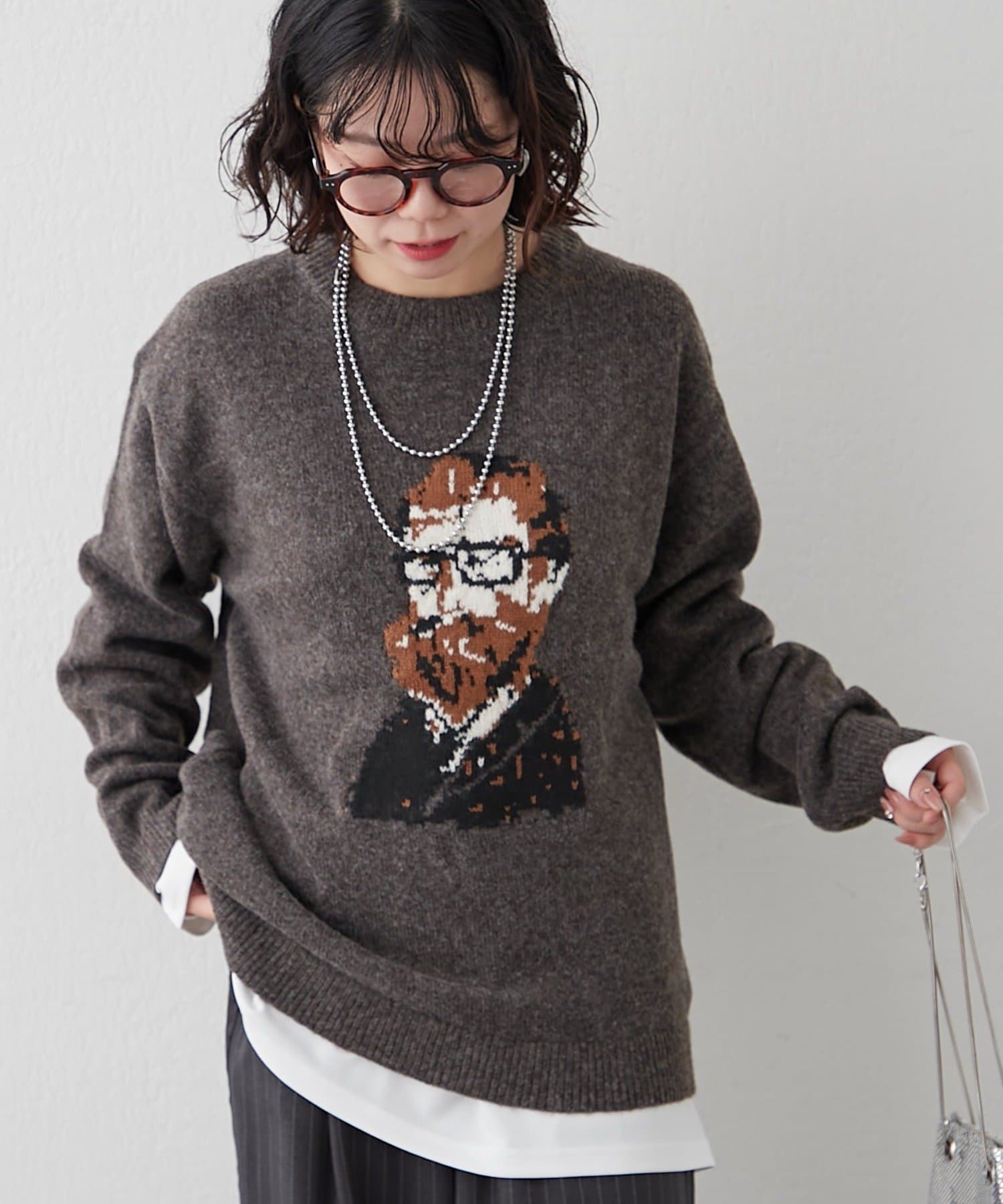 ・ユーモラスな肖像画が目を引く、大人の遊び心あふれるニットです