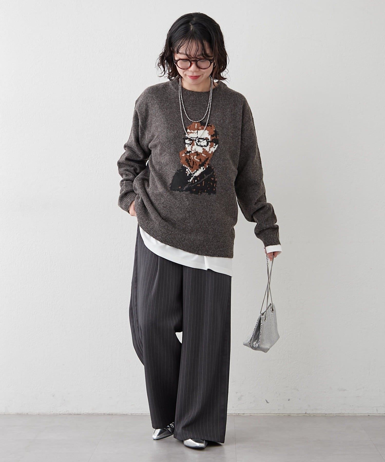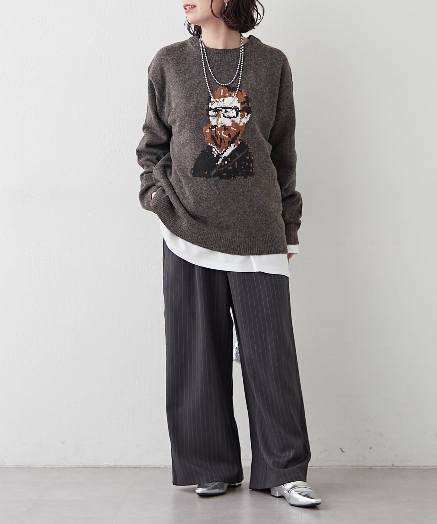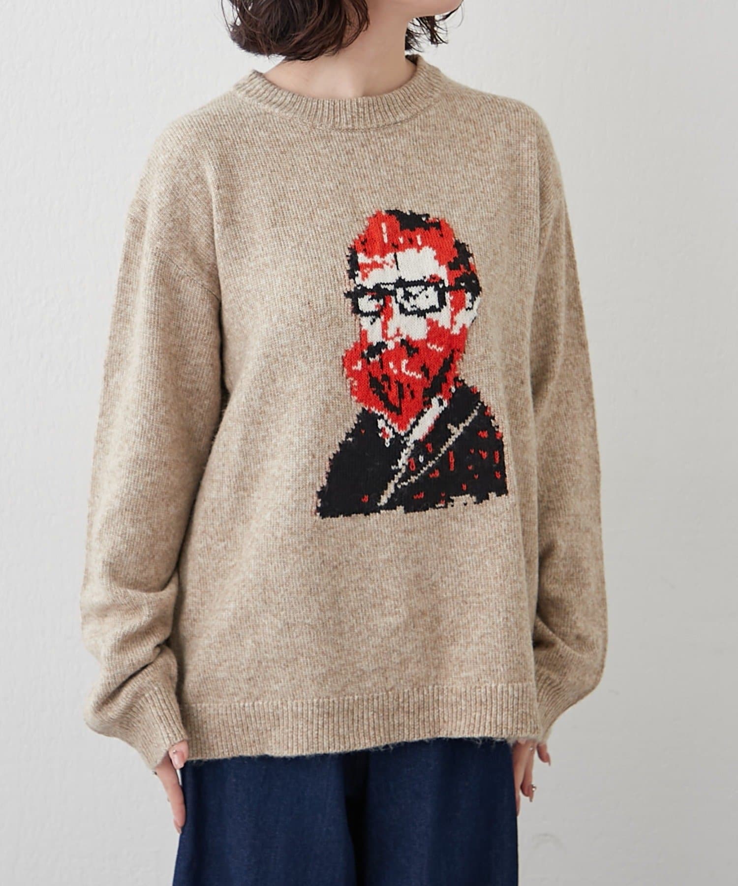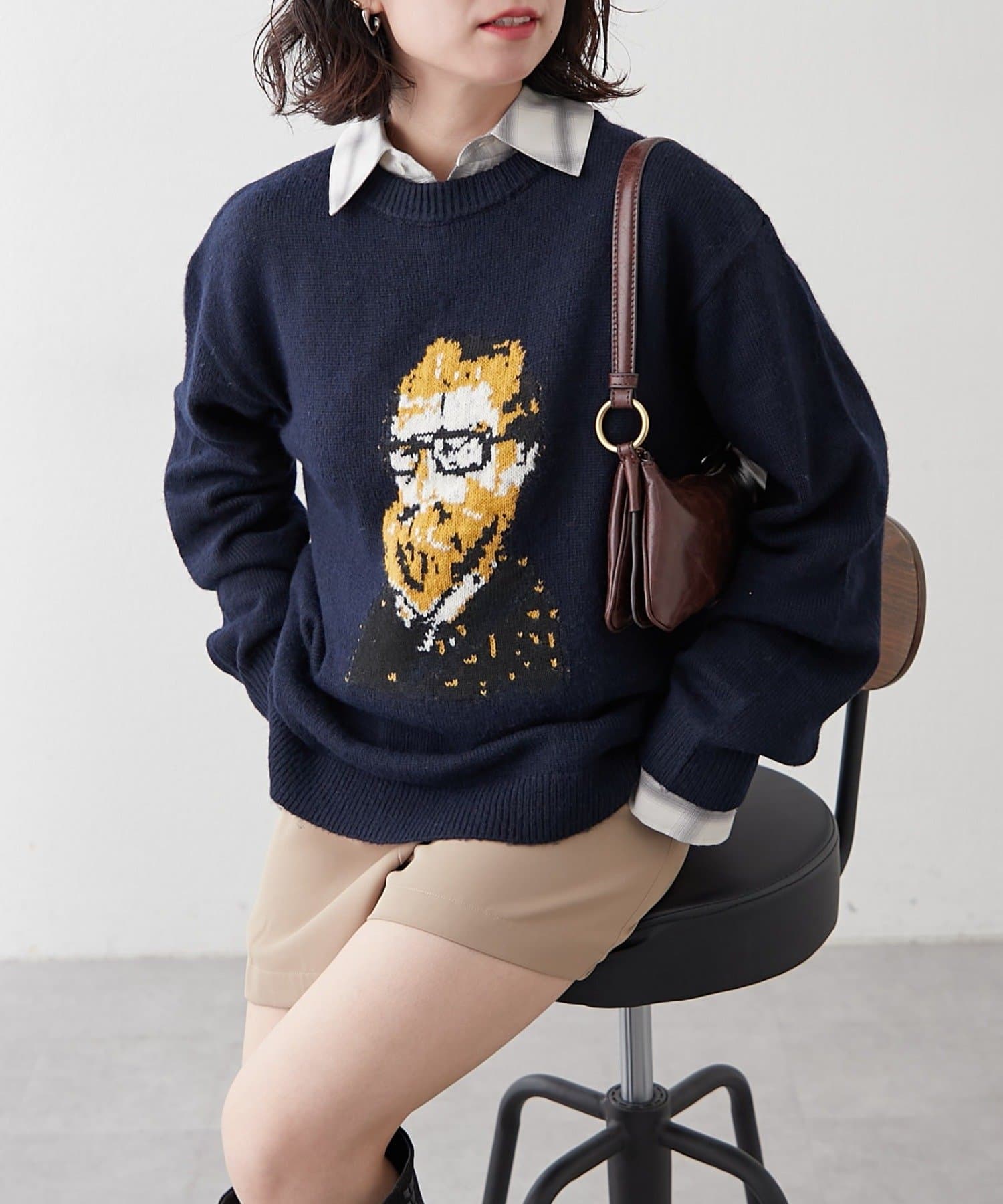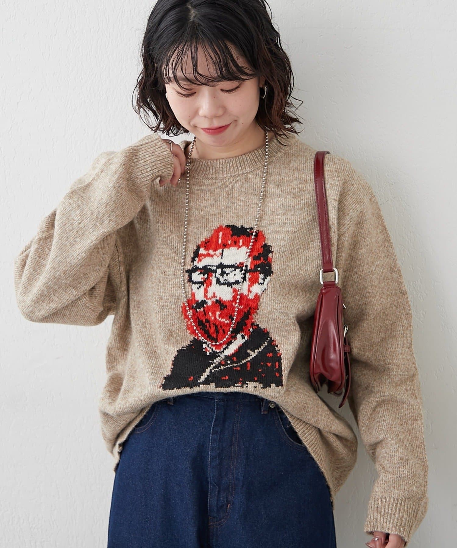 ・ユーモラスな肖像画が目を引く、大人の遊び心あふれるニットです