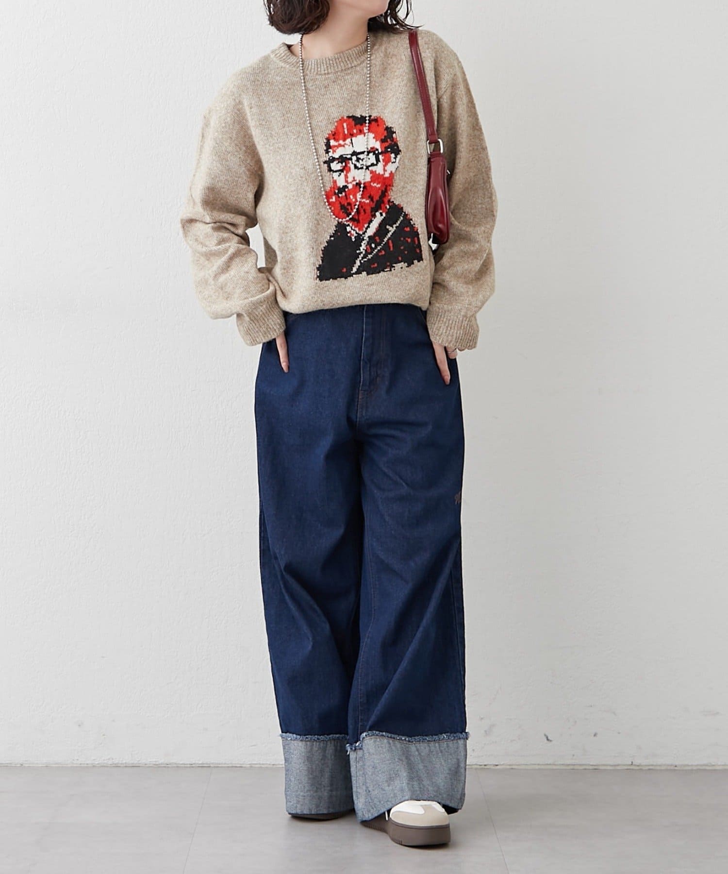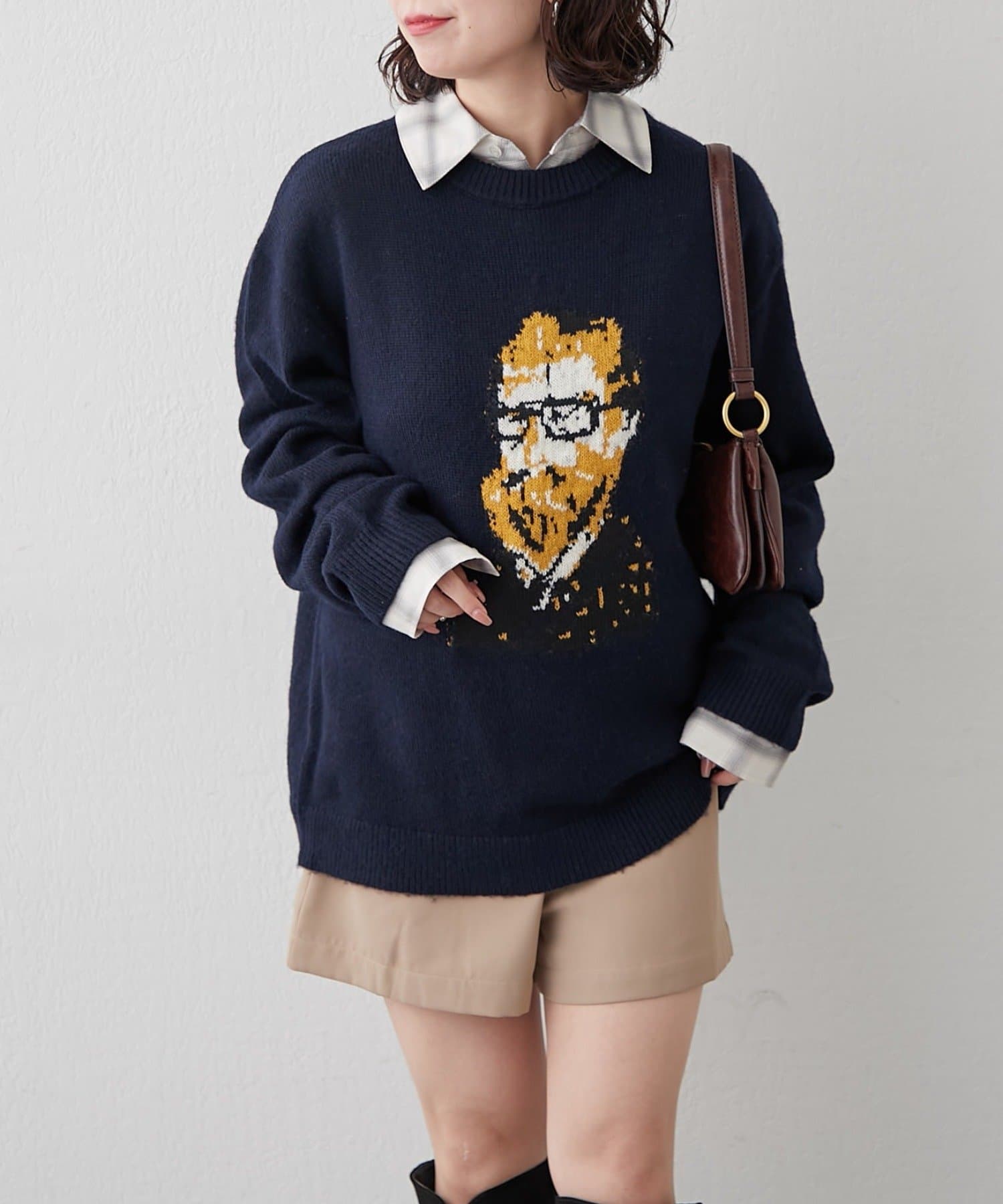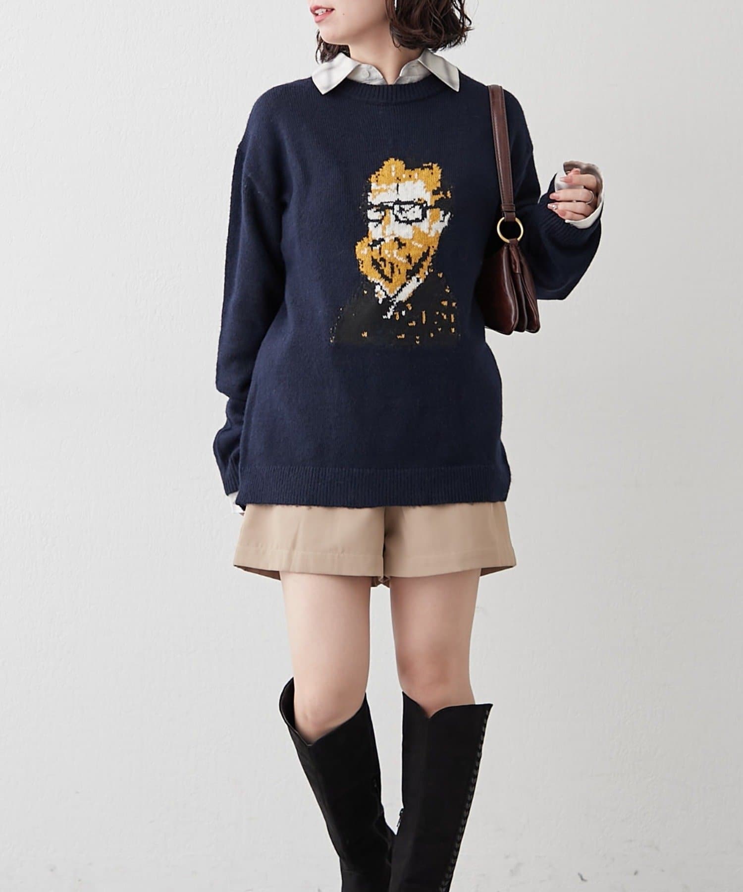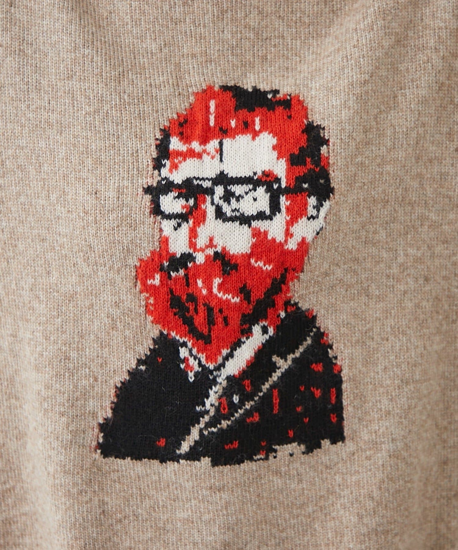 ・ユーモラスな肖像画が目を引く、大人の遊び心あふれるニットです