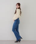 ・ハイウエストのフレアデニムで腰位置を高く見せるトレンドコーデ