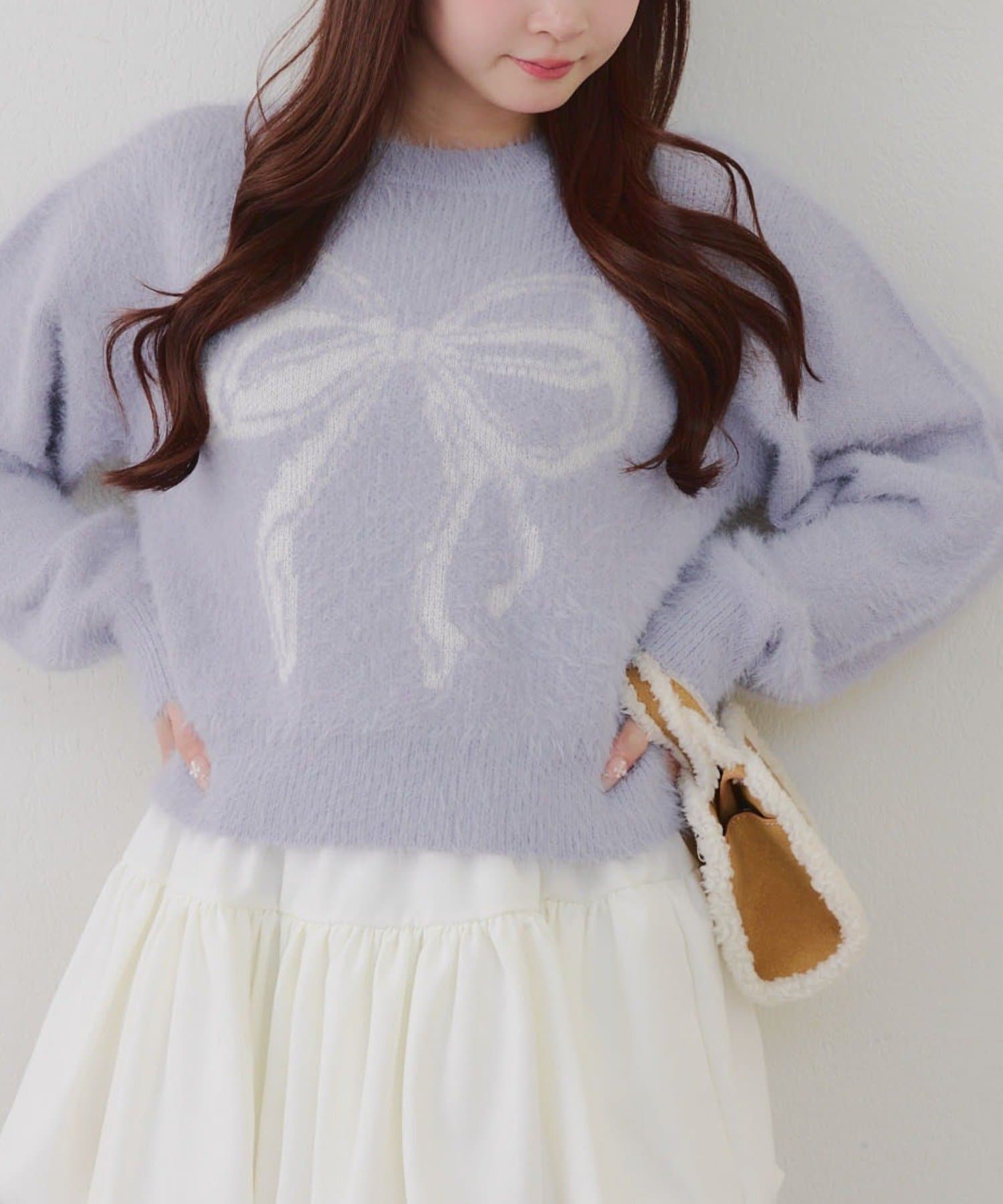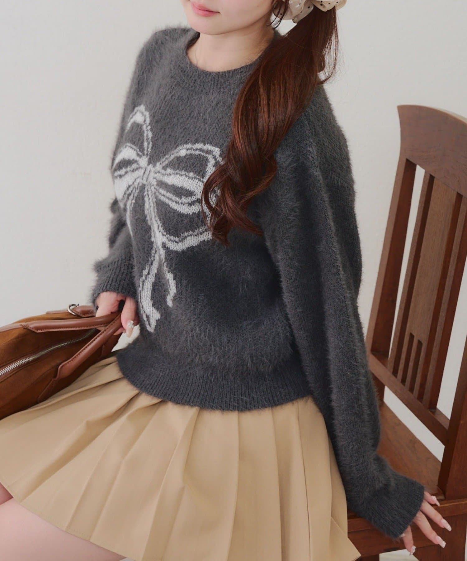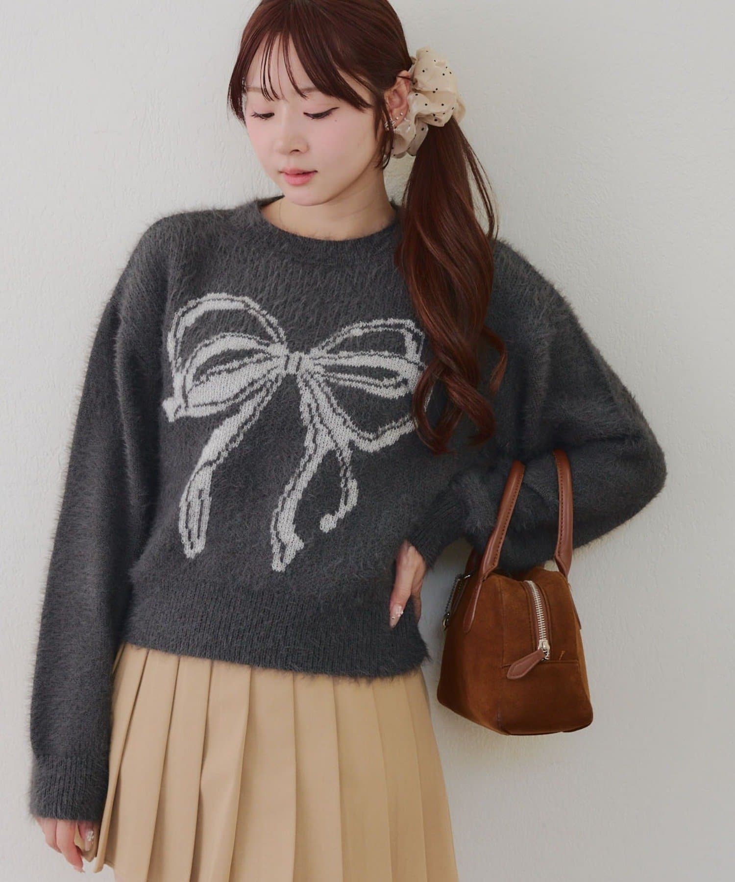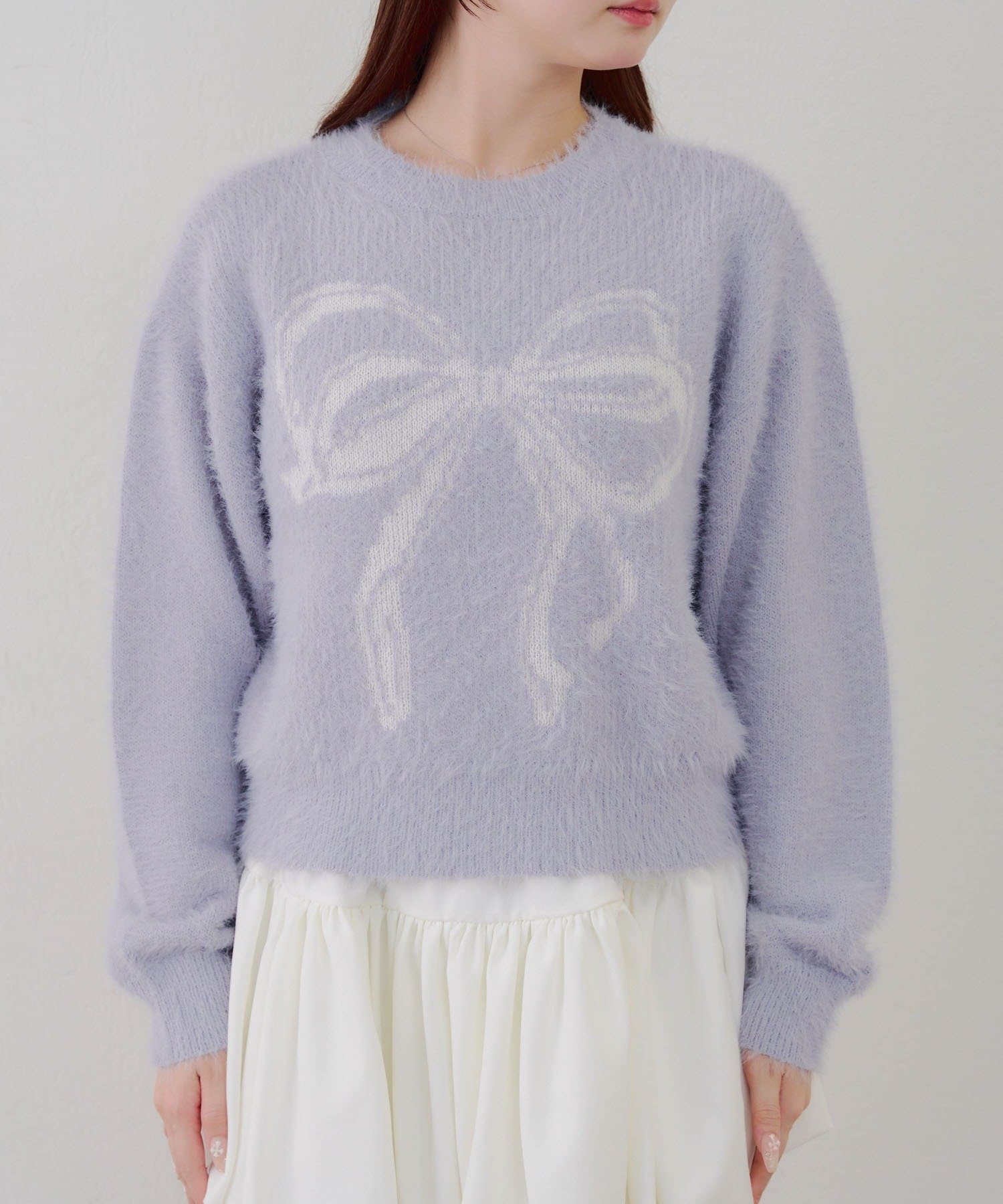 Remind me and forever(リマインドミーアンドフォーエバー) リボン柄シャギーニット