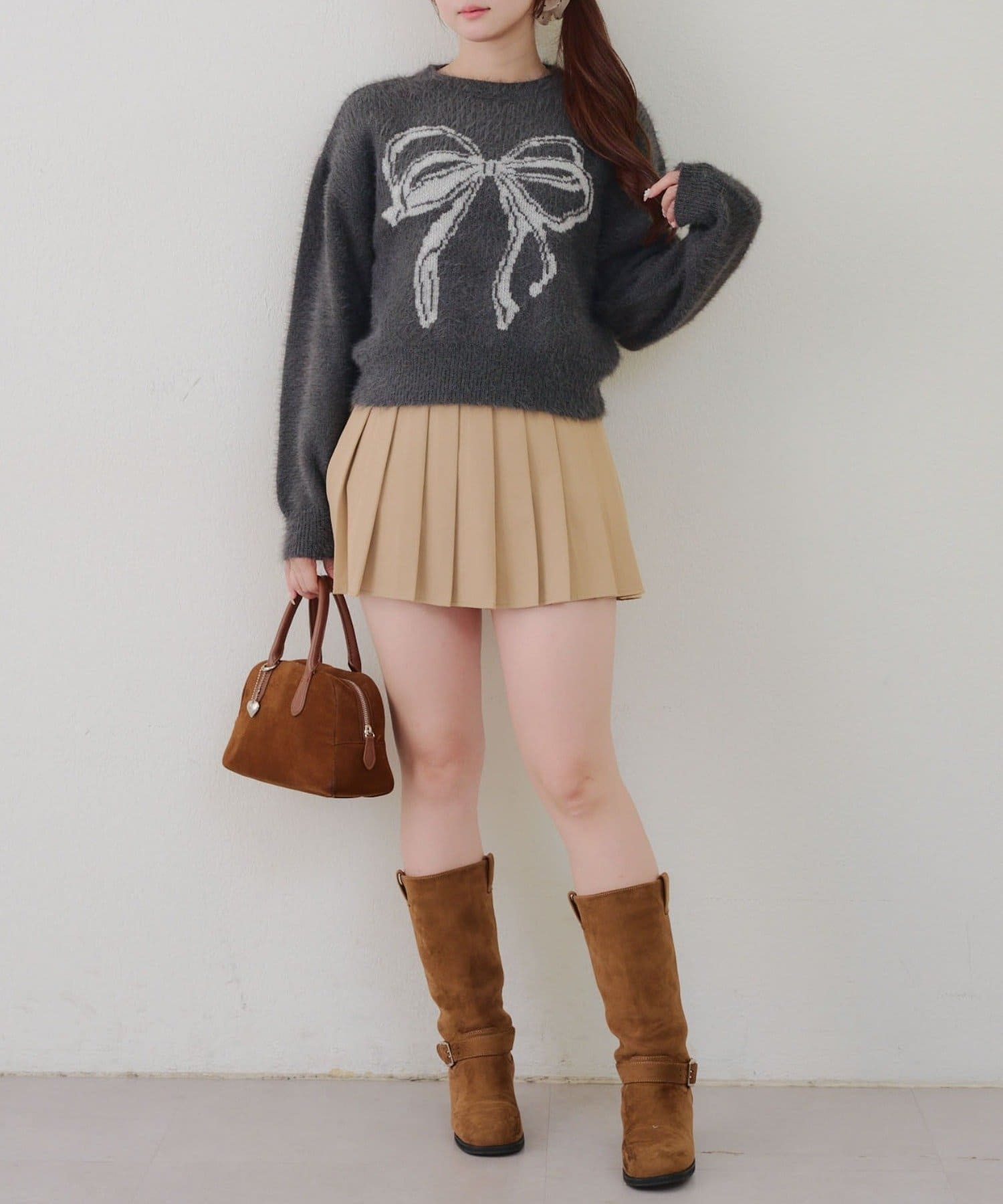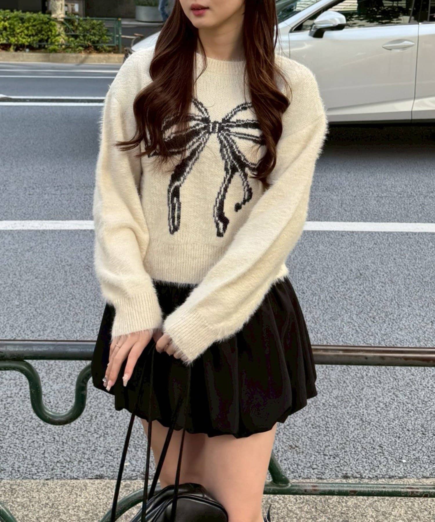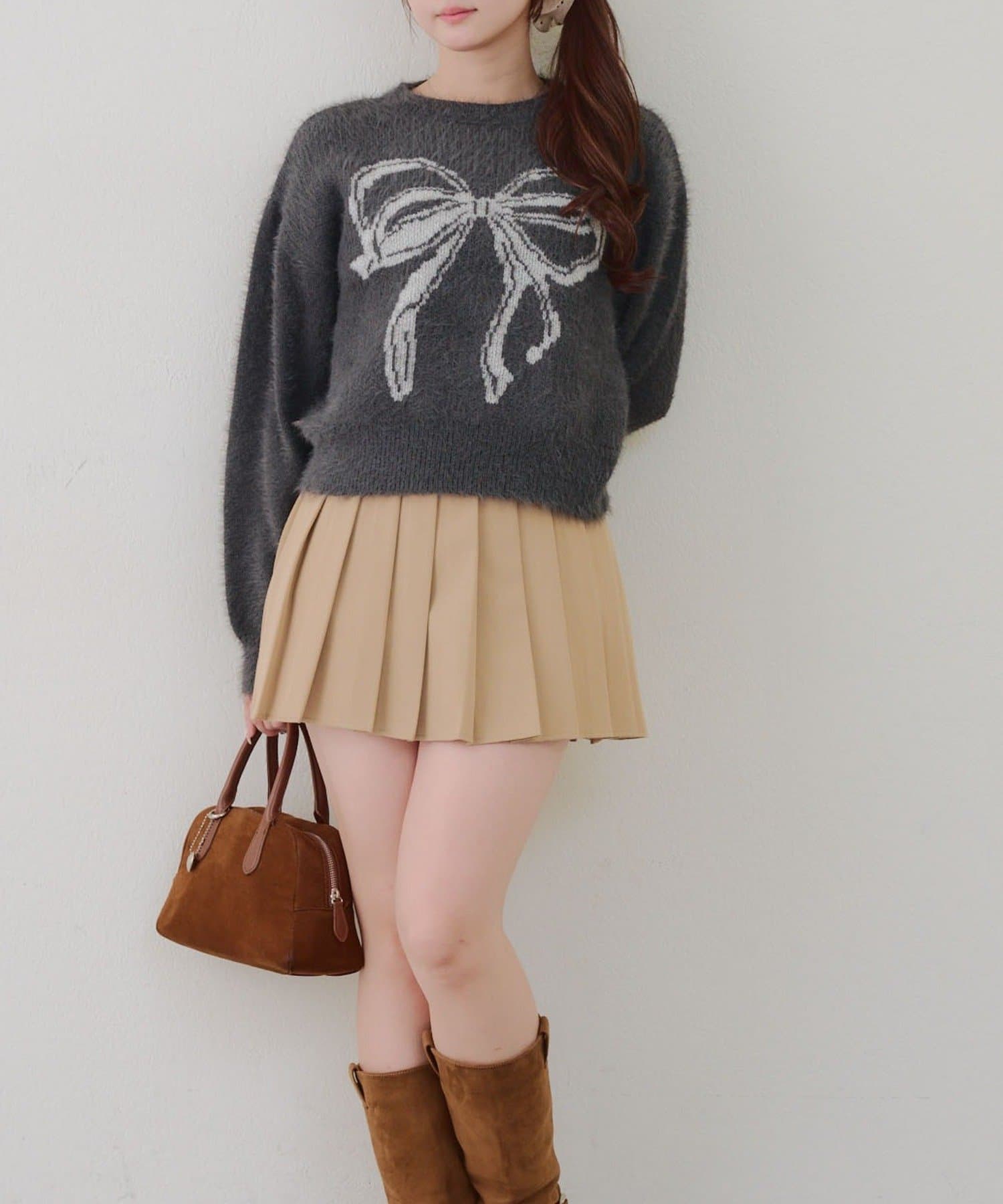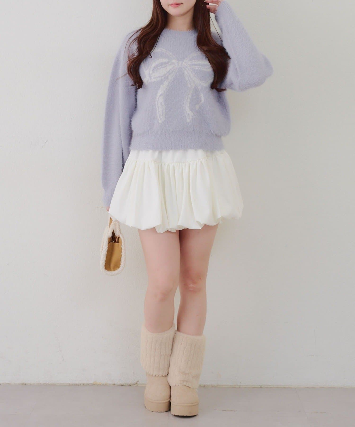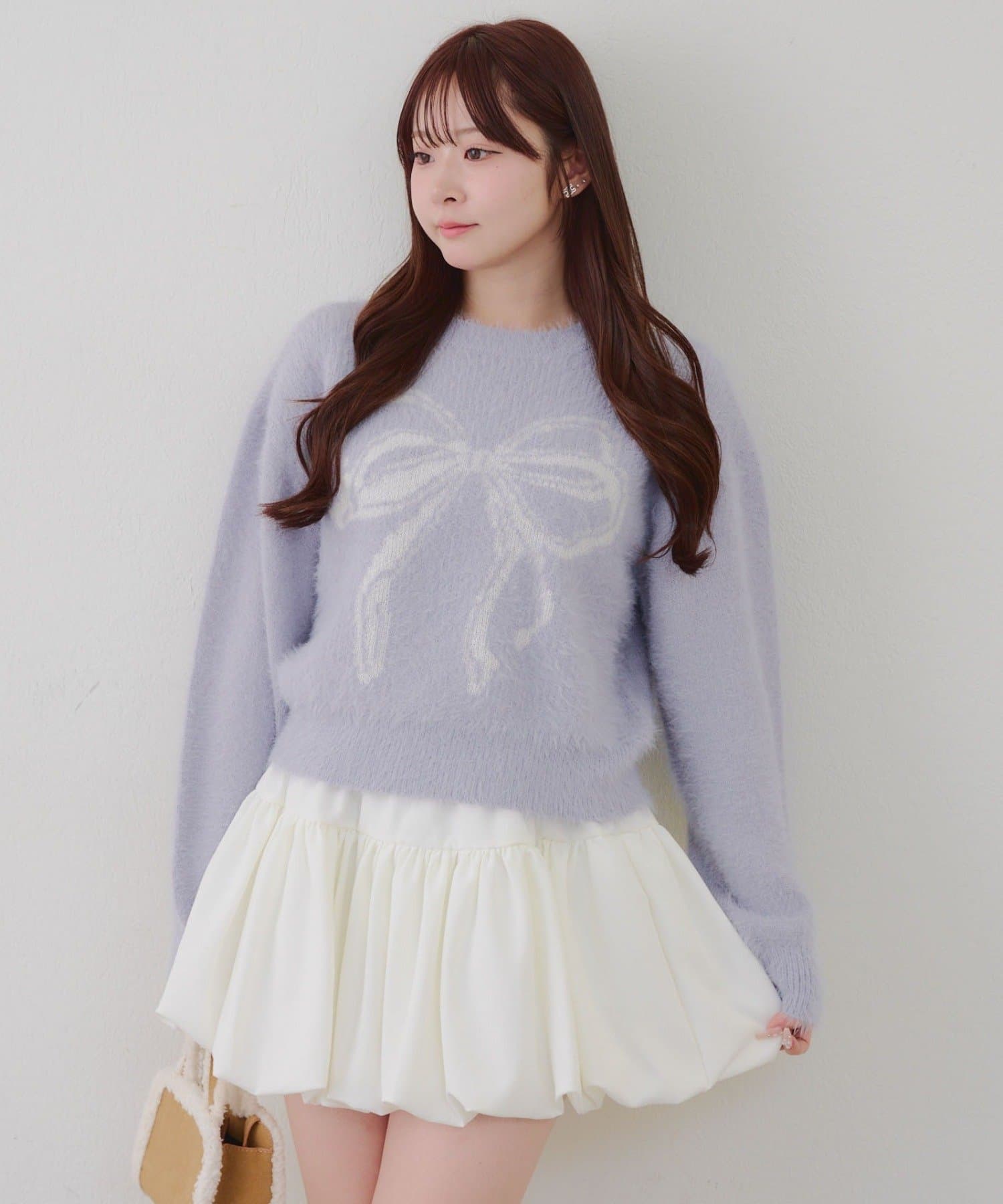 Remind me and forever(リマインドミーアンドフォーエバー) リボン柄シャギーニット