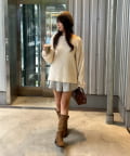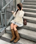 ・ミニボトムにロングブーツでとことんガーリーにまとめるのも◎