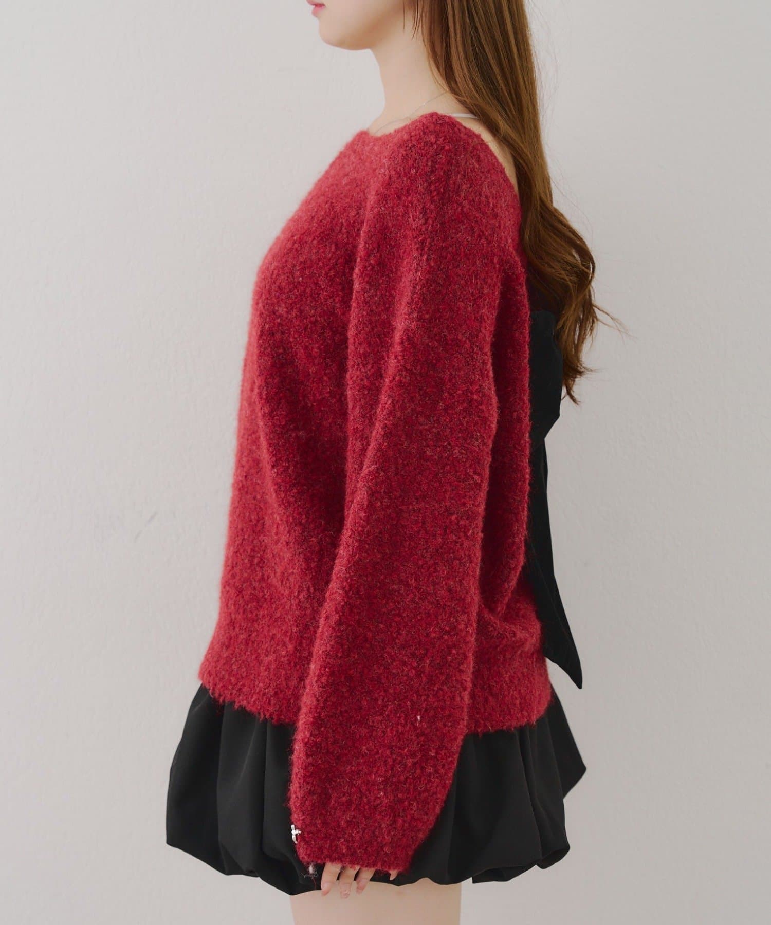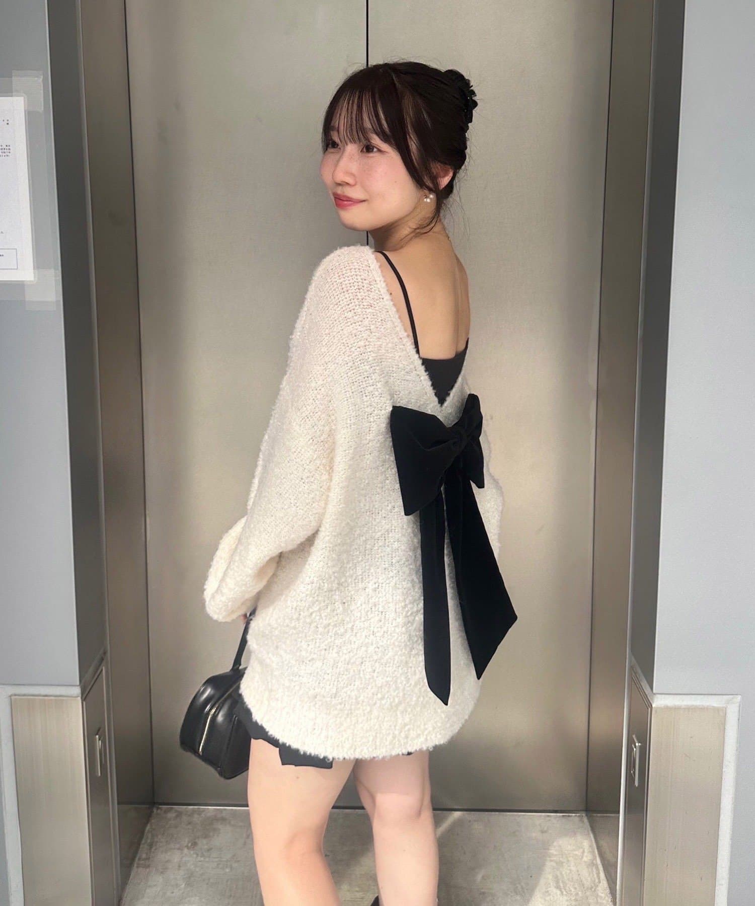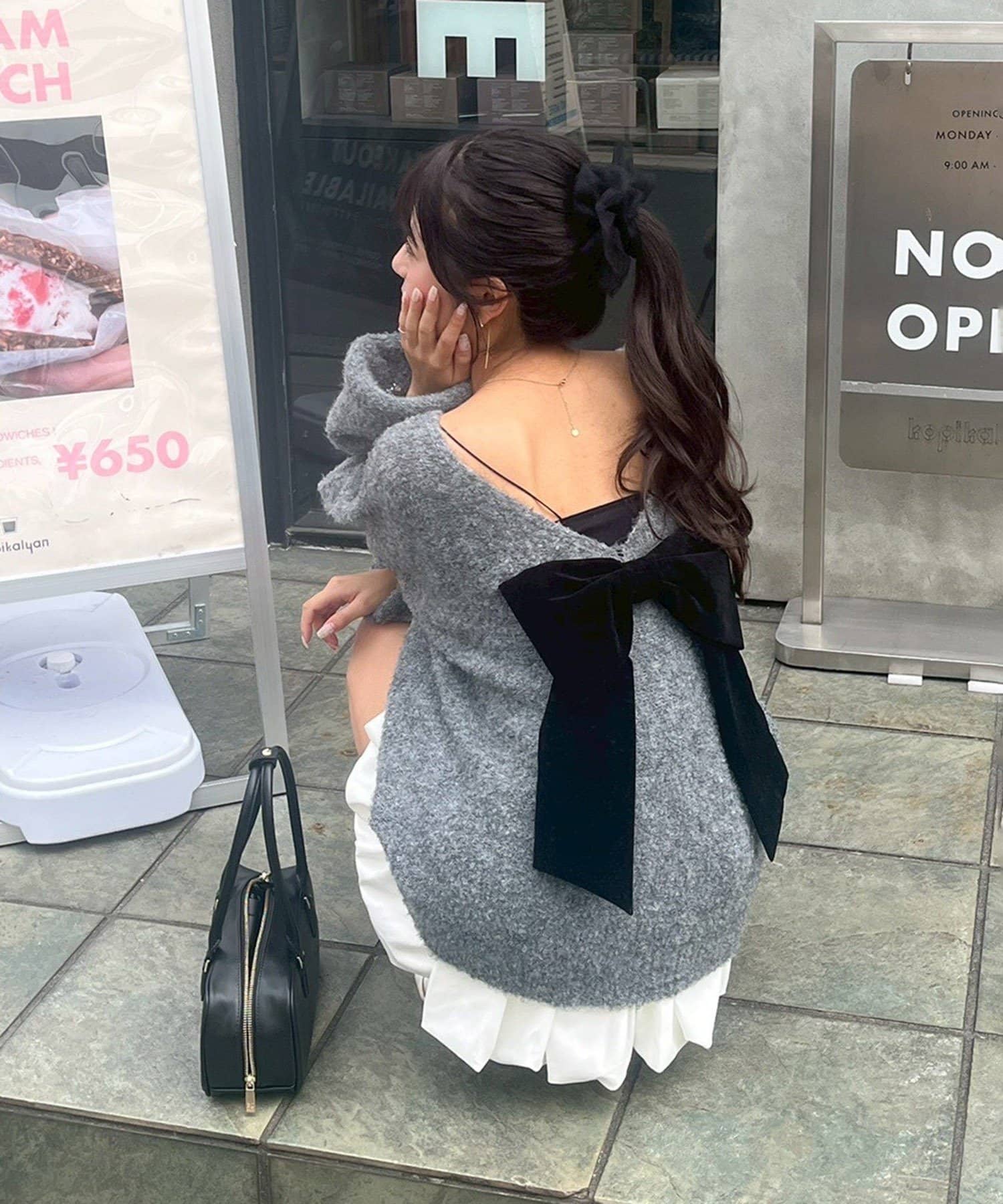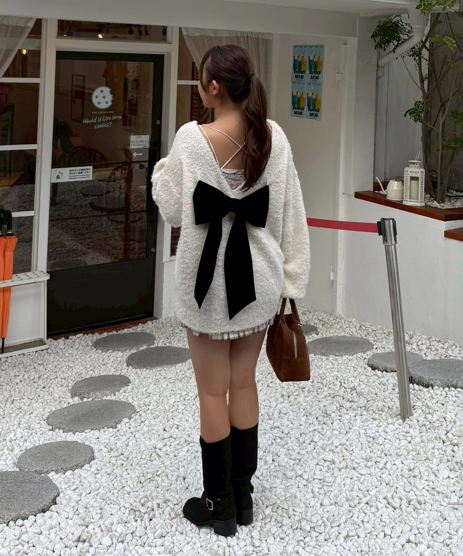 • Remind me and forever(リマインドミーアンドフォーエバー) 【Ribbon Collection】後ろベロアリボンニット