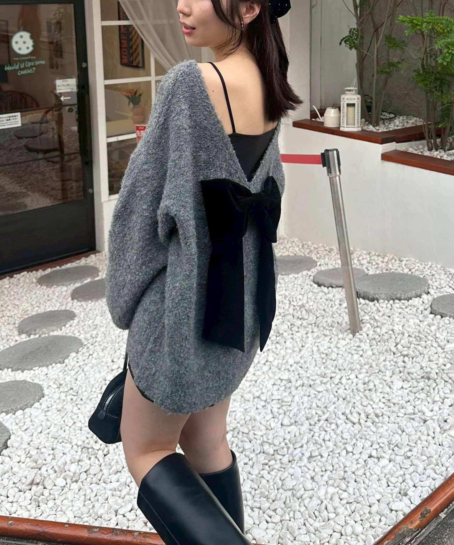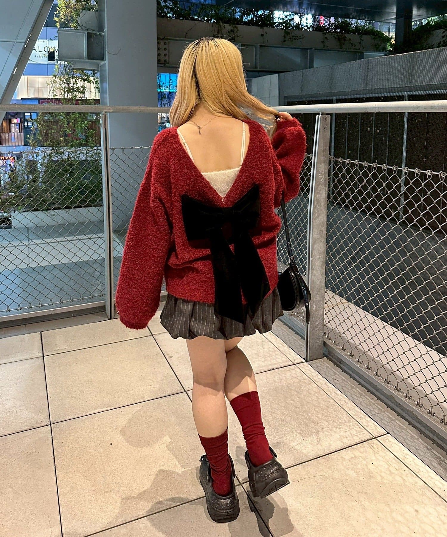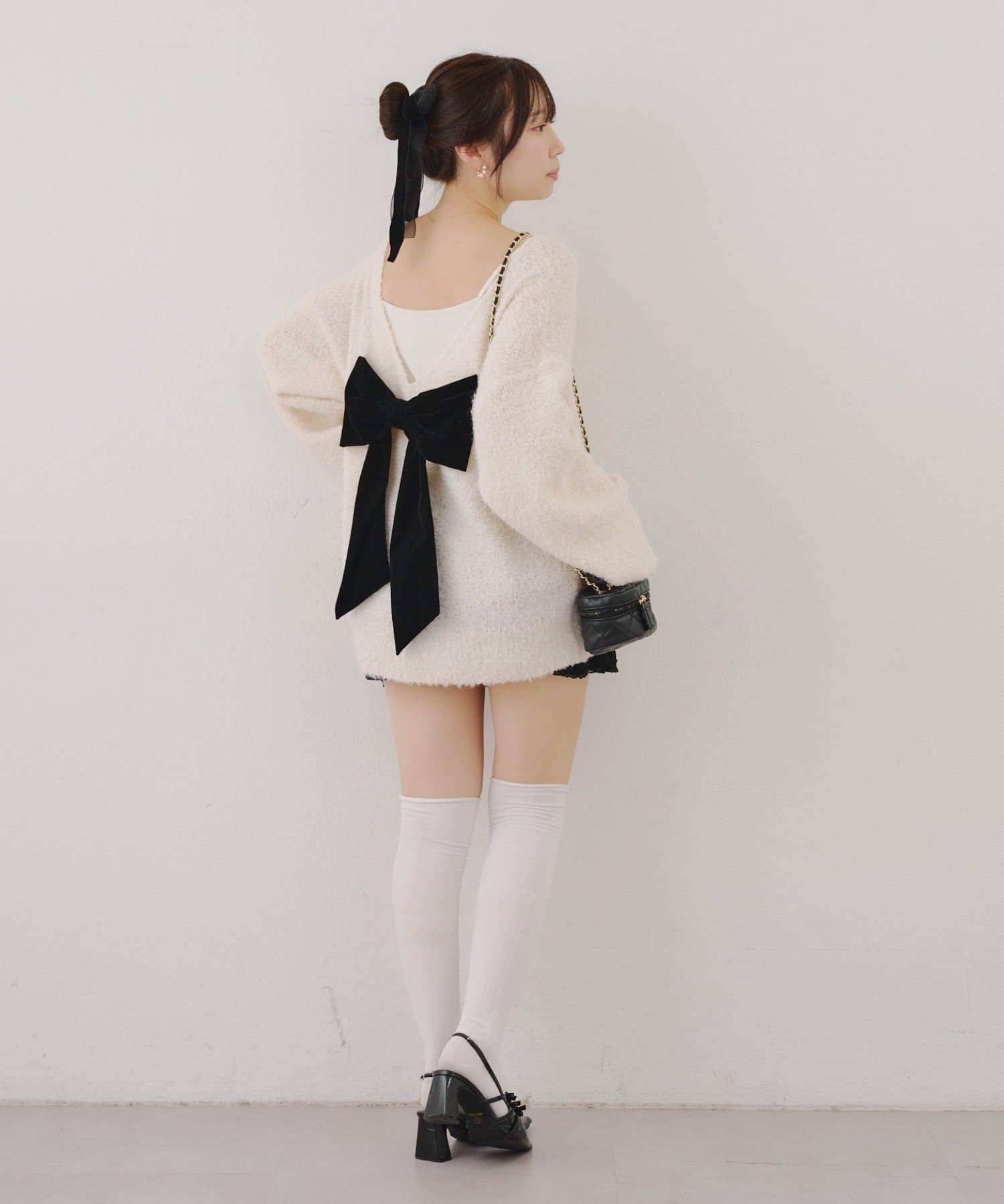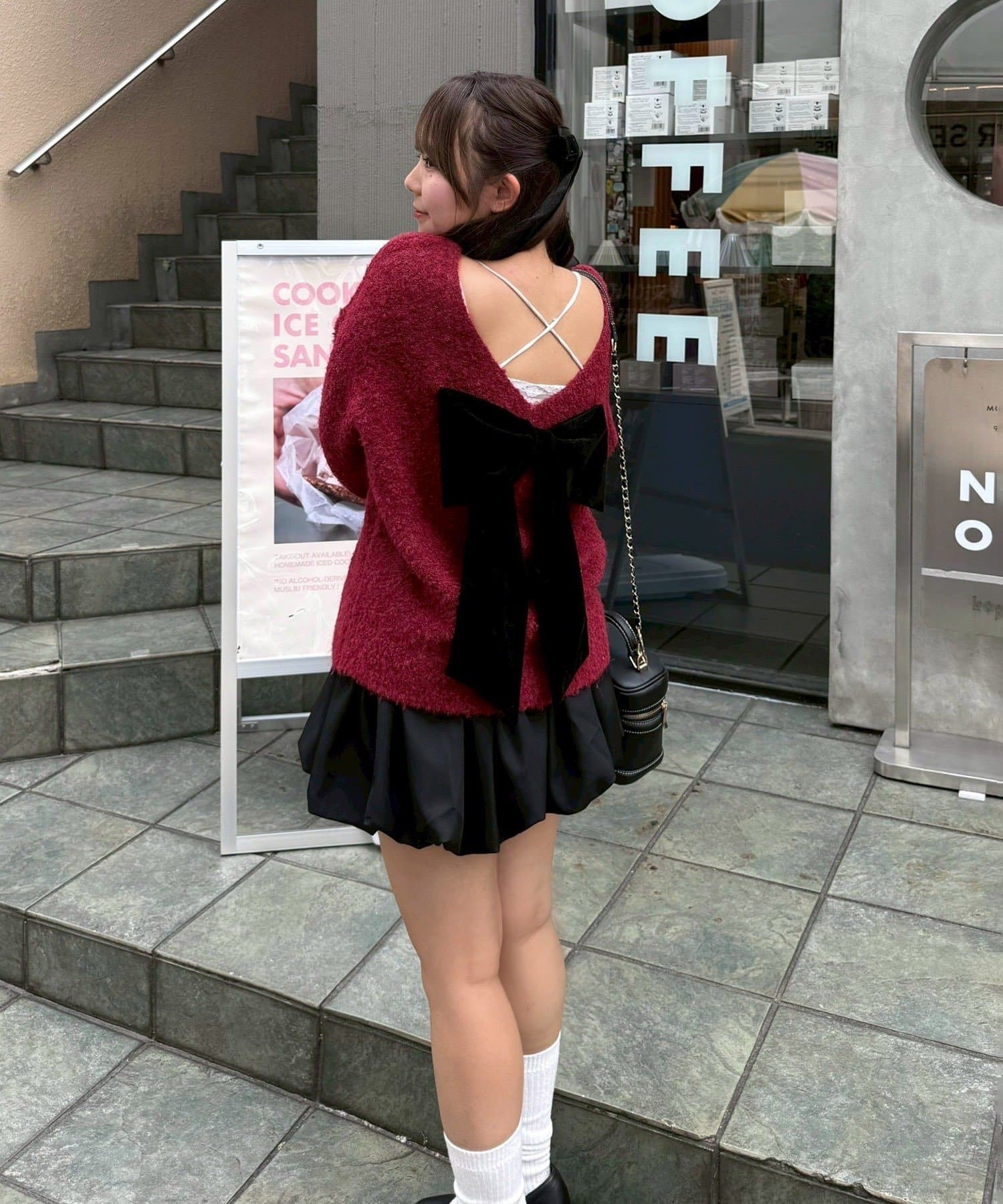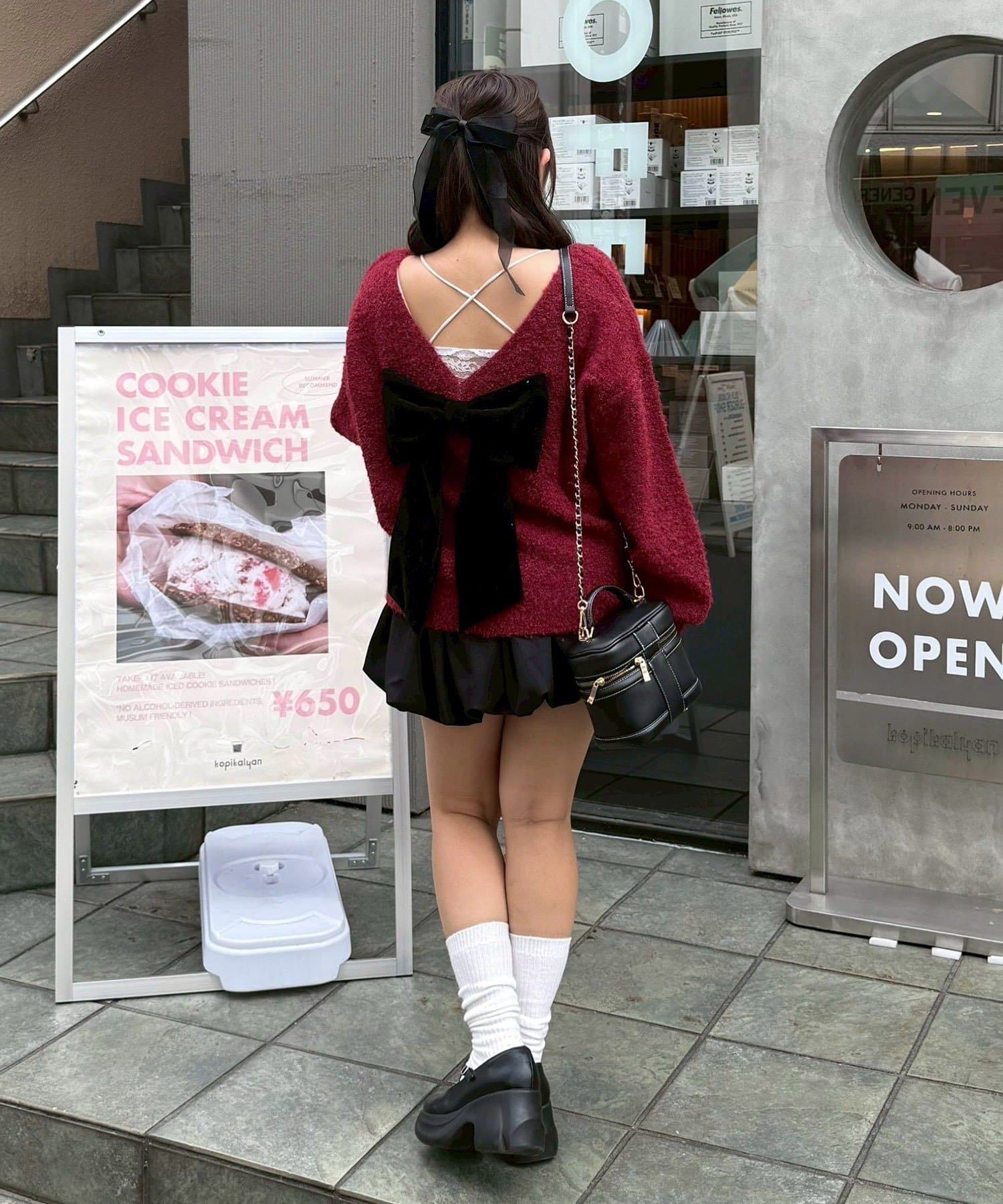 • Remind me and forever(リマインドミーアンドフォーエバー) 【Ribbon Collection】後ろベロアリボンニット