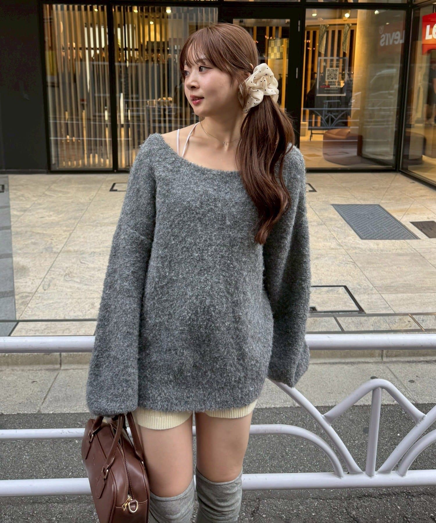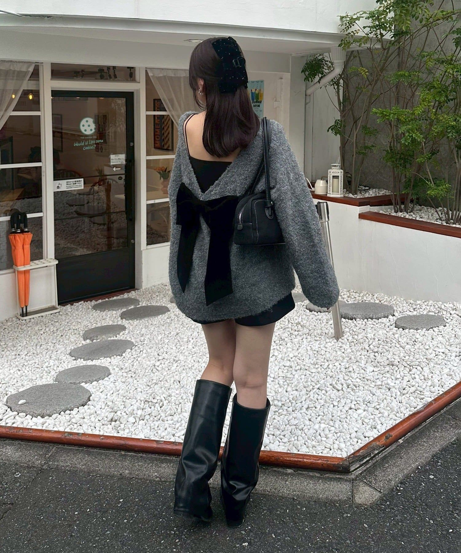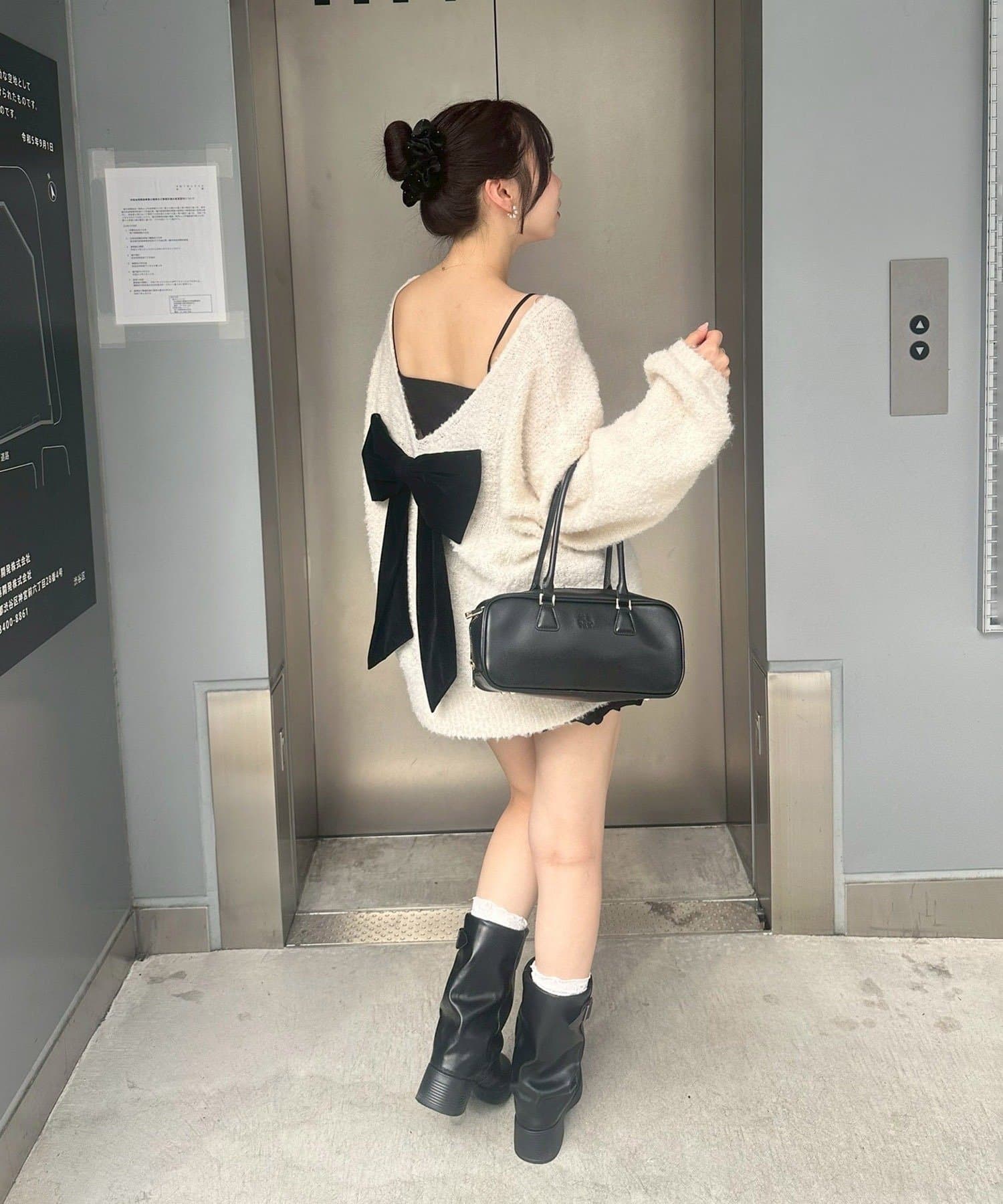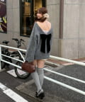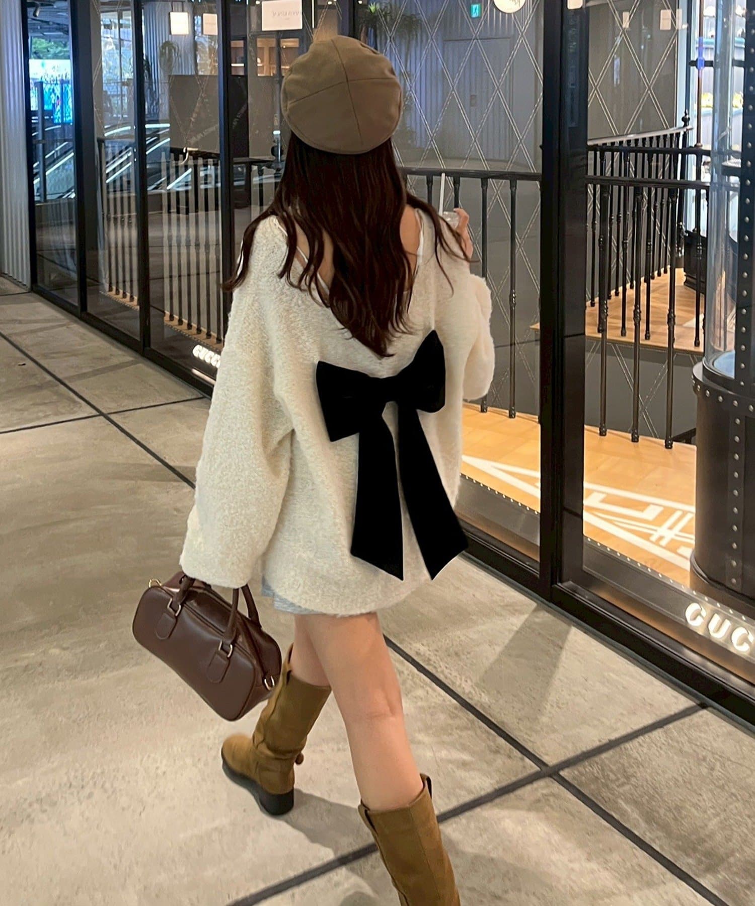 • Remind me and forever(リマインドミーアンドフォーエバー) 【Ribbon Collection】後ろベロアリボンニット