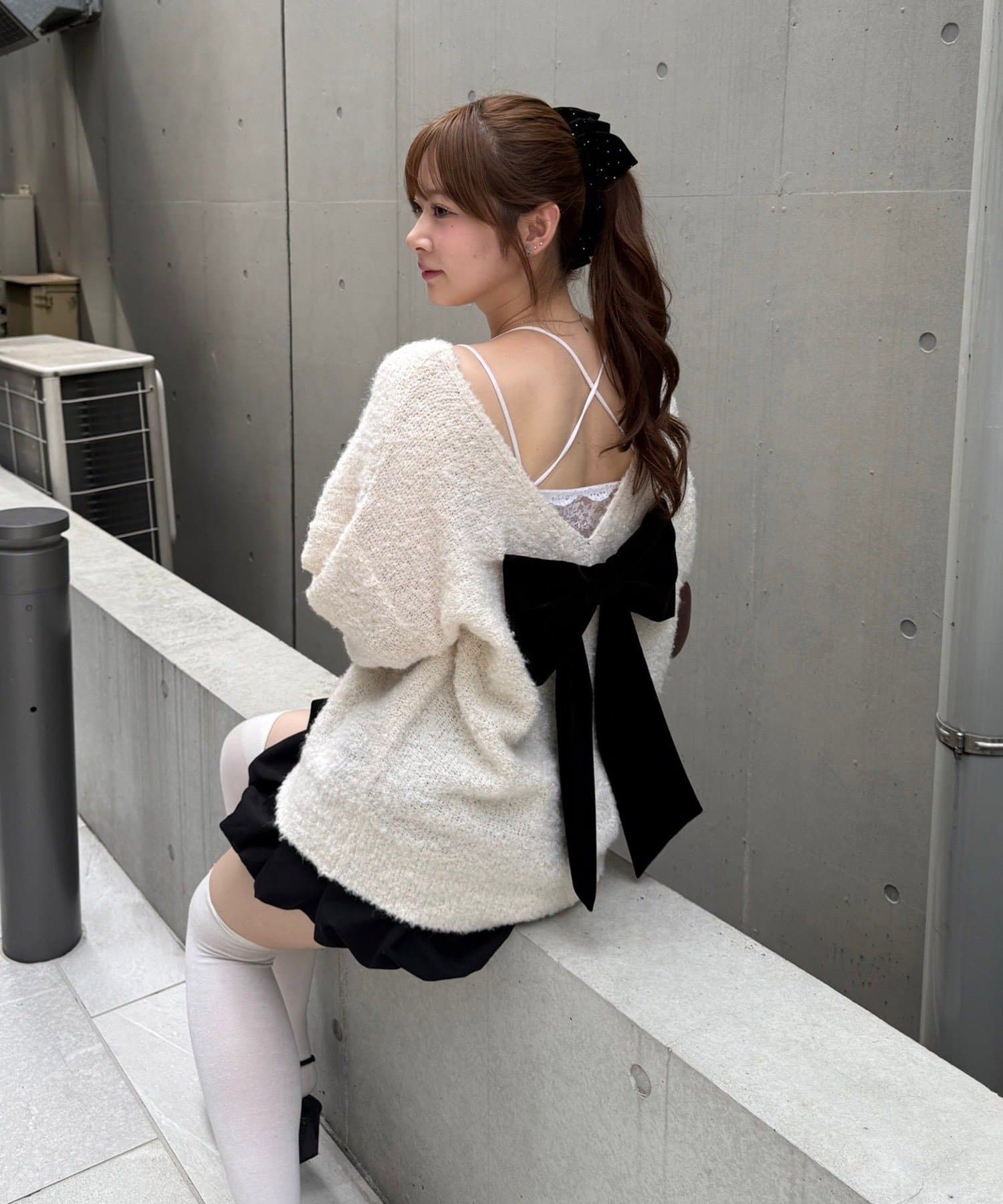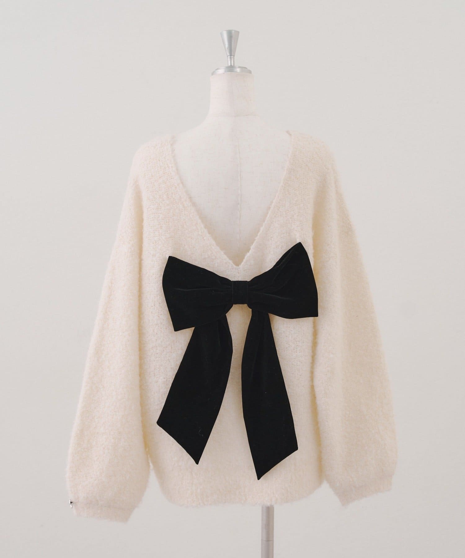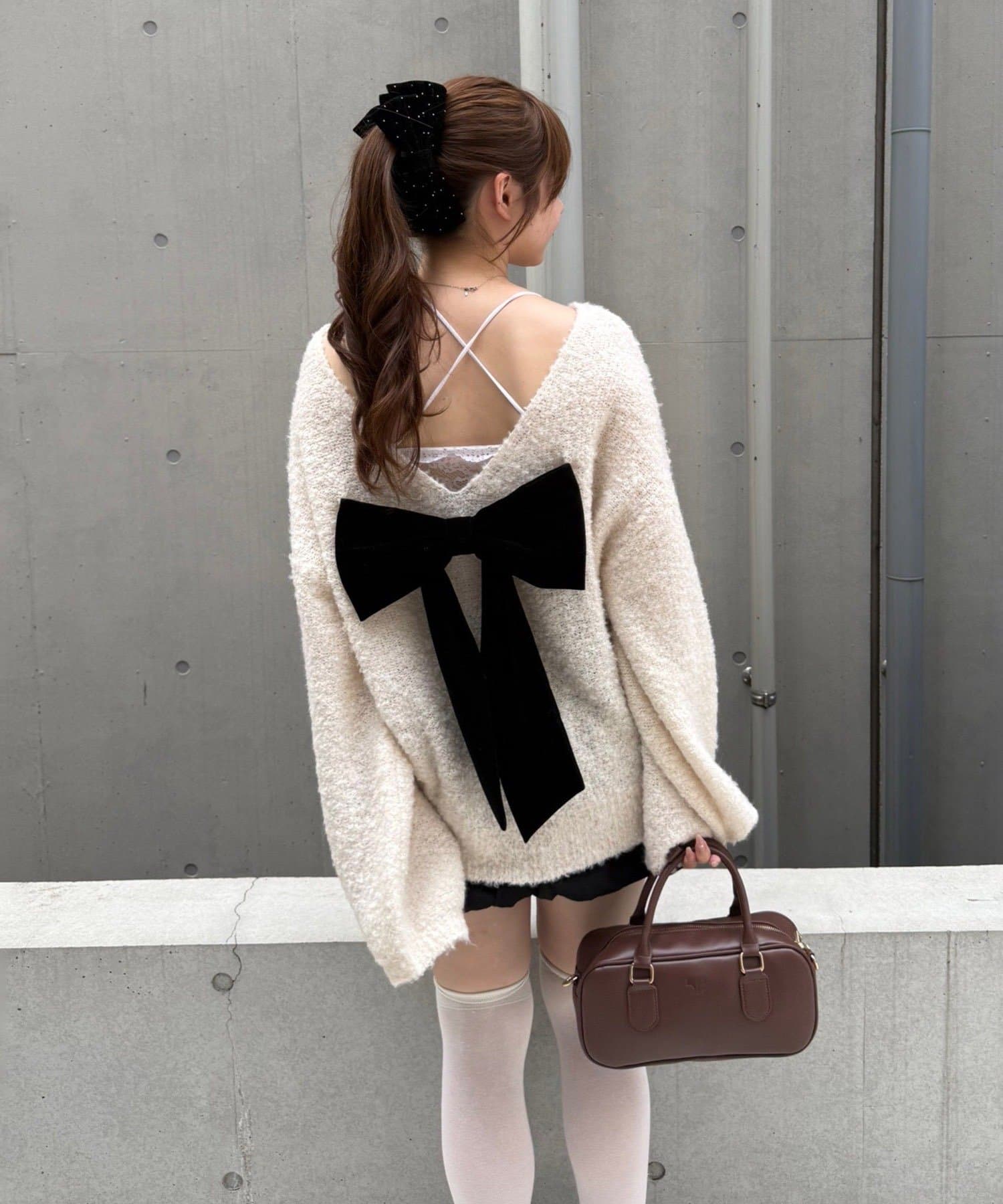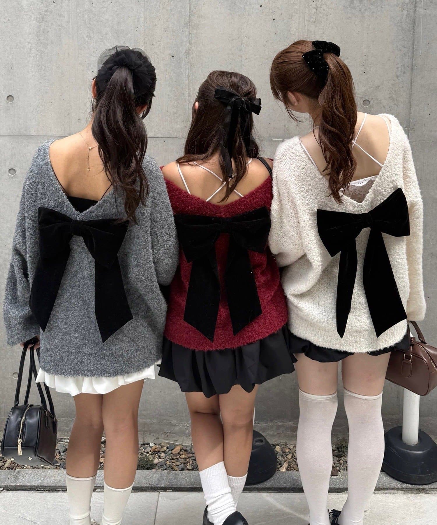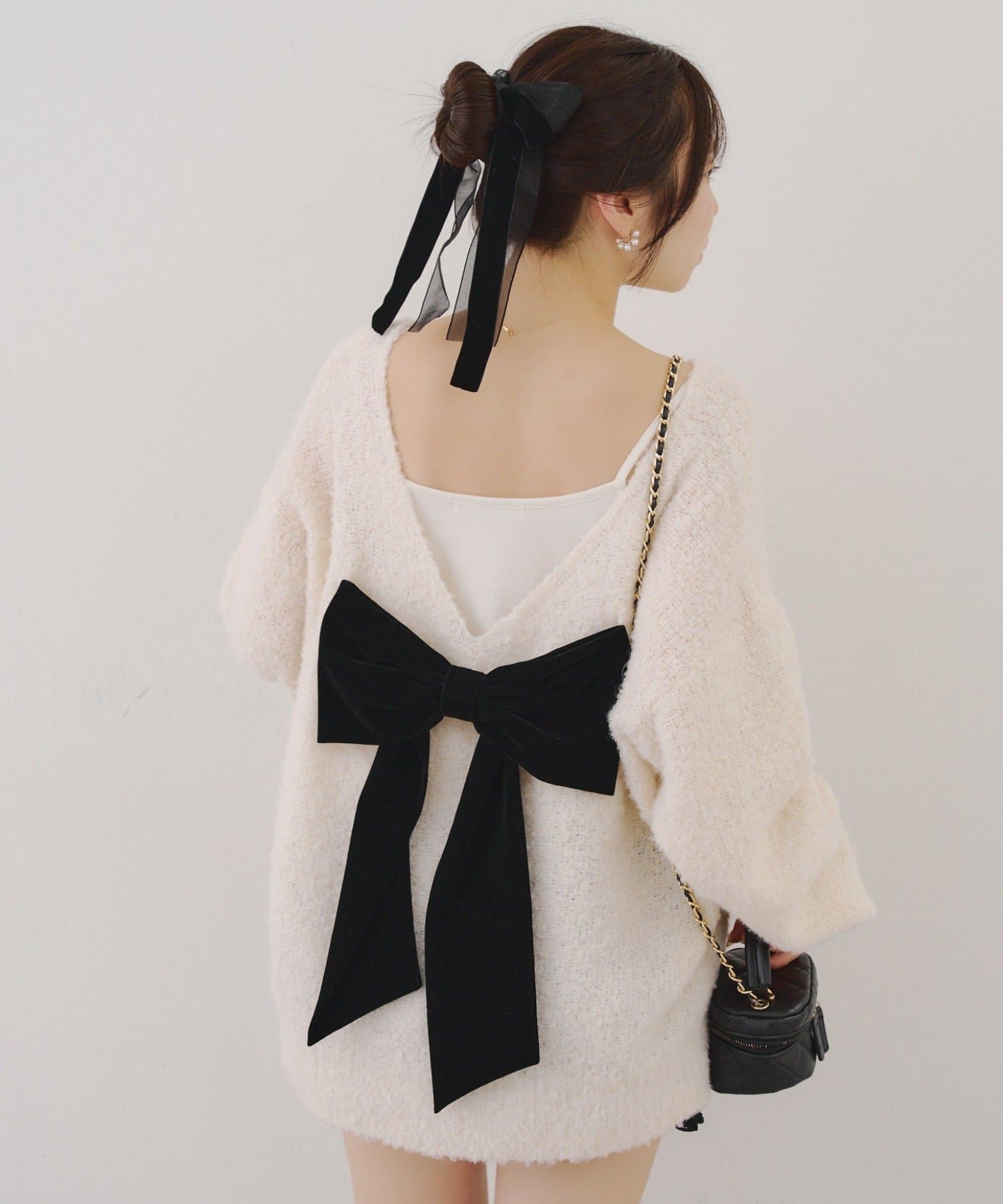 TOP > Remind me and forever > レディース > トップス > ニット/セーター > 【Ribbon Collection】後ろベロアリボンニット