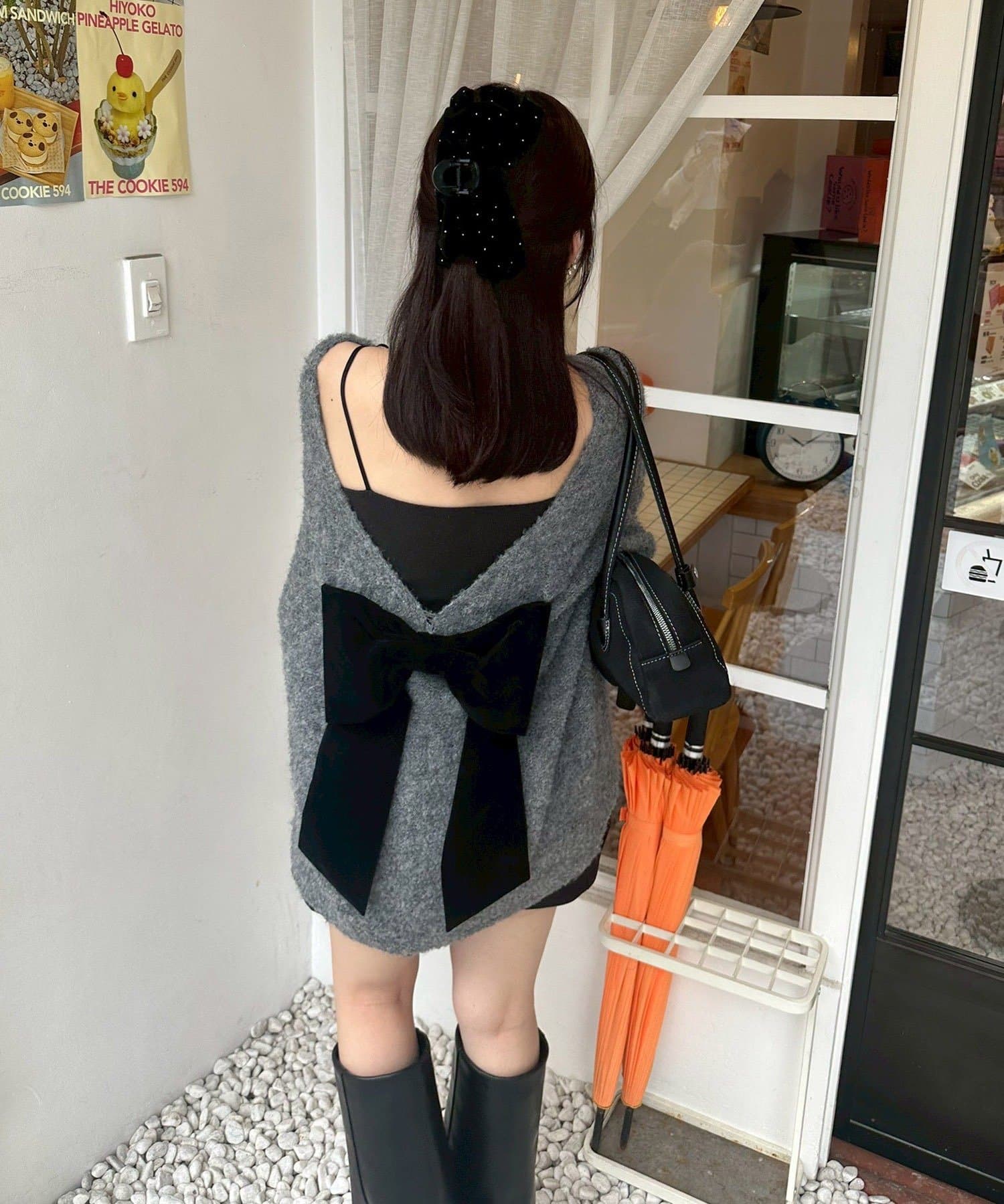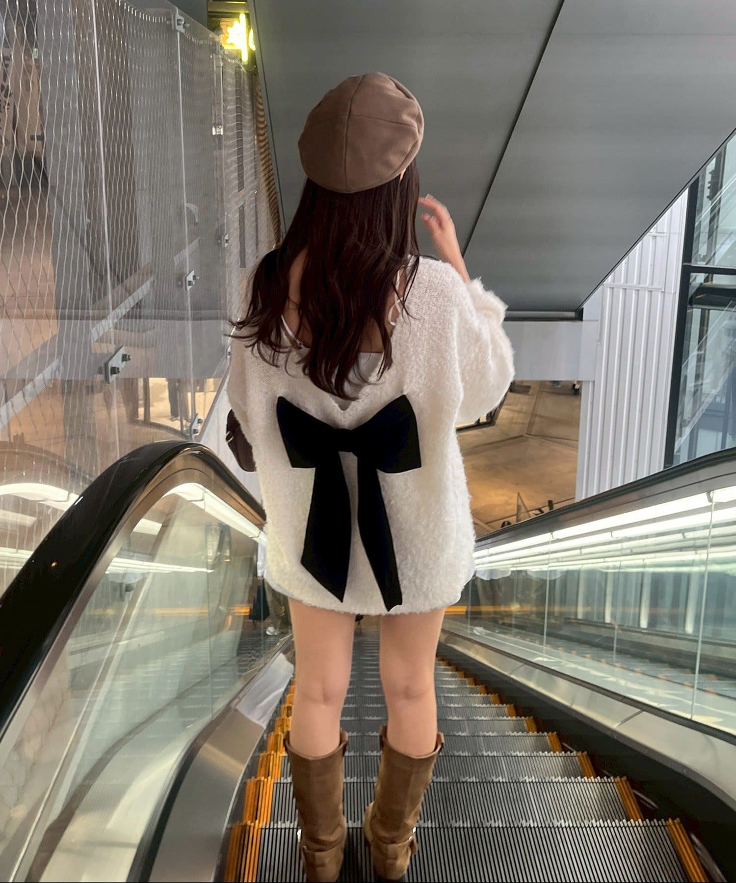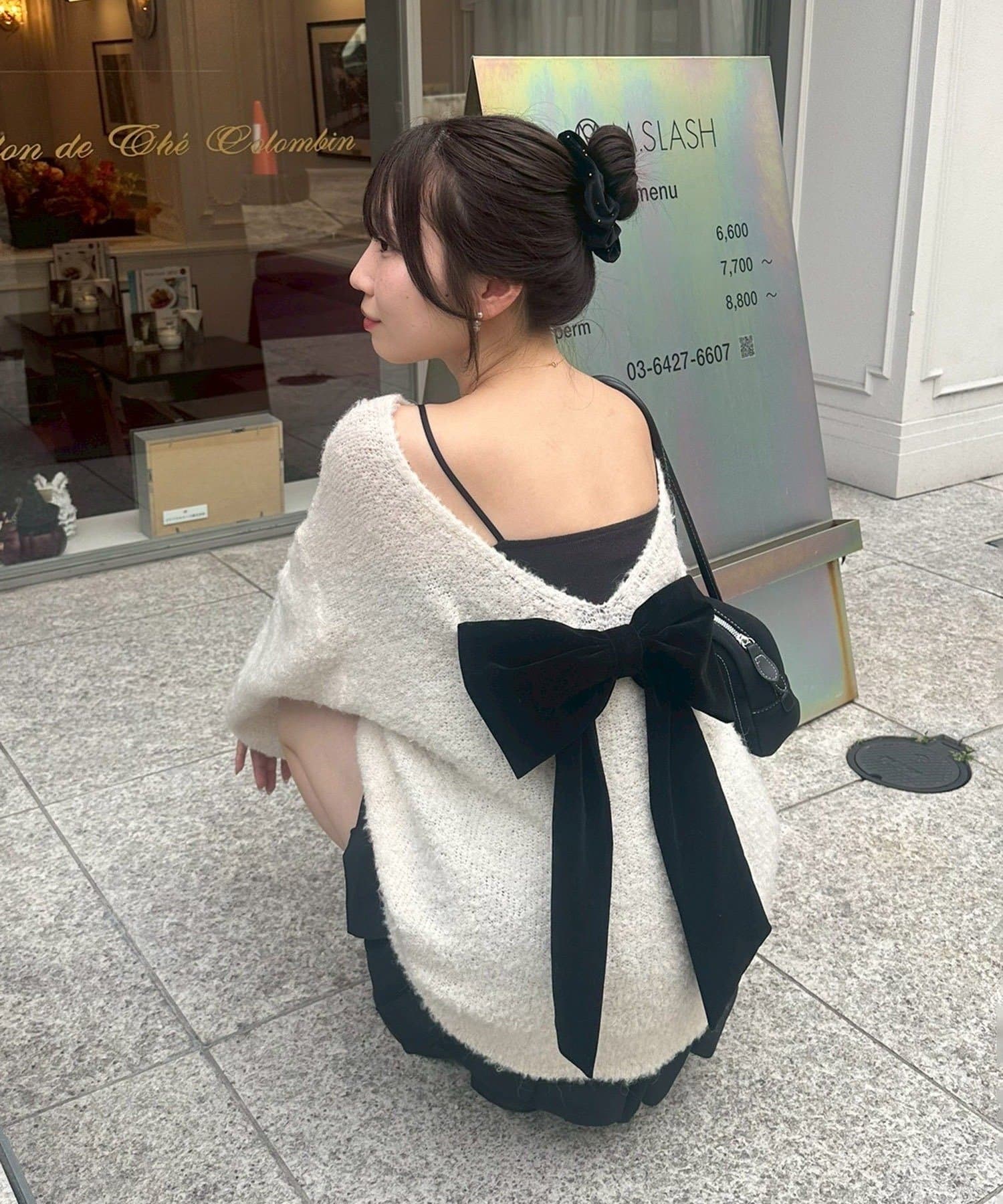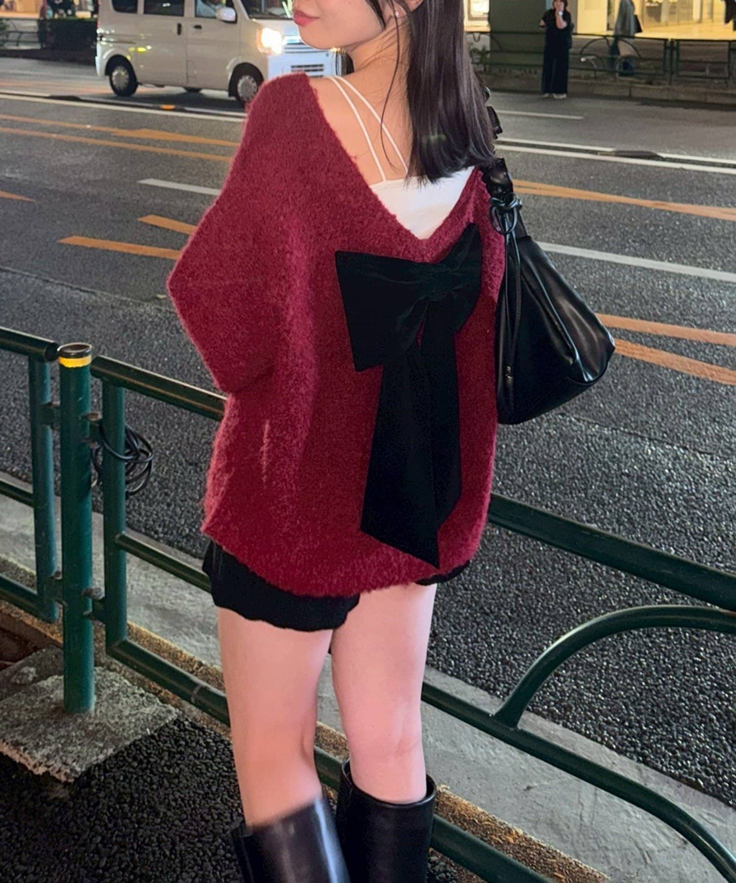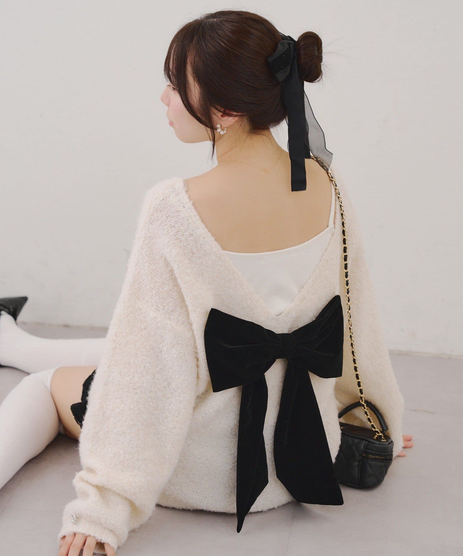 TOP > Remind me and forever > レディース > トップス > ニット/セーター > 【Ribbon Collection】後ろベロアリボンニット