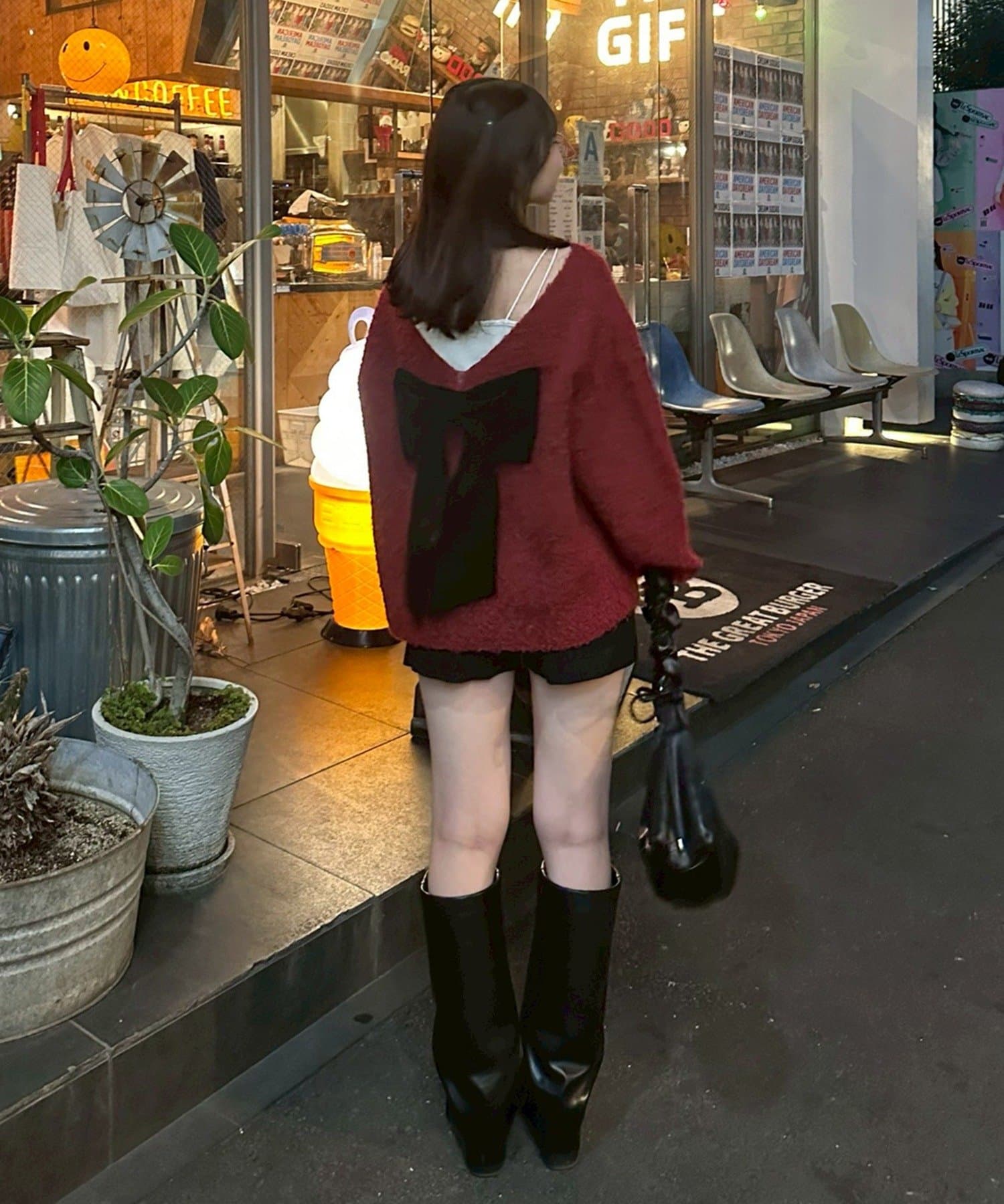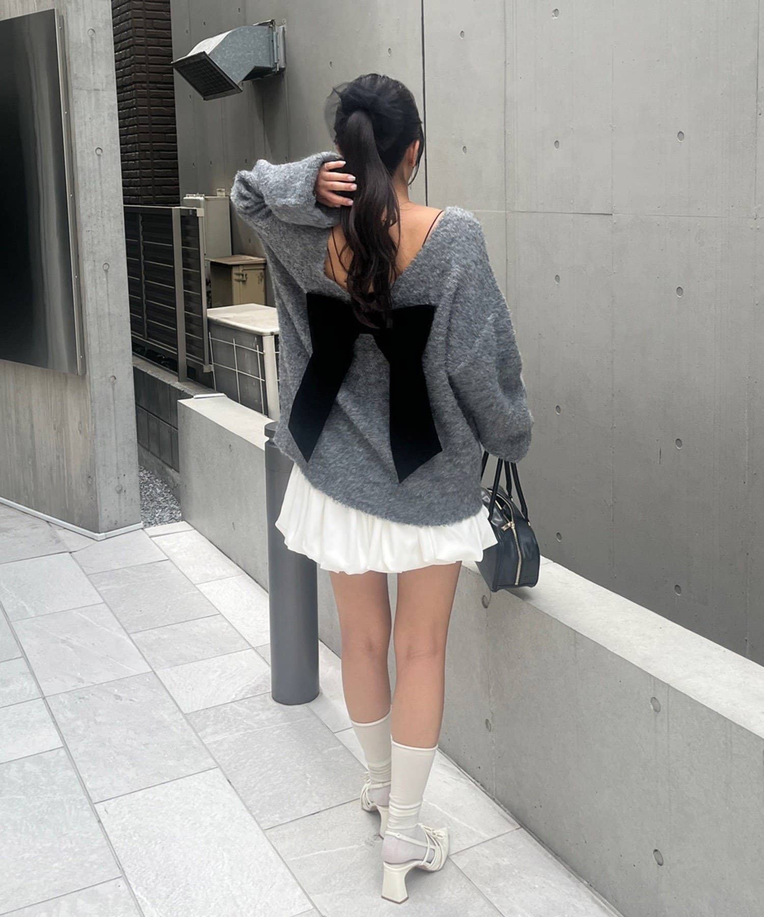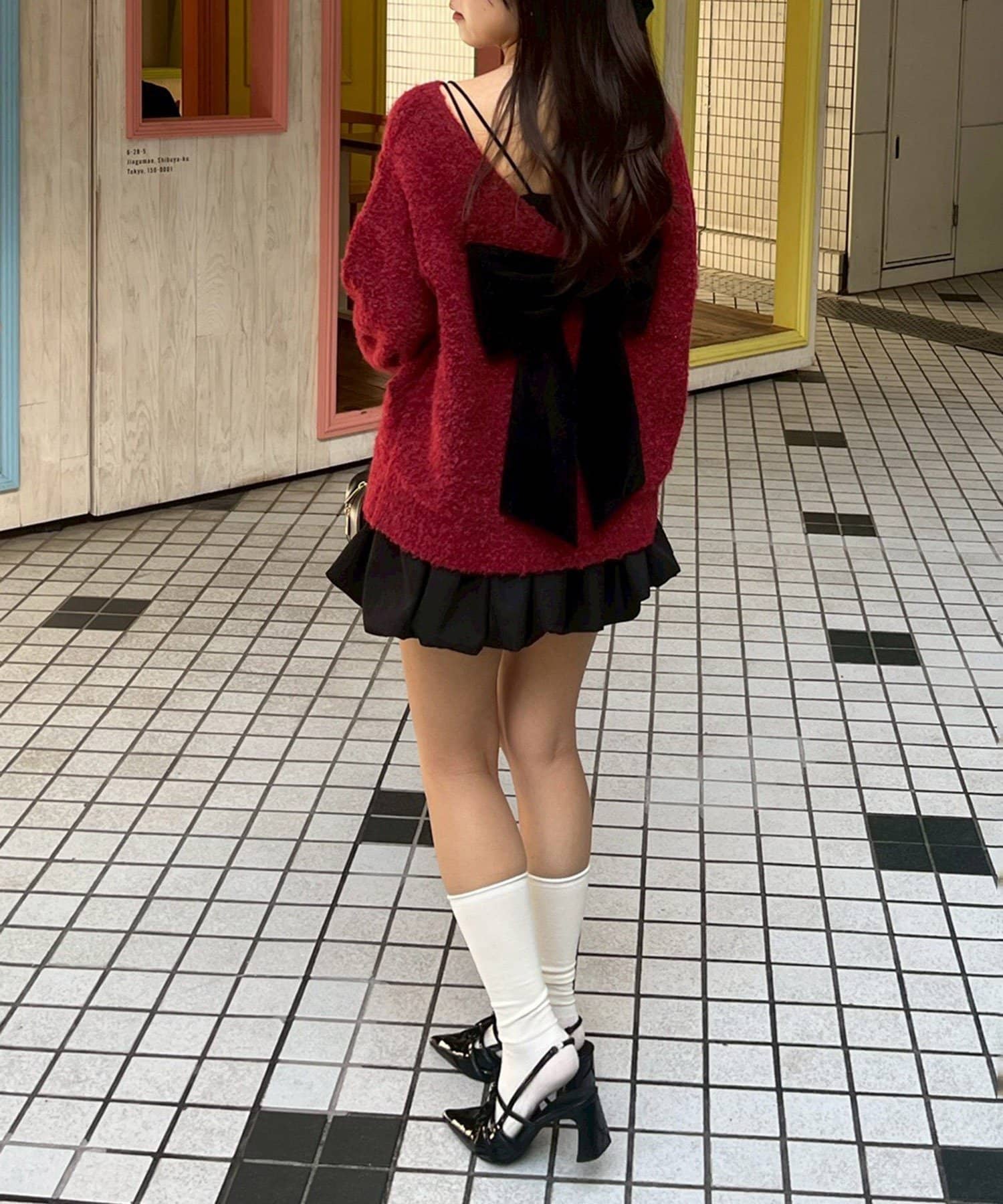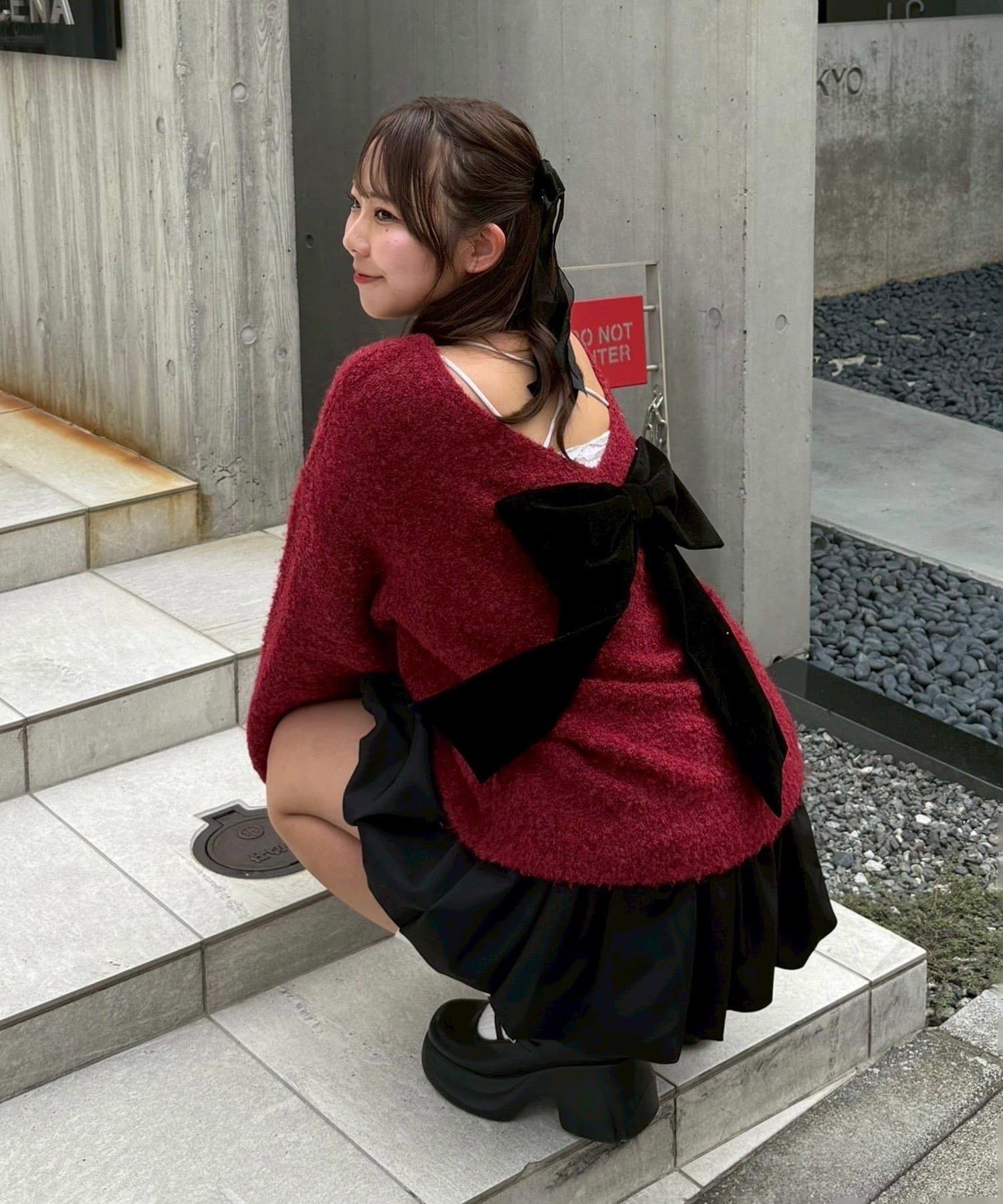 Remind me and forever(リマインドミーアンドフォーエバー) 【Ribbon Collection】後ろベロアリボンニット