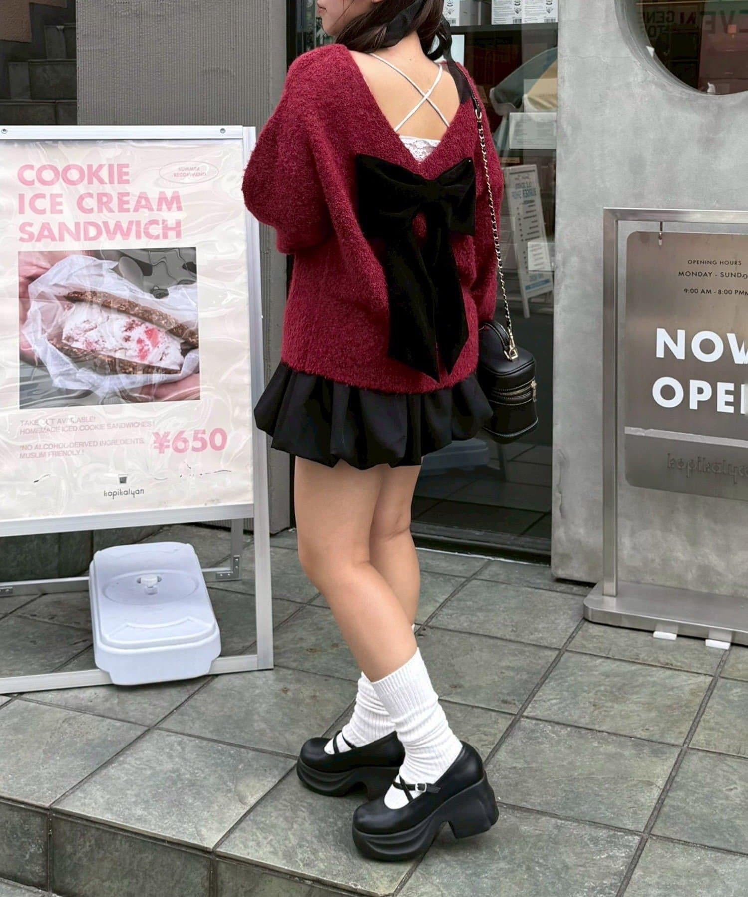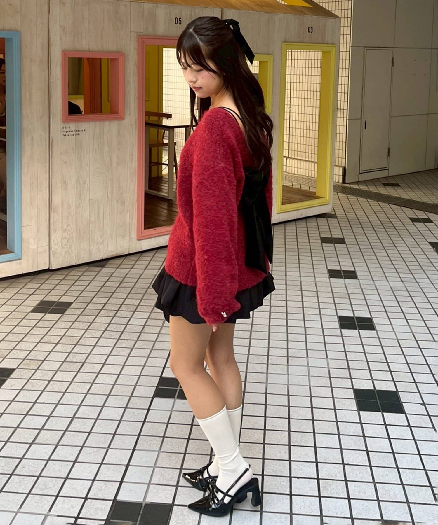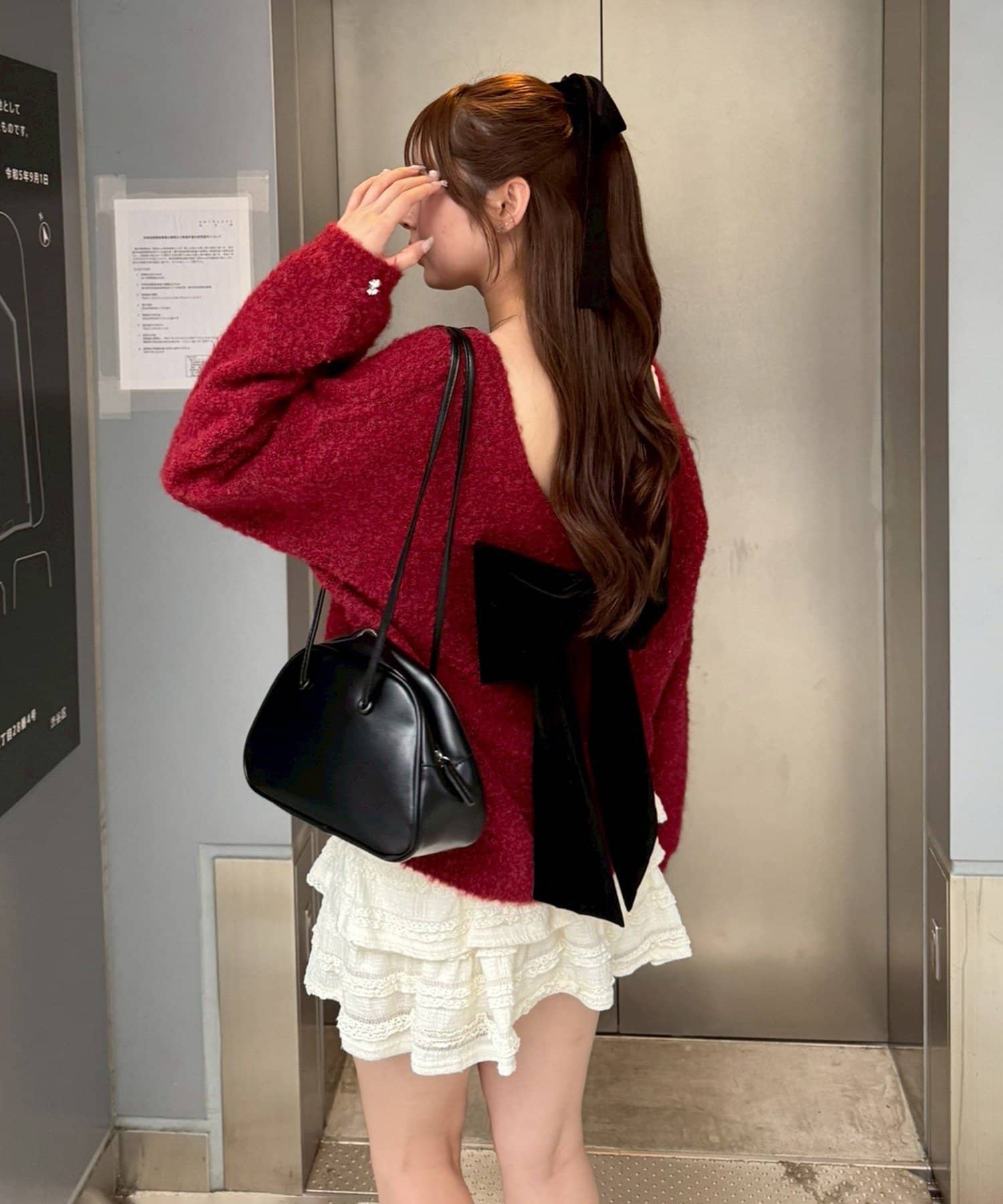Remind me and forever(リマインドミーアンドフォーエバー) 【Ribbon Collection】後ろベロアリボンニット
