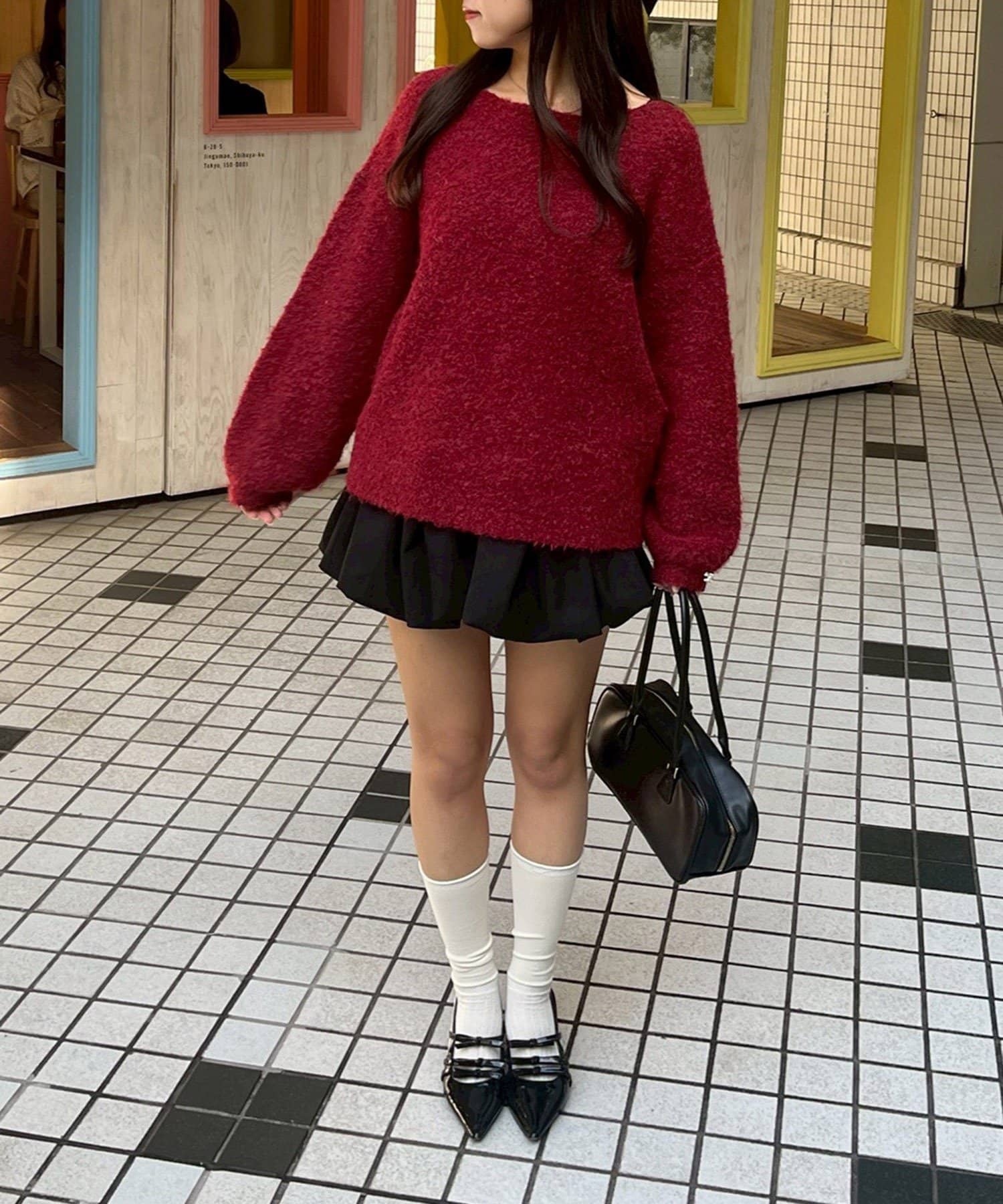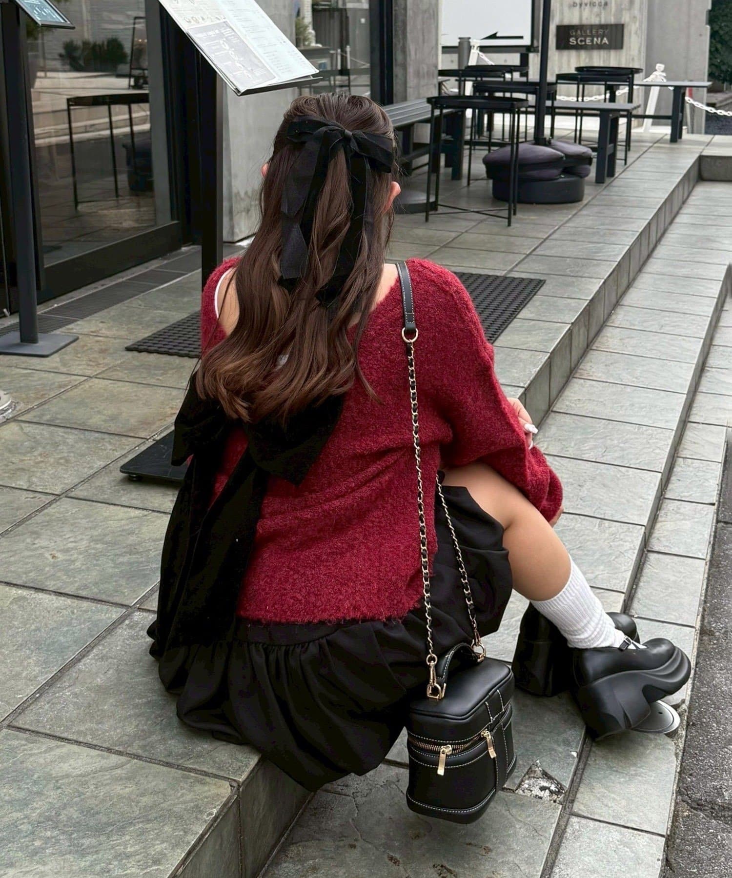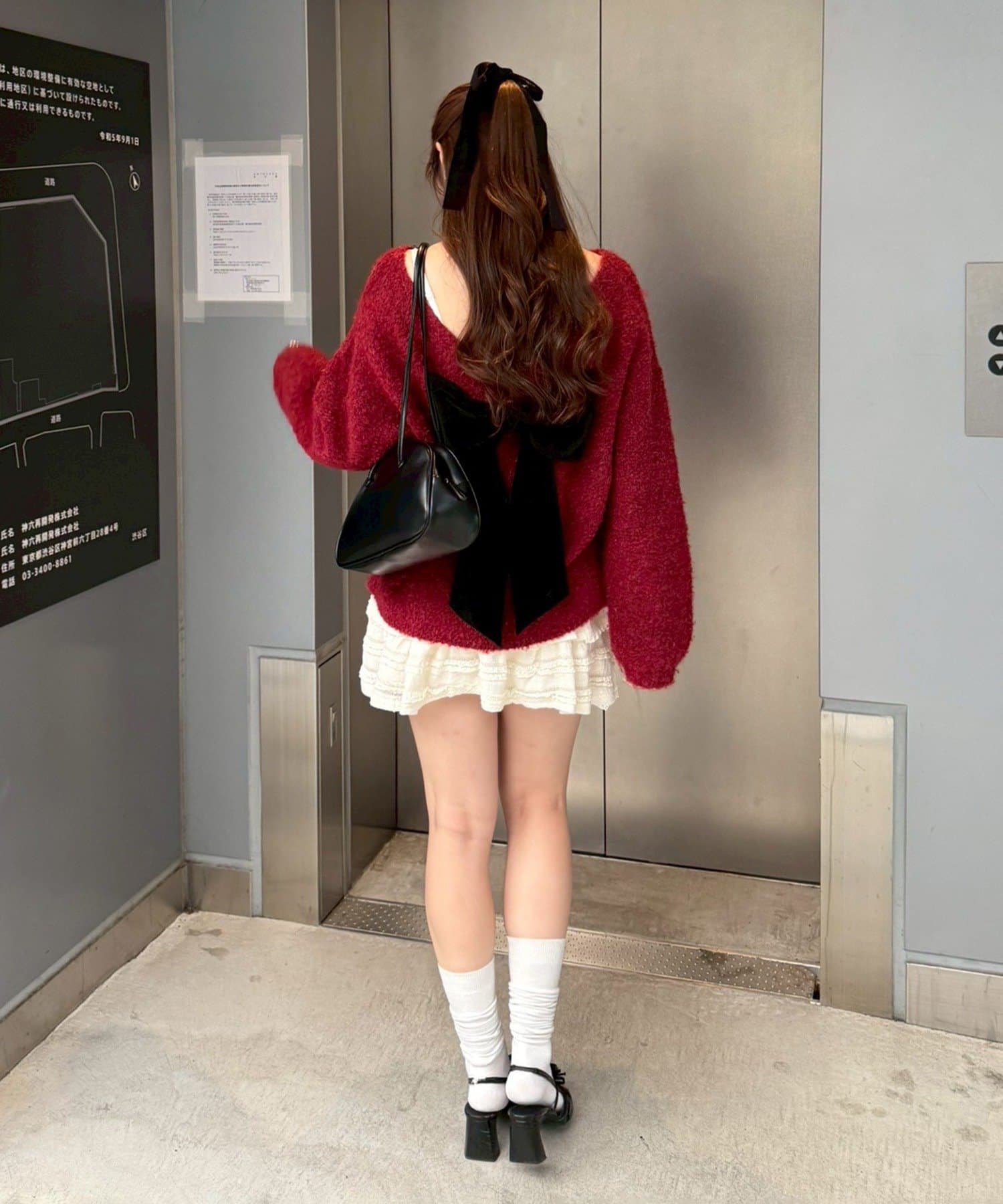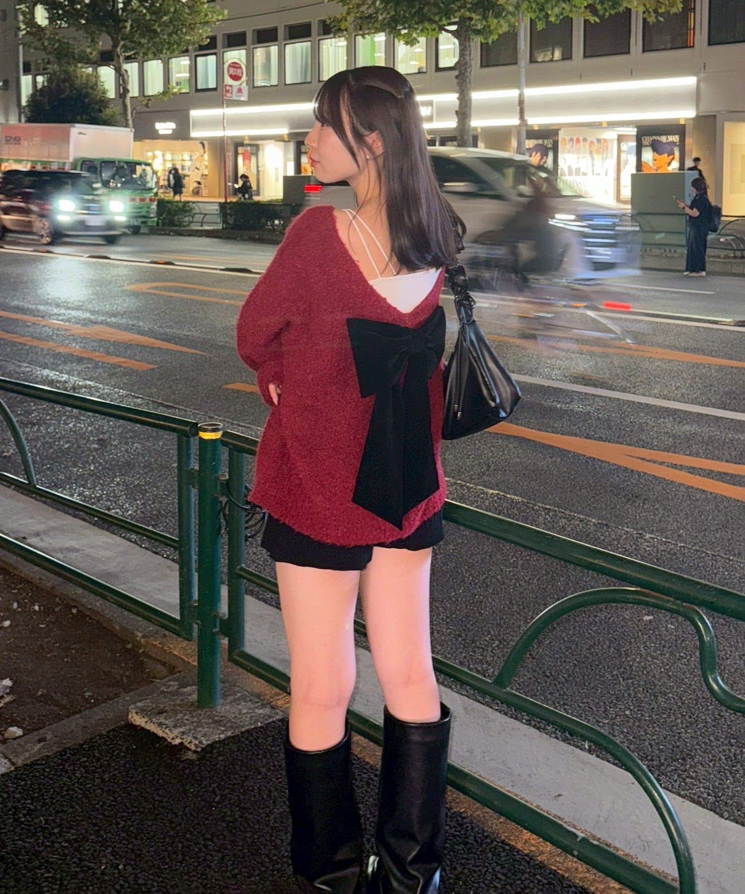 Remind me and forever(リマインドミーアンドフォーエバー) 【Ribbon Collection】後ろベロアリボンニット