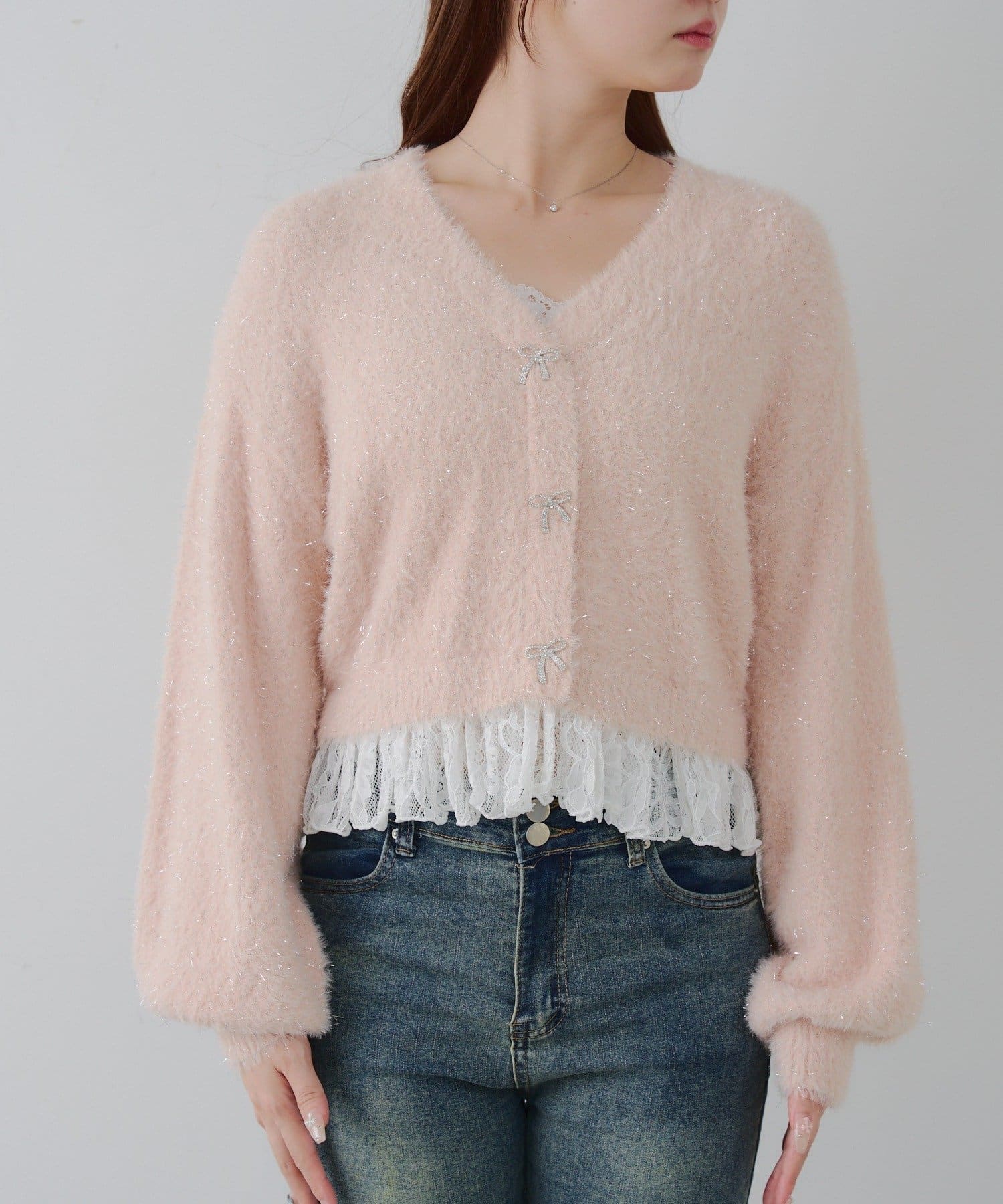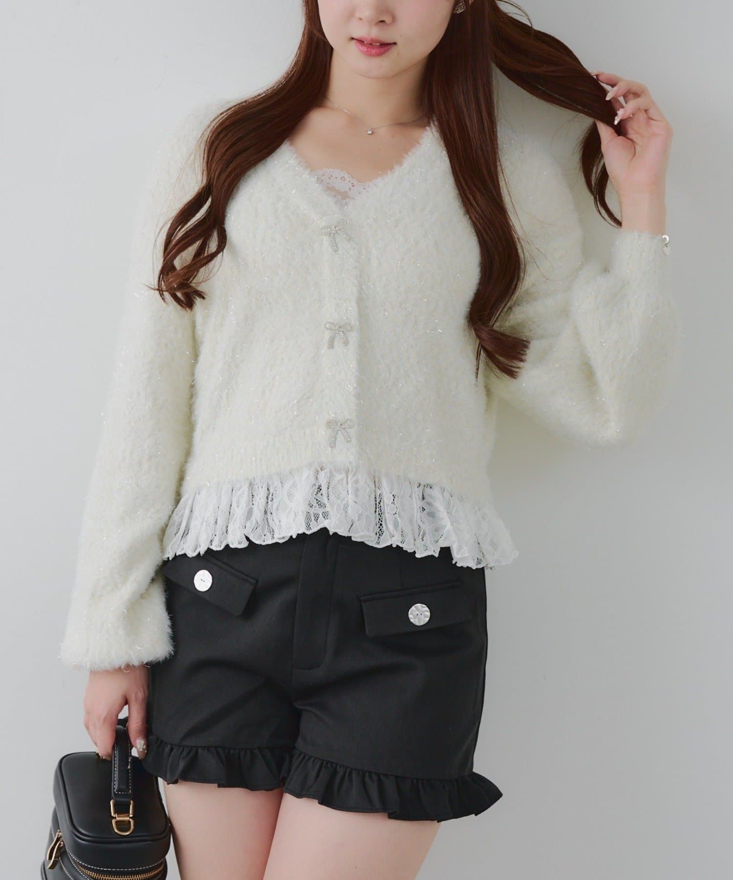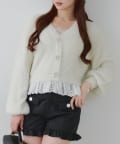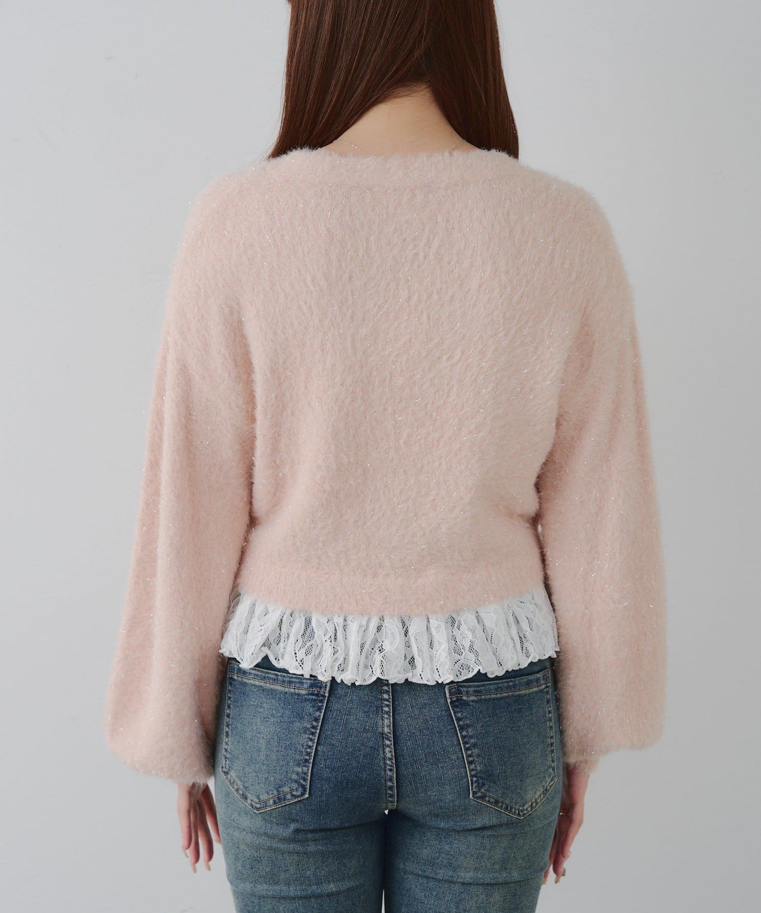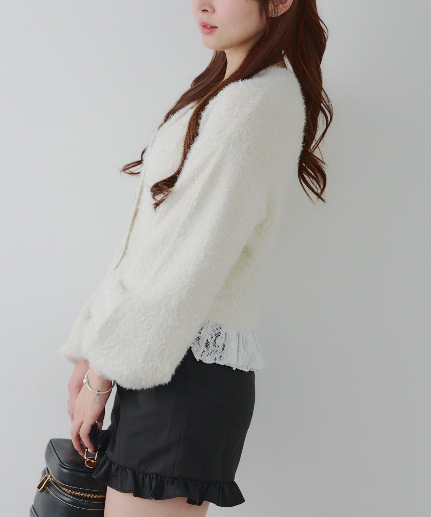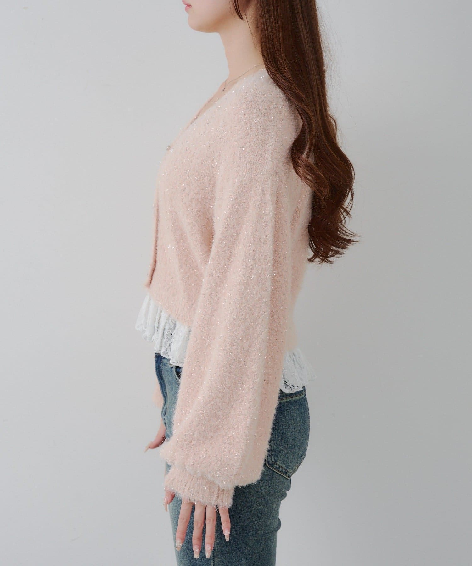 ラメフェザーヤーン裾レース付カーディガン