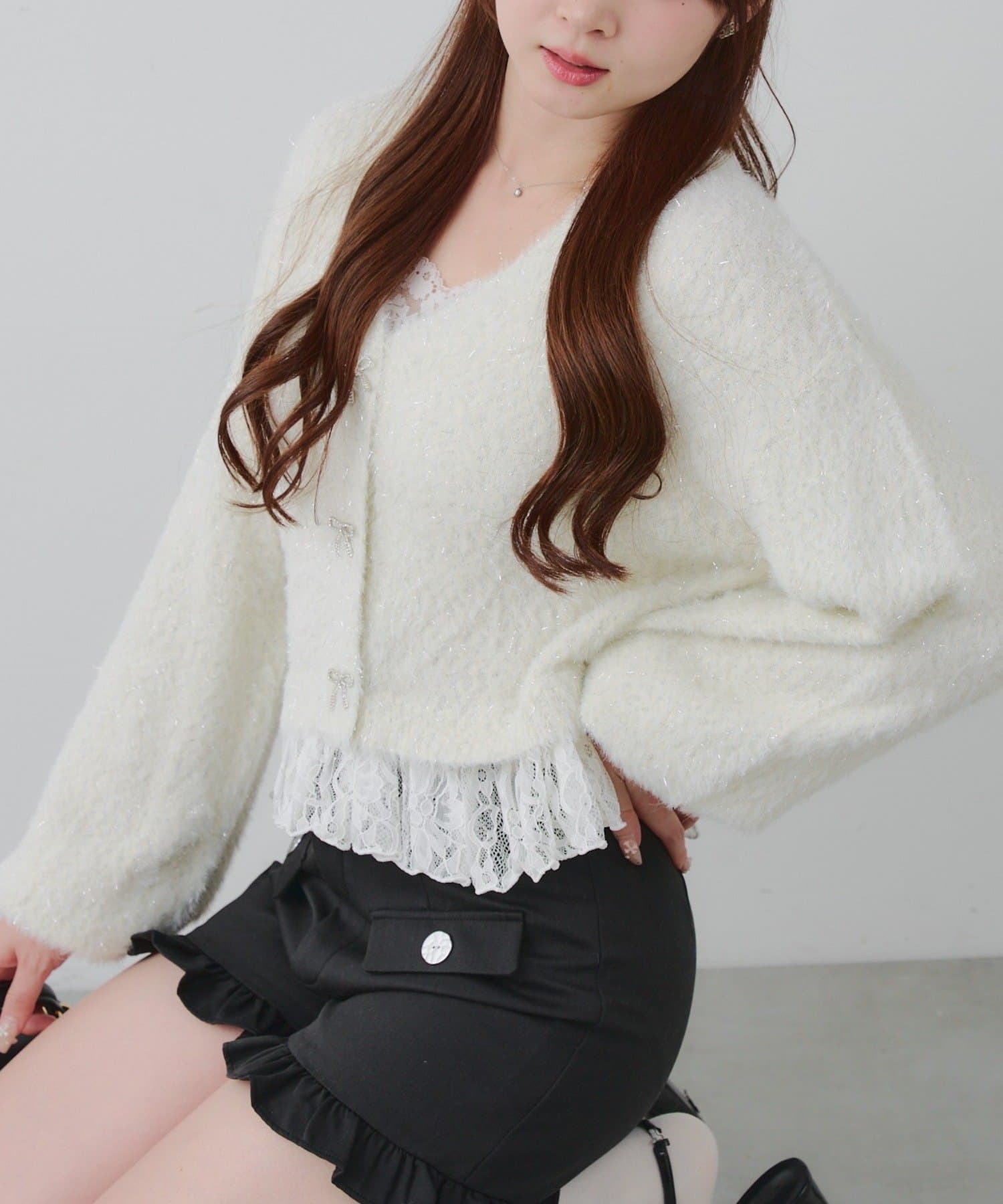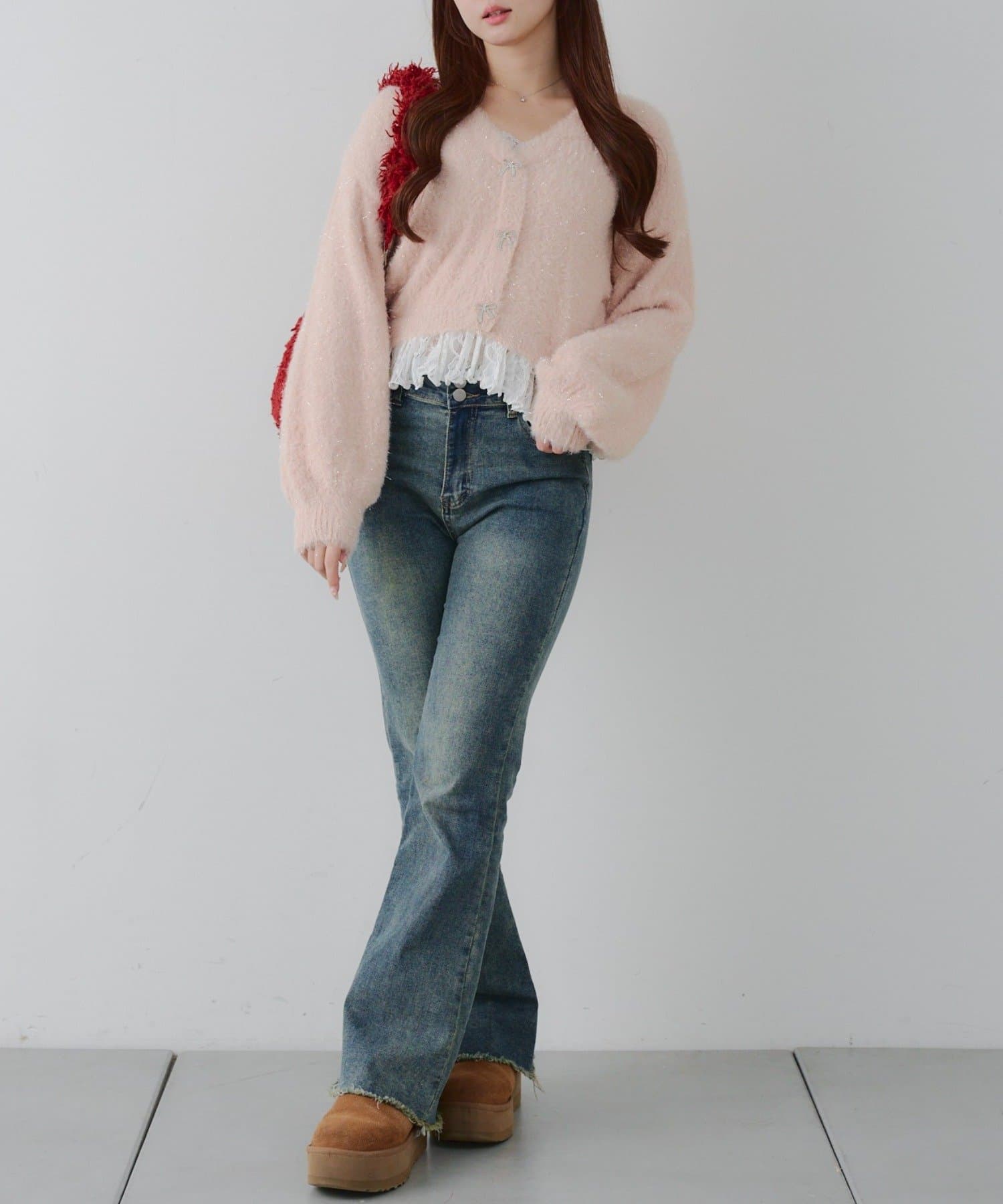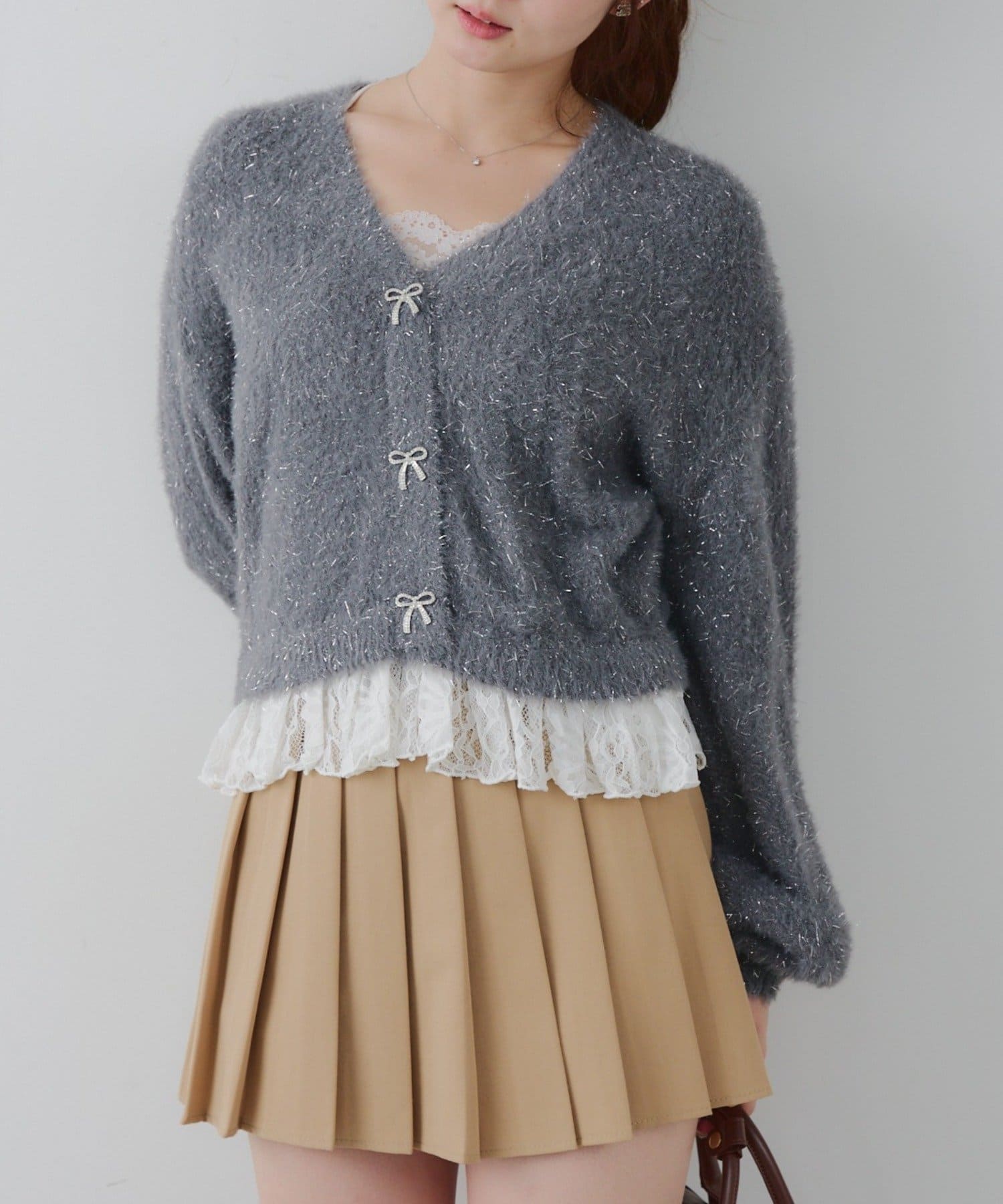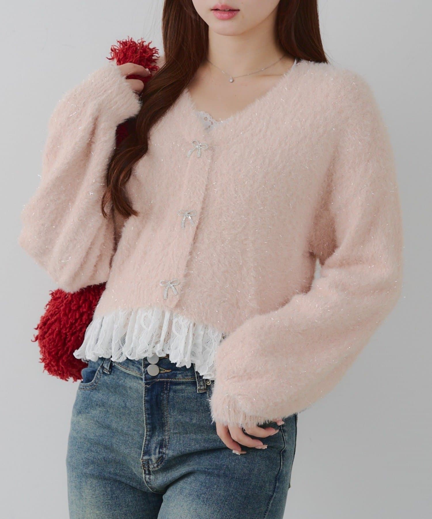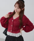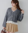 ラメフェザーヤーン裾レース付カーディガン