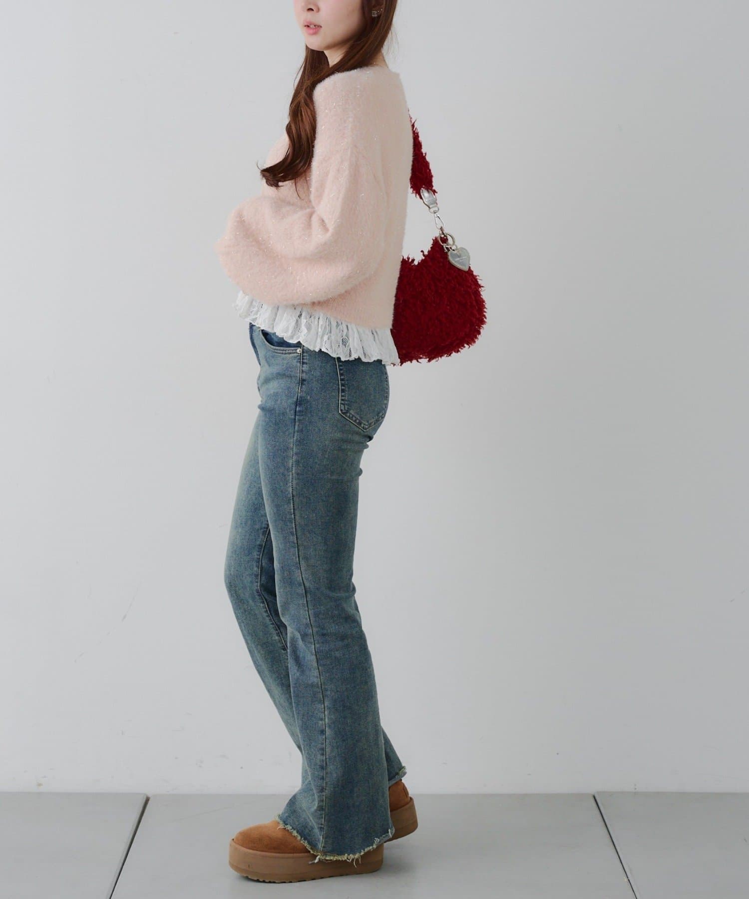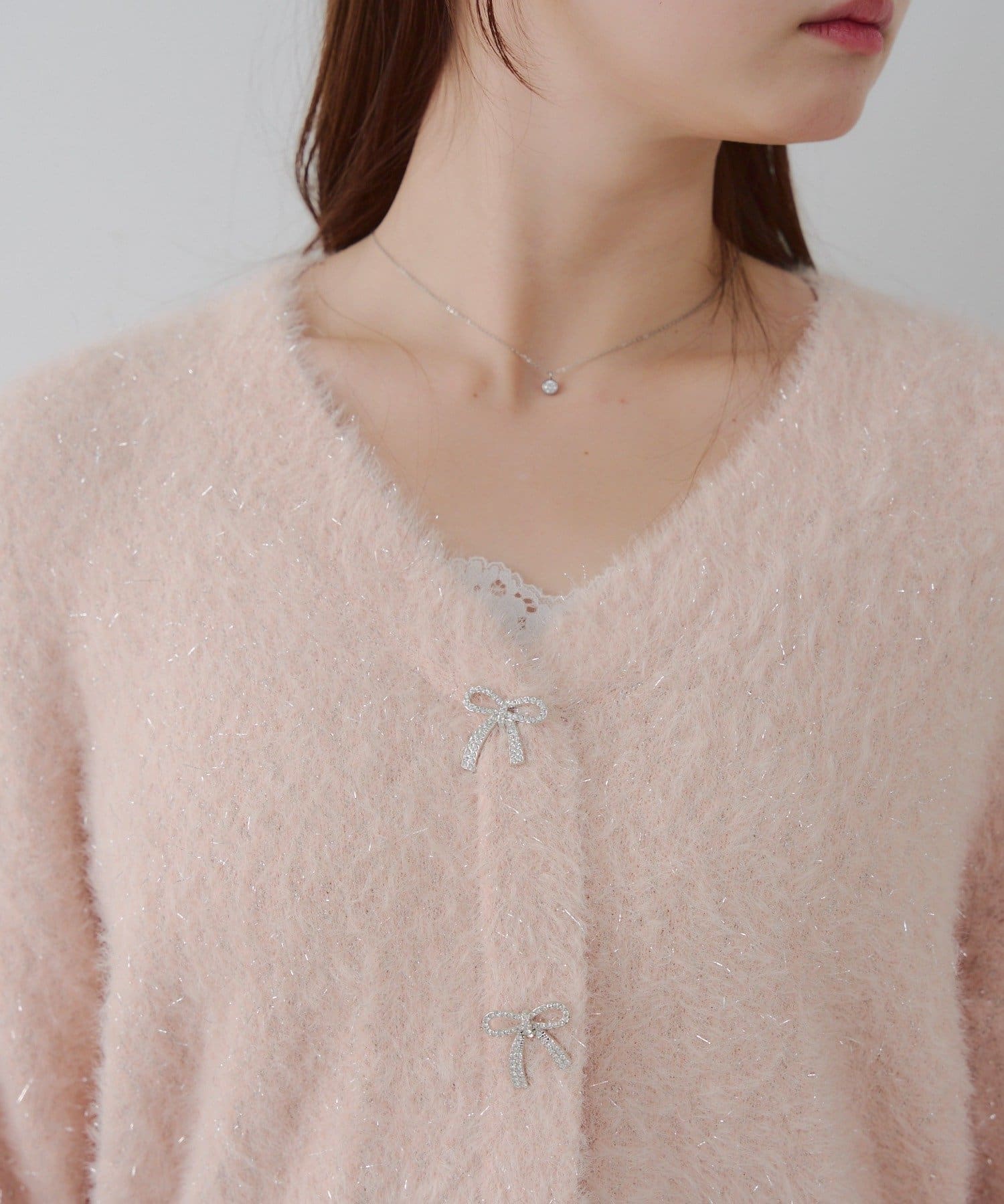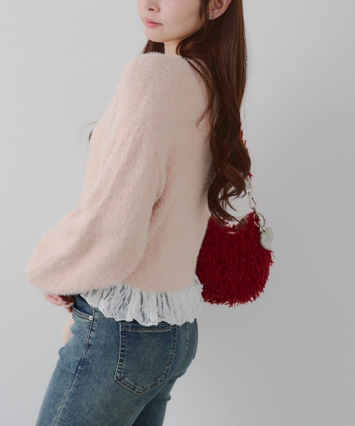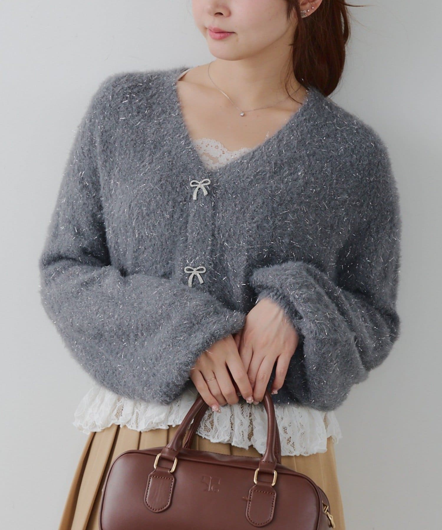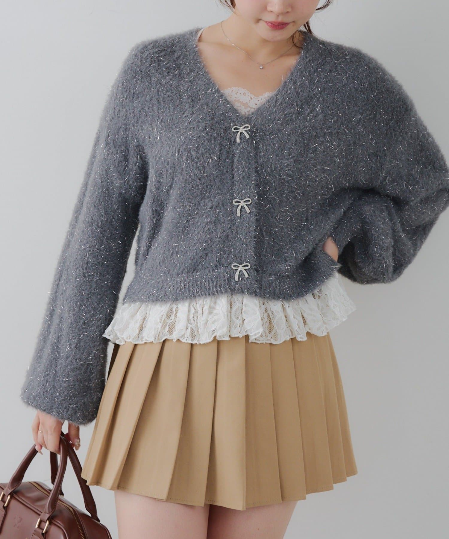 ラメフェザーヤーン裾レース付カーディガン